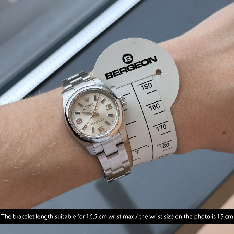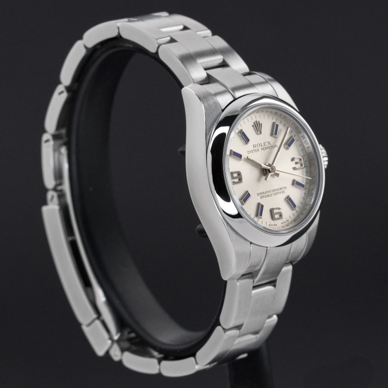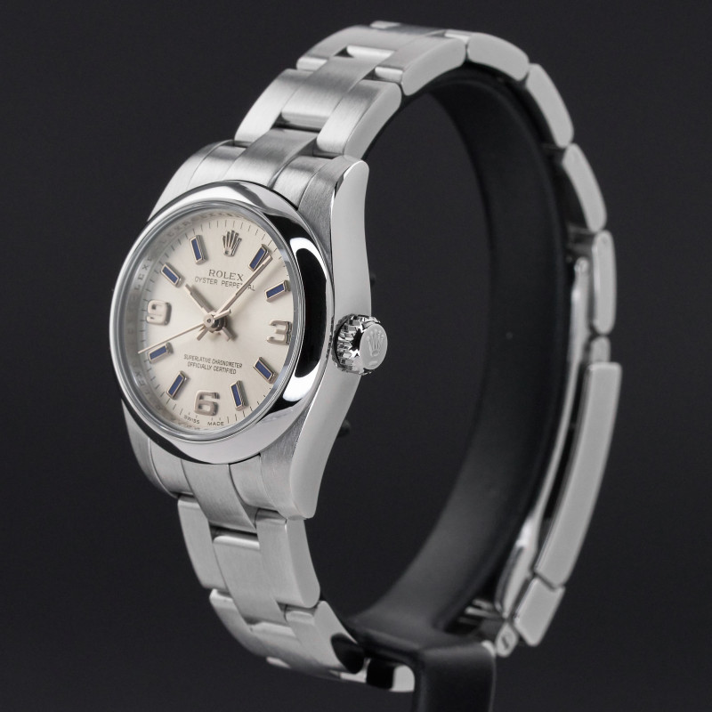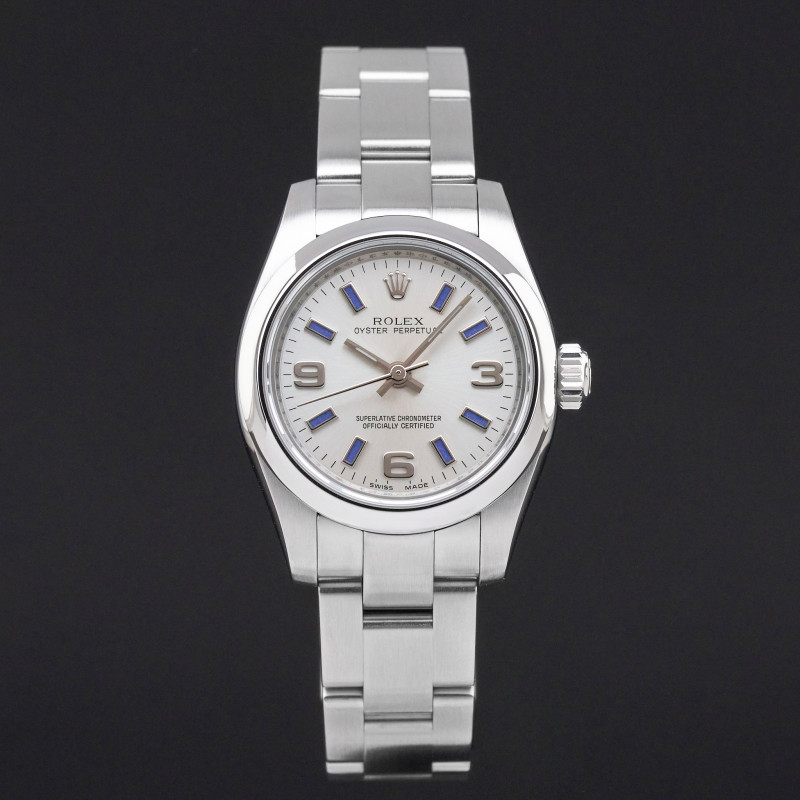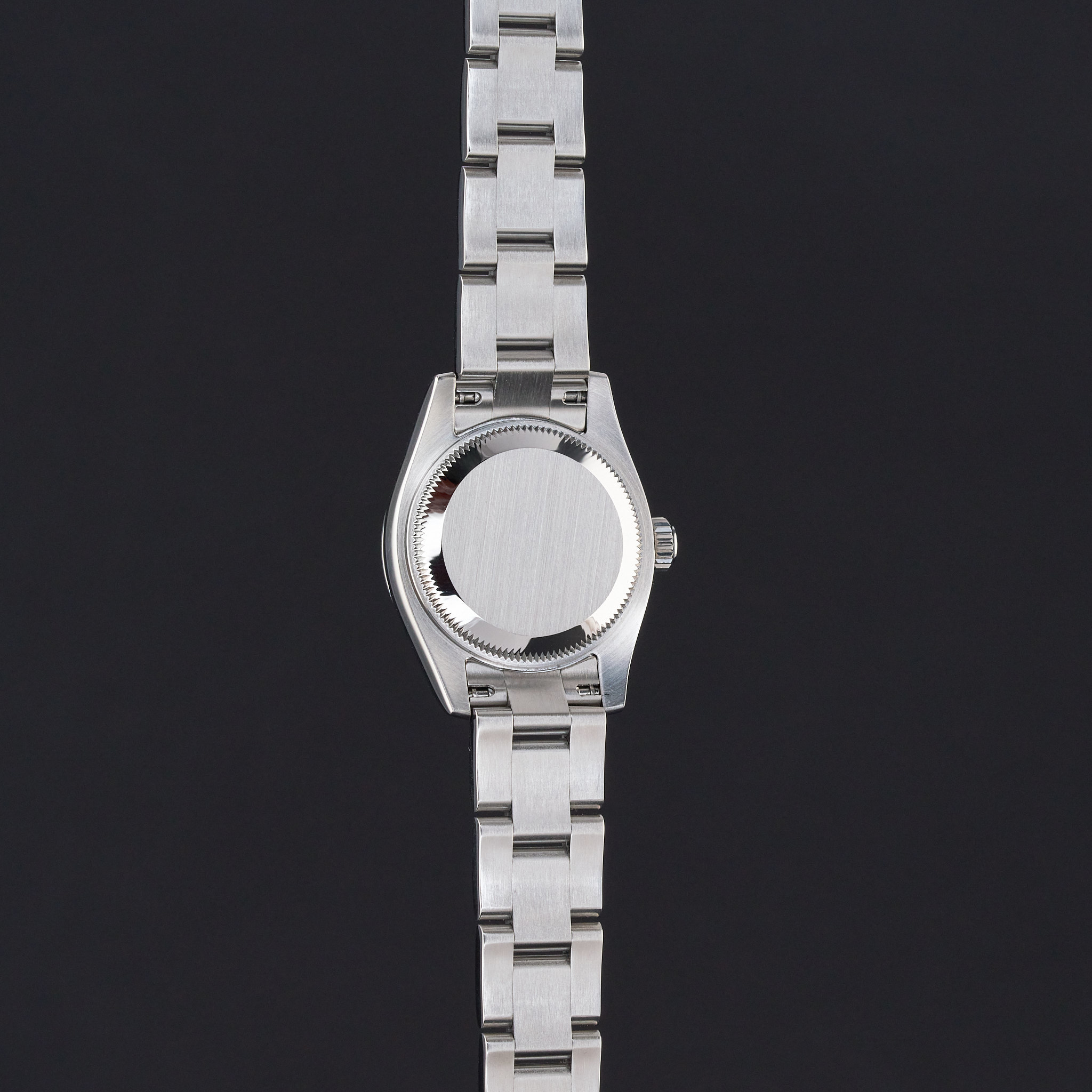 This Rolex Oyster Perpetual Lady 176200 features a Silver Arabic dial and is crafted from stainless steel, with a production year of 2008.
