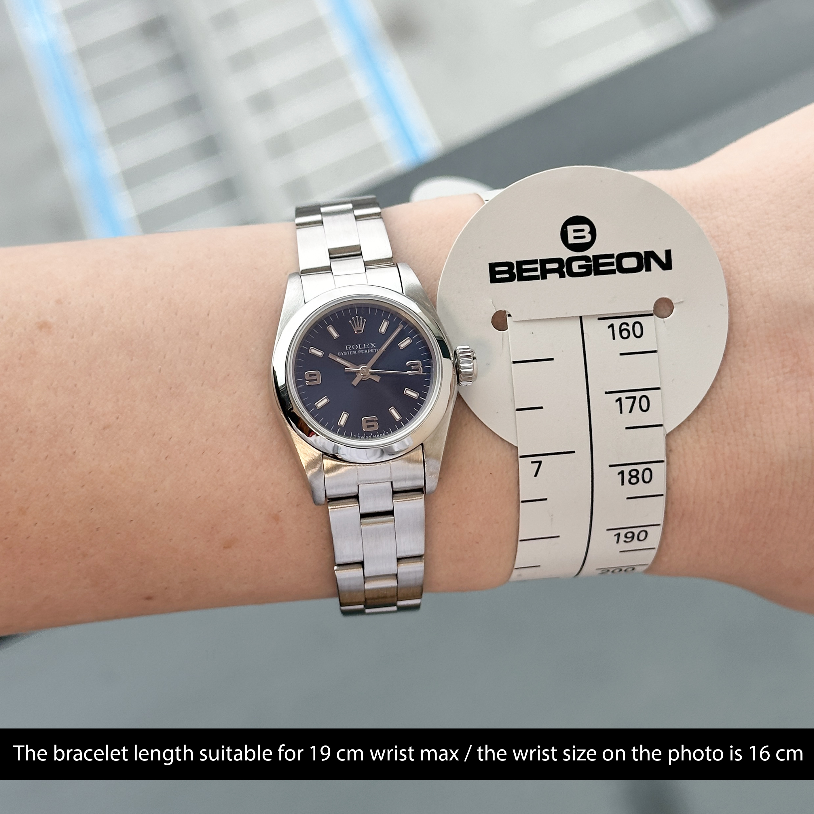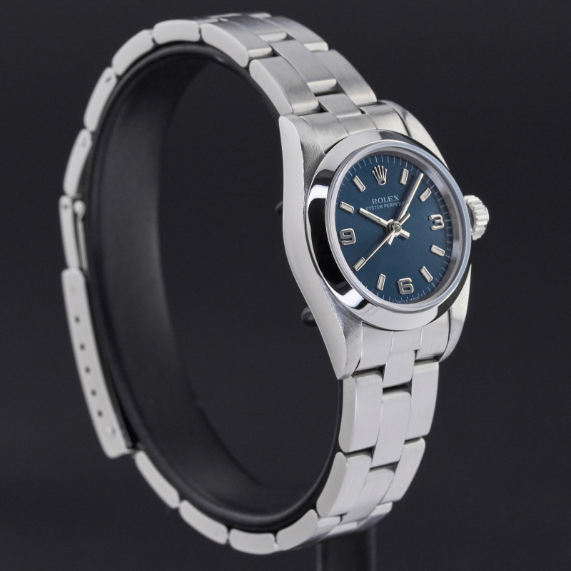 This Rolex Oyster Perpetual Lady 67180 features a Blue dial and is crafted from from stainless steel, with a production year of 1996.