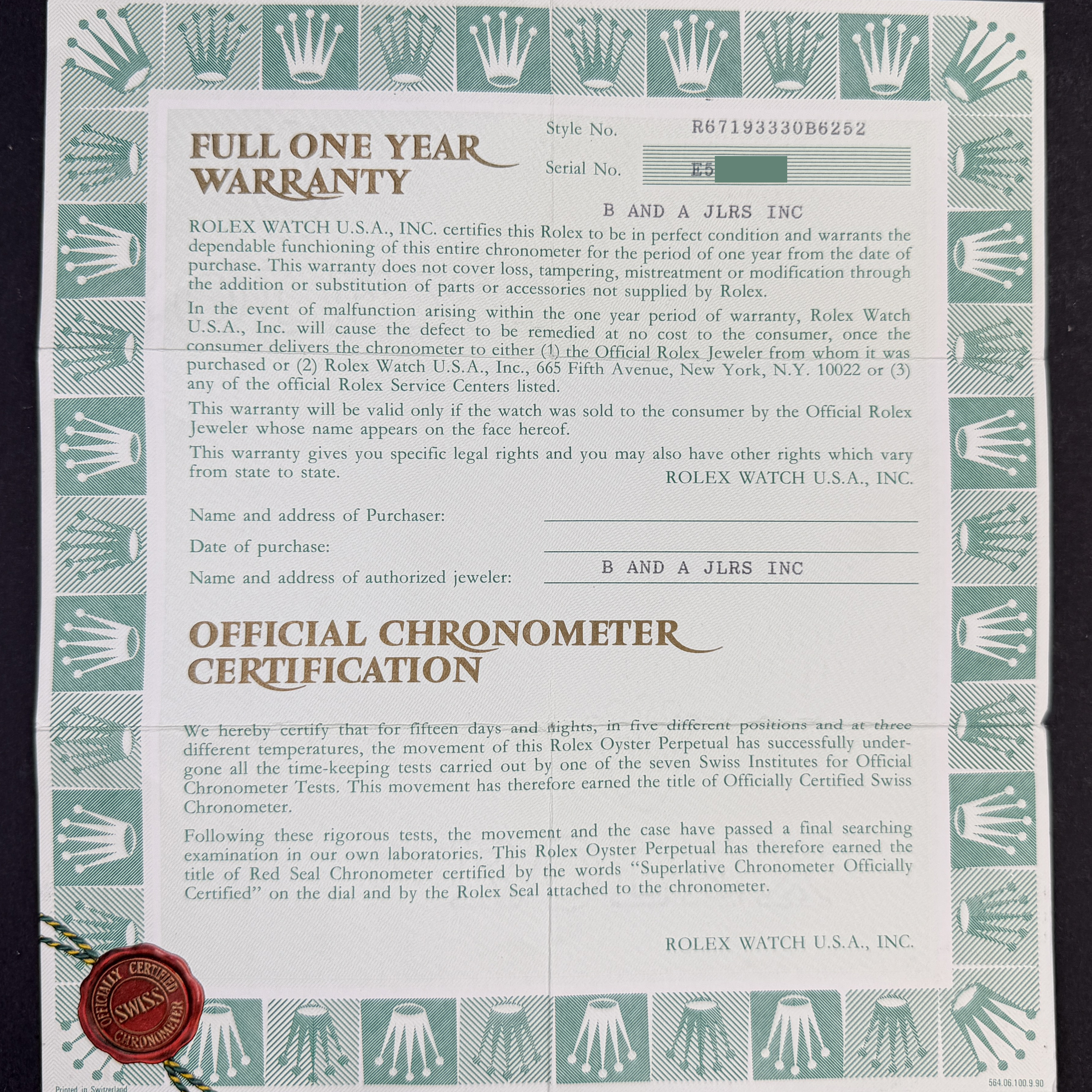• With our own exclusive Certificate of Originality