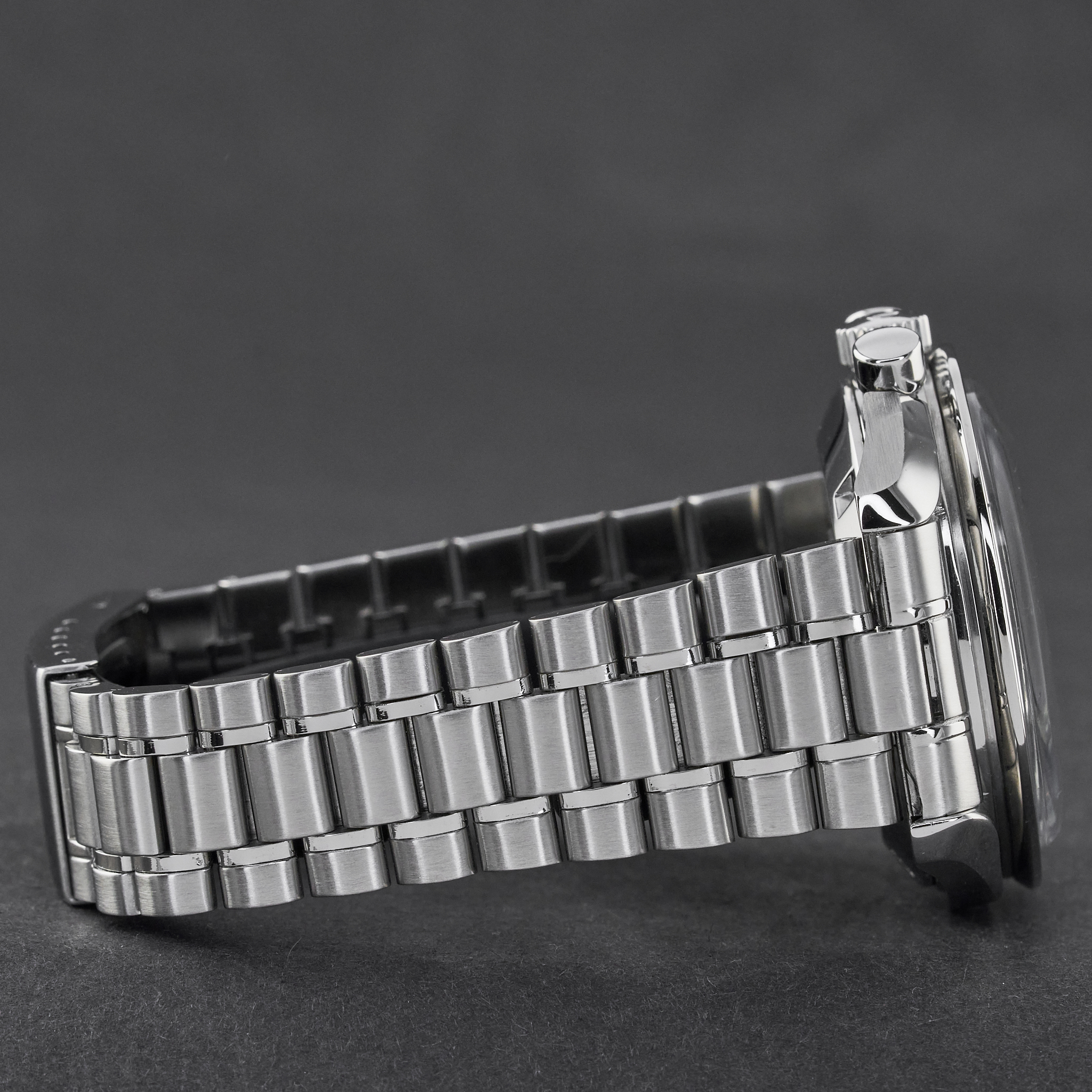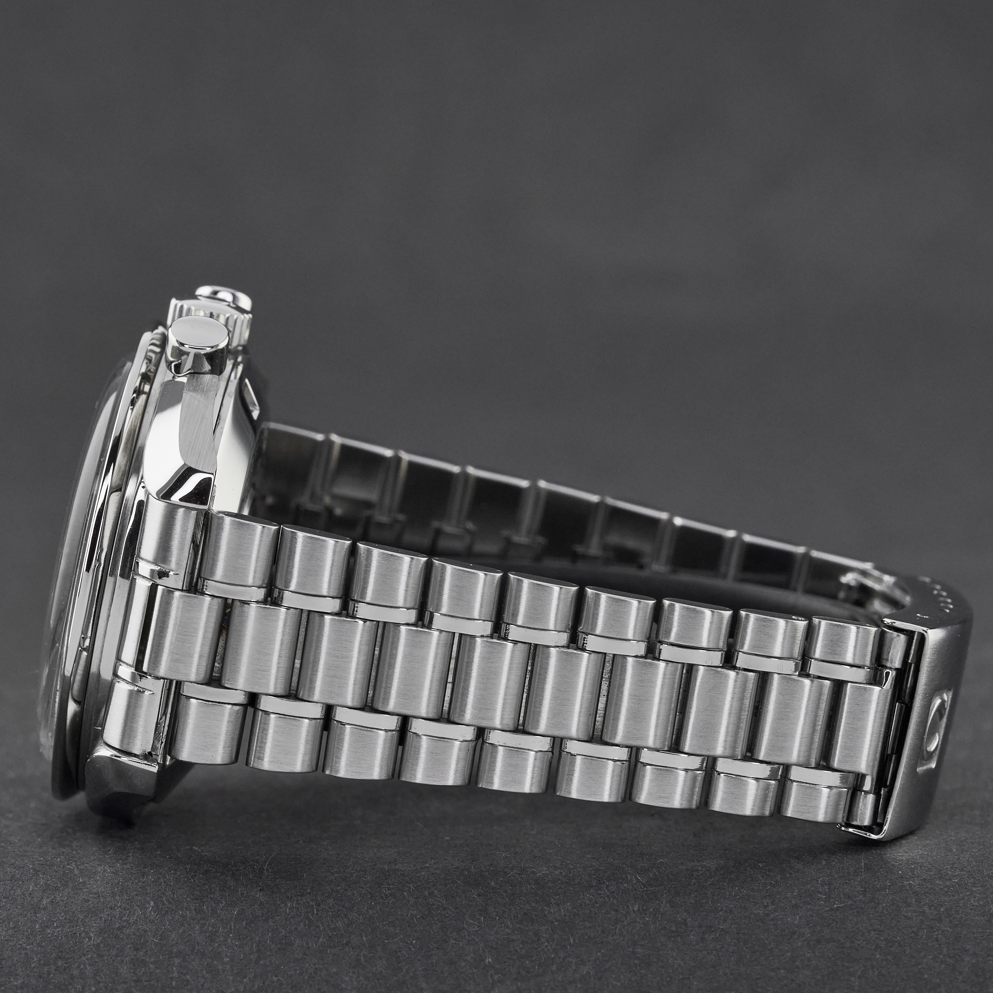 This Omega Speedmaster Professional introduced in 2002, is more than a timepiece – it’s a piece of spacefaring history. Known as the “Moonwatch,” this model remains faithful to the design worn during the Apollo missions, featuring a clean black dial, hesalite crystal, and manually wound movement.