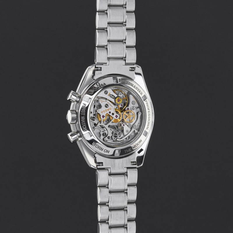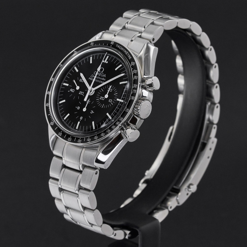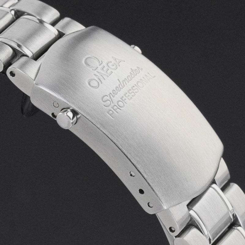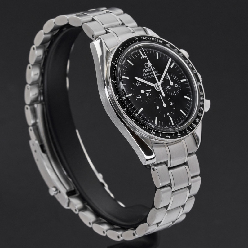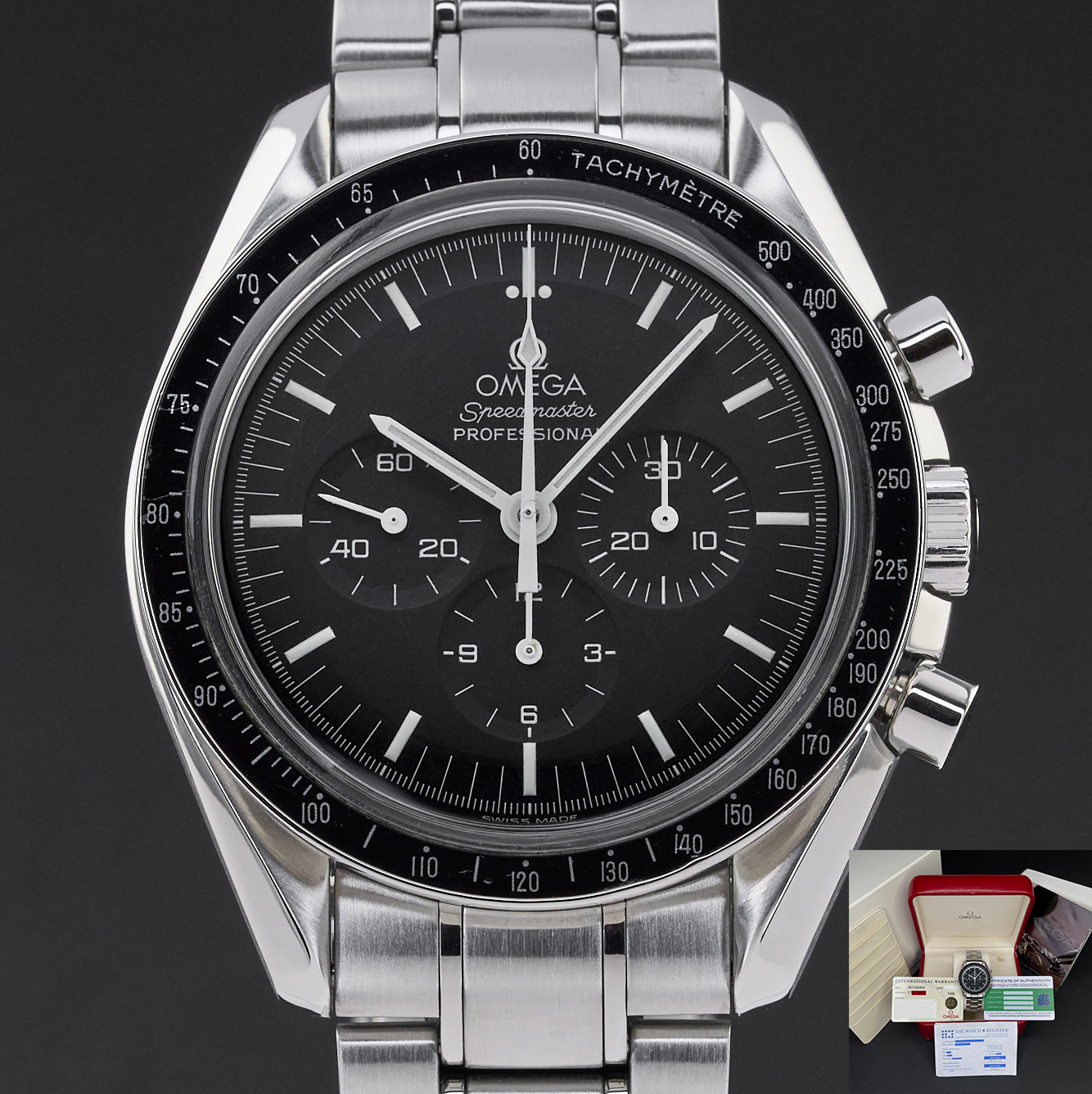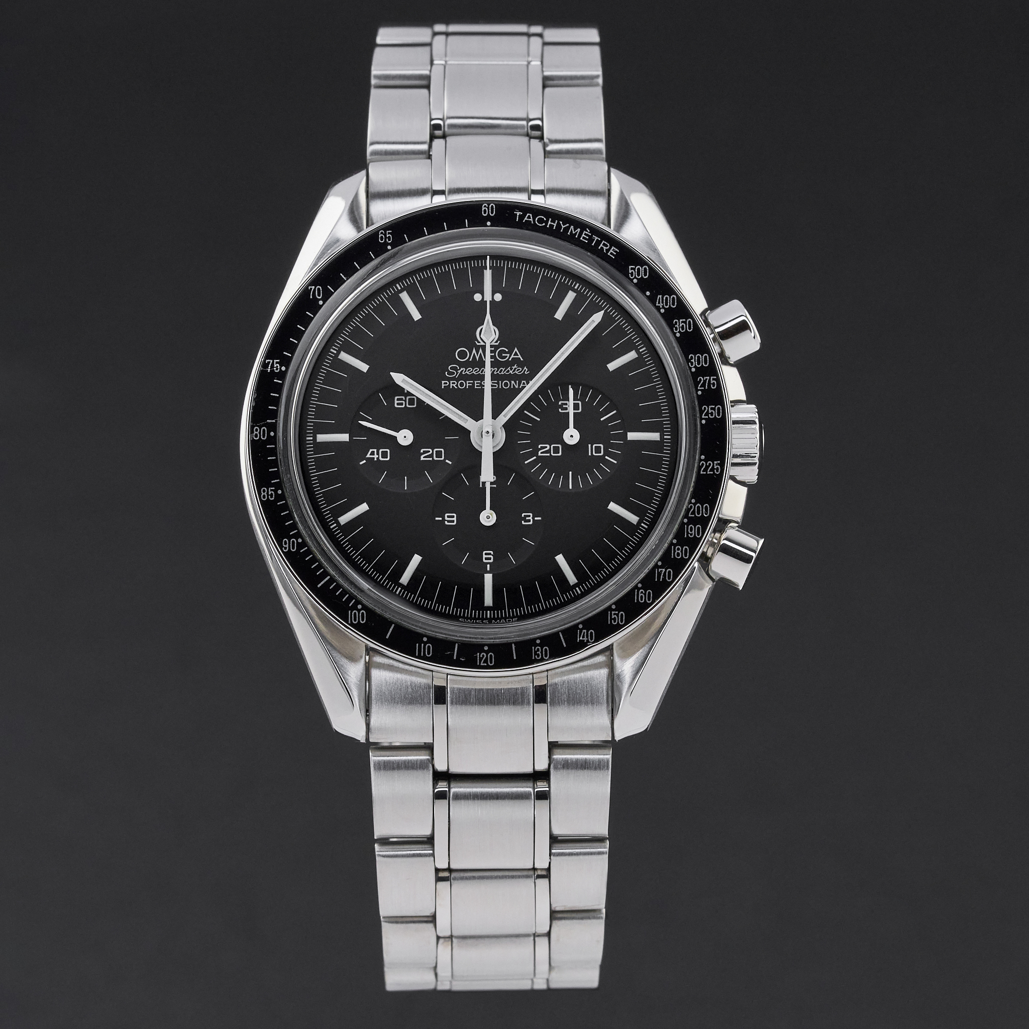This Omega Speedmaster Professional Moonwatch 3572.50 features a Black dial and is crafted from stainless steel, with a production year of 2000.