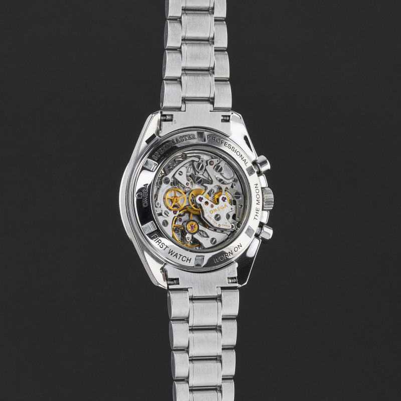 The Omega Speedmaster Professional blends historical design with a timeless aesthetic. Featuring a classic black dial with luminous markers and a clean tri-compax layout, this reference captures the essence of the Moonwatch lineage. What sets it apart is it's hesalite crystal on the front – a nod to NASA’s original specifications – paired with a sapphire display caseback, revealing the intricacies of the mechanical movement inside.