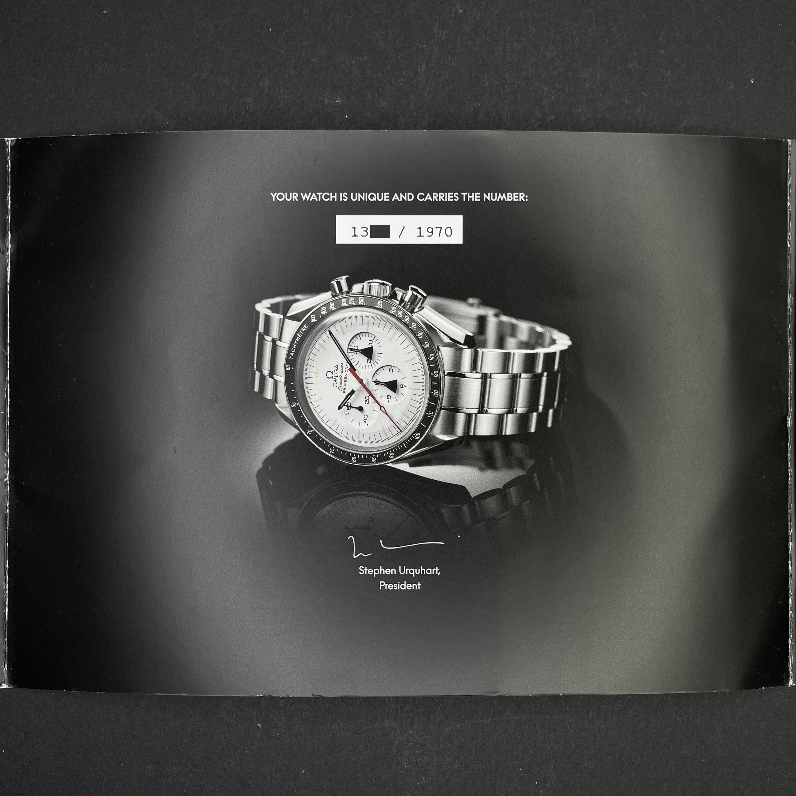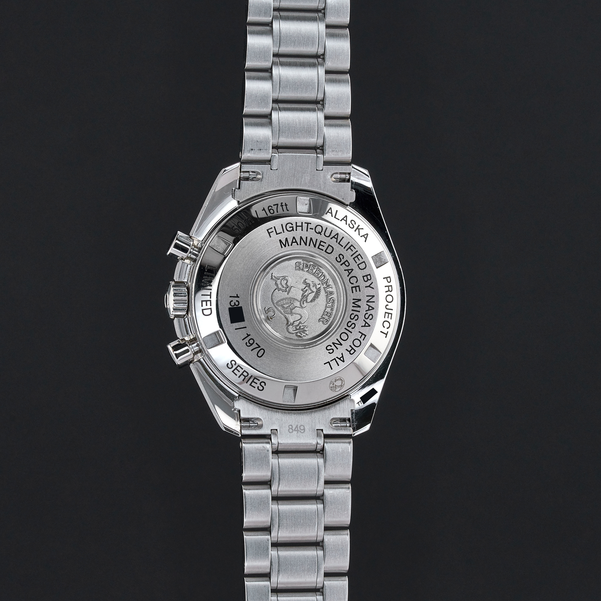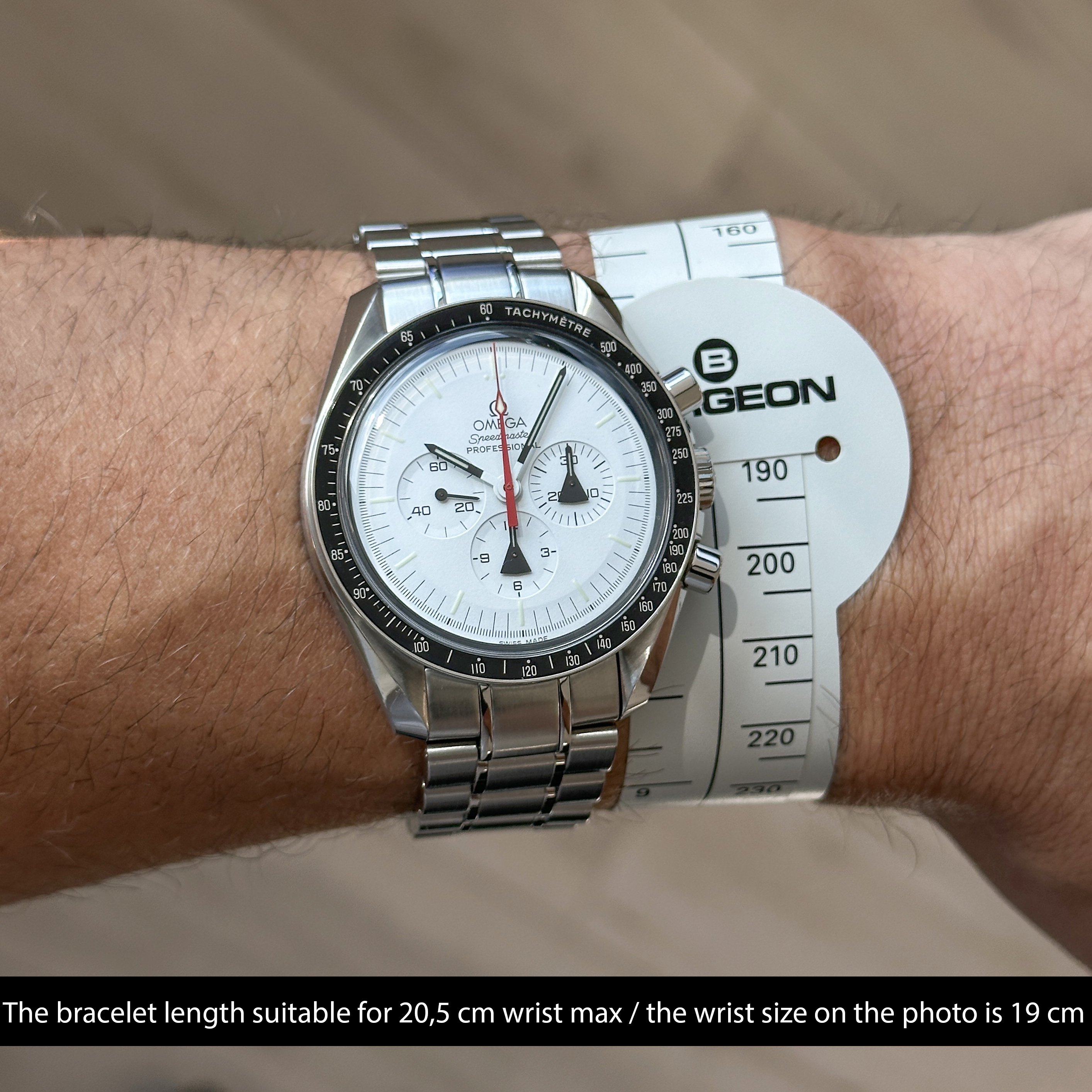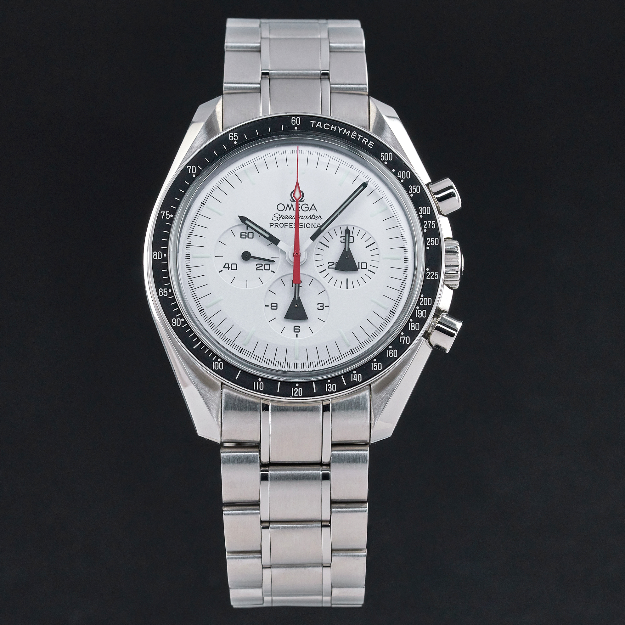 Bracelet: The watch is presented on an original stainless steel bracelet with a fastener for deployment “Omega” around 20,5 cm including the watch case, signed "Speedmaster", "Professional" with the “Omega” logo clasp.