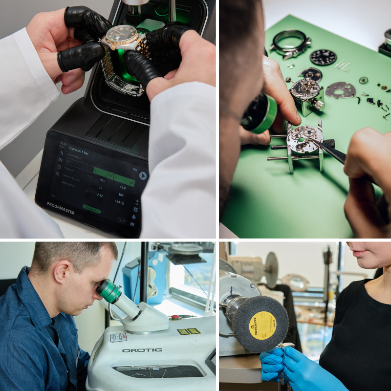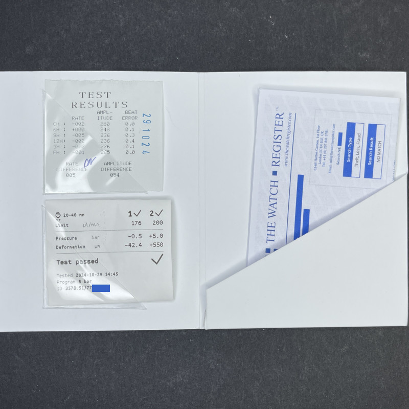 PLEASE NOTE THAT ALL OUR WATCHES ARE CAREFULLY SERVICED BY OUR 12 WATCHMAKERS. The service includes movement cleaning in special equipment, oiling and accuracy adjustment. After service we check accuracy of all watches on the Timegrapher and make 48 hours test on the Cyclotest.