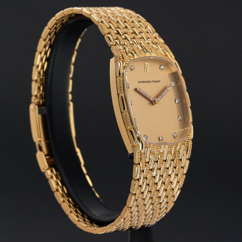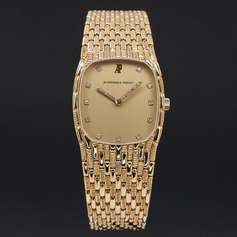 This particulr Audemars Piguet Cobra introduced 1991, stands out as part of the iconic Cobra line, known for it's fluid, jewellery-like bracelet design. The champagne dial with small diamond markers adds a touch of discreet brilliance, enhancing the watch’s warm and sophisticated character.