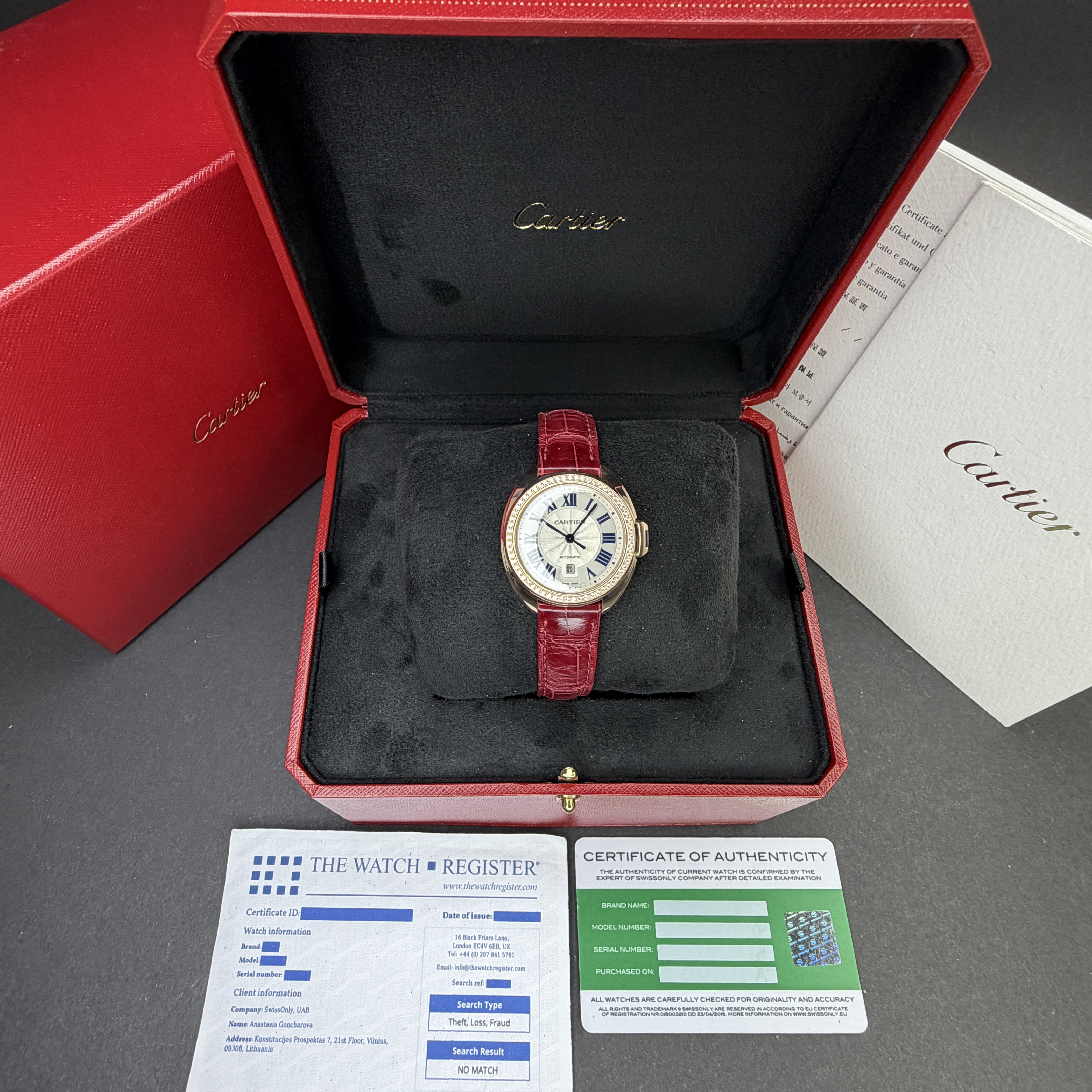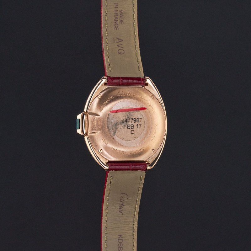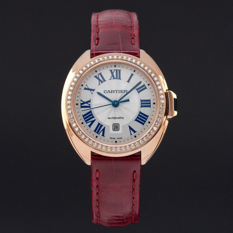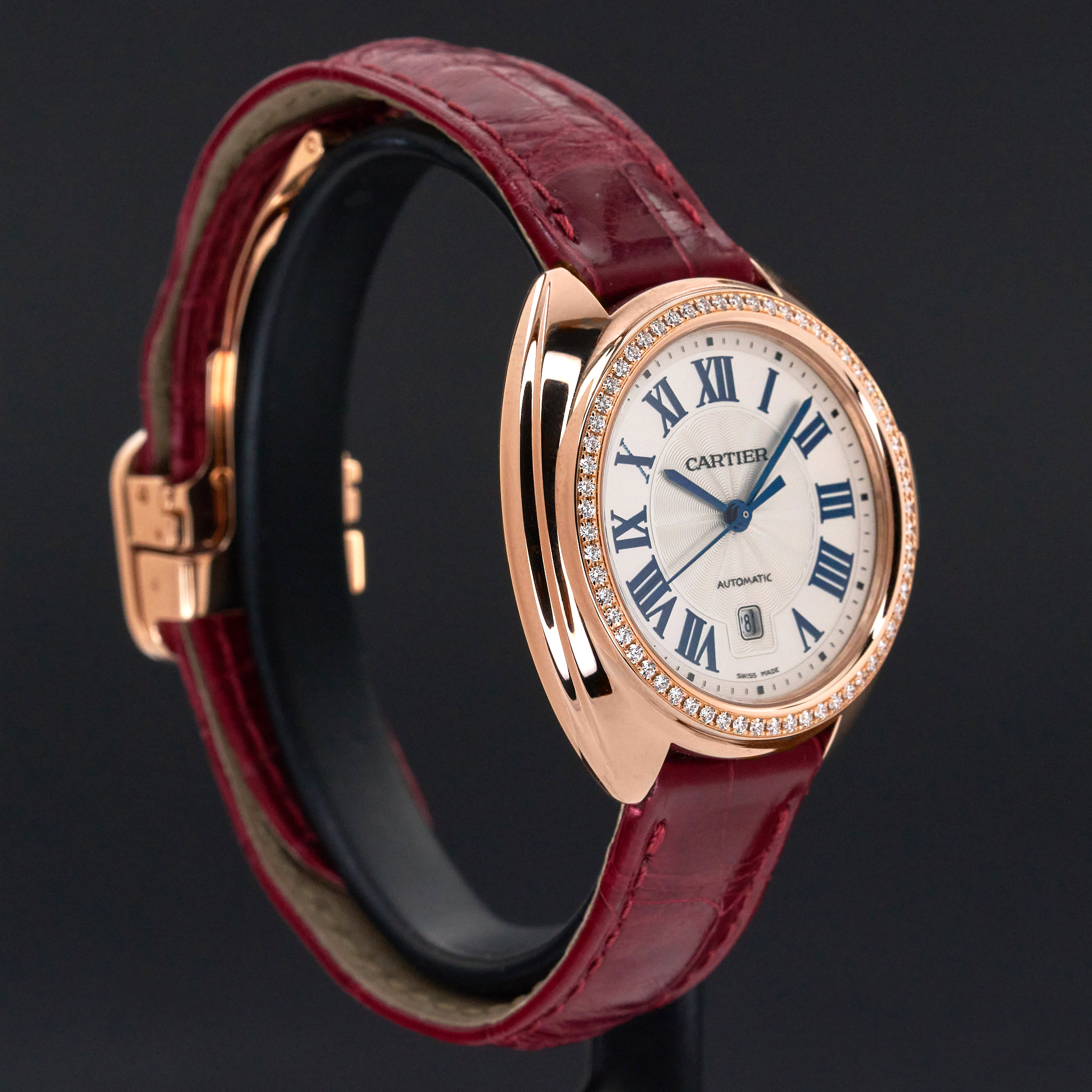 This Cartier Clé de Cartier WJCL0016 features a Silver Roman dial and is crafted from 18K rose gold, with a production year of 2015.