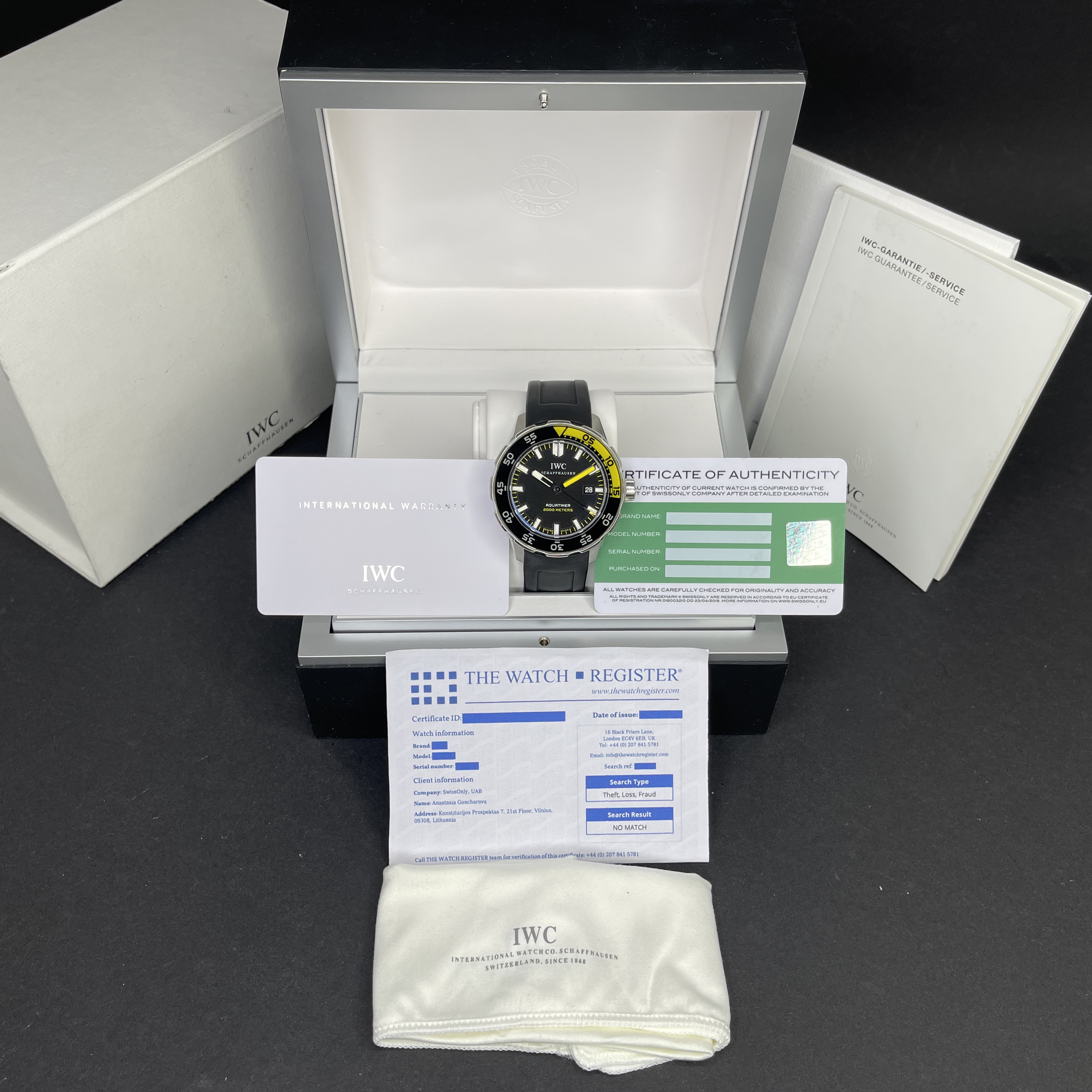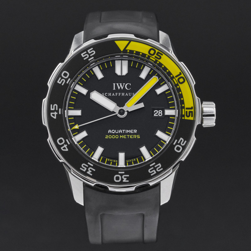This IWC Aquatimer Automatic 2000 IW356801 features a Black dial and is crafted from stainless steel.