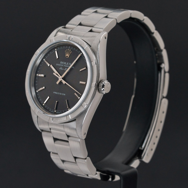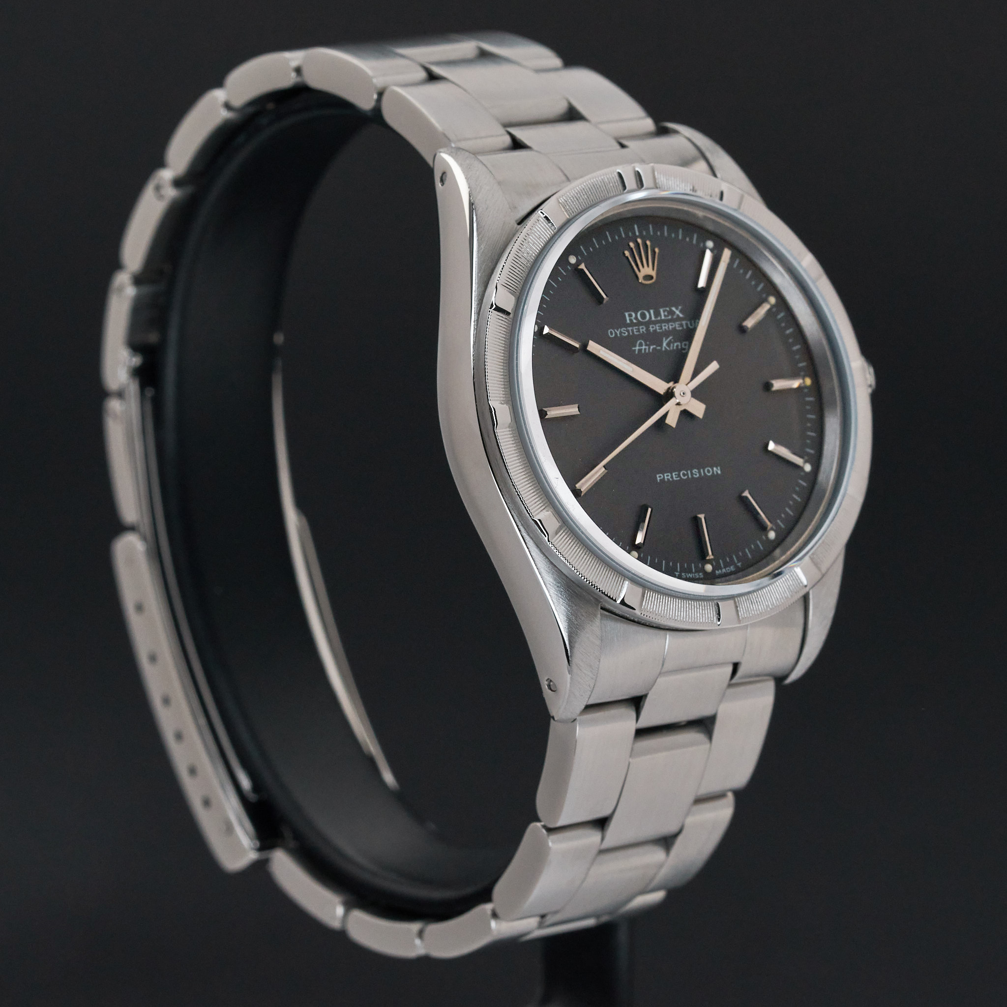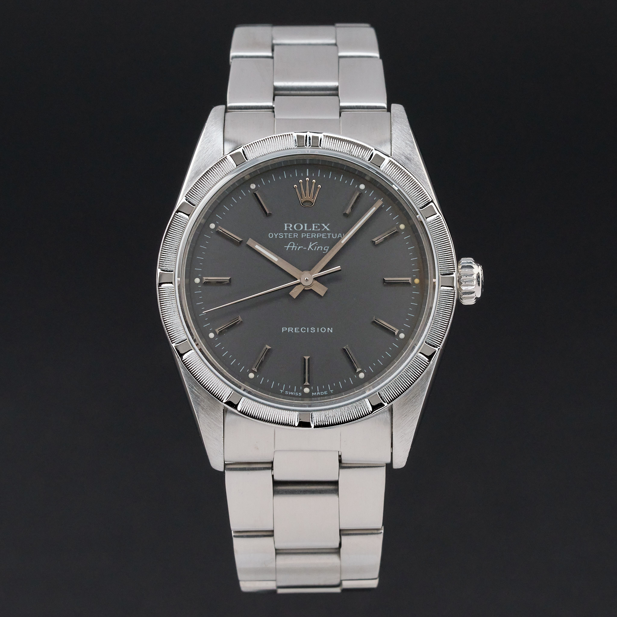 This Rolex Air-King 14010 features a Grey dial and is crafted from stainless steel, with a production year of 1991.