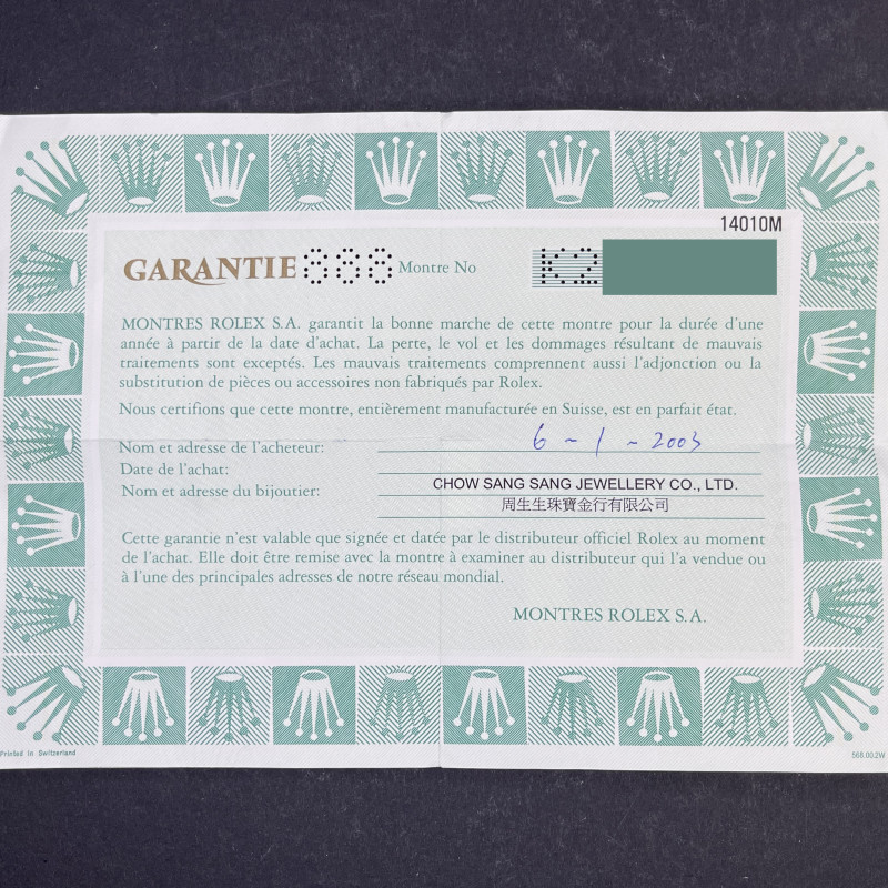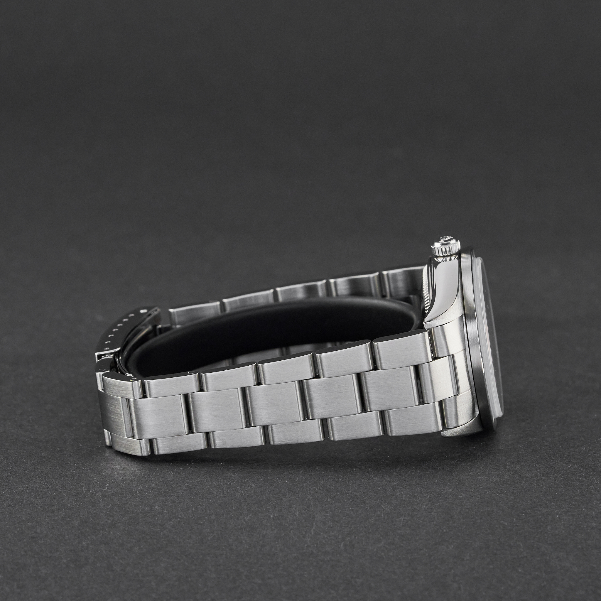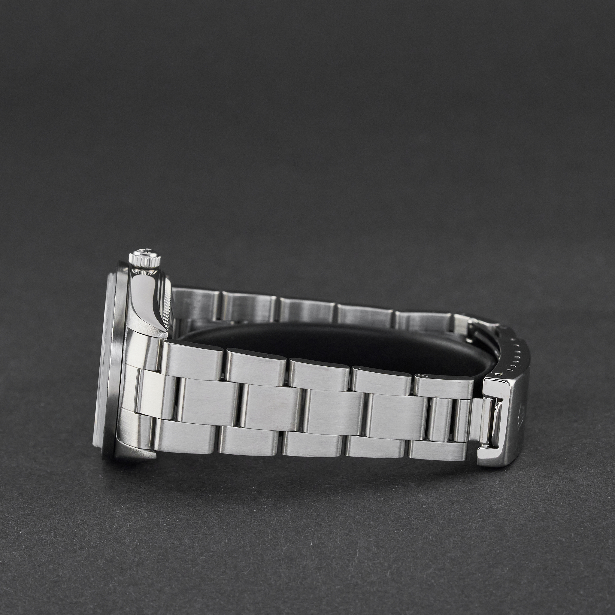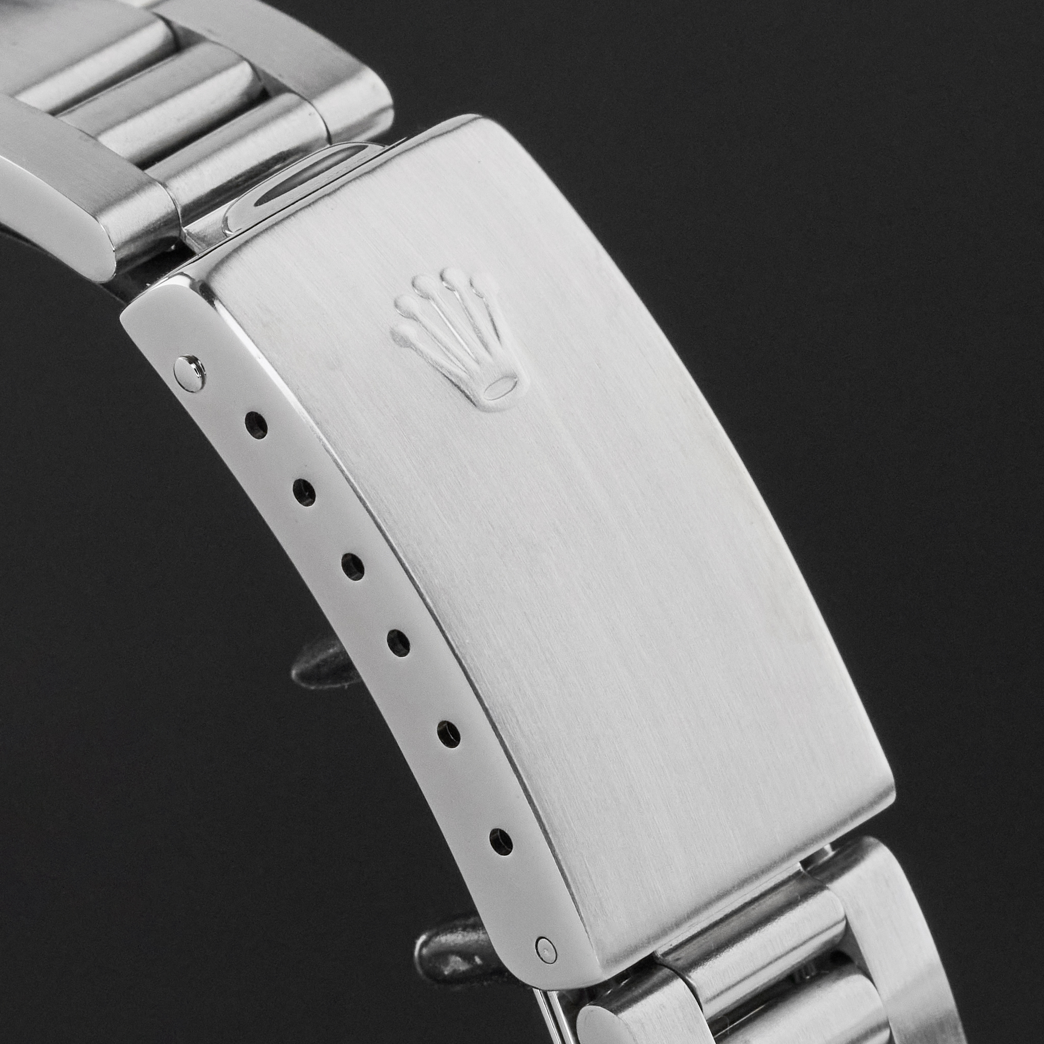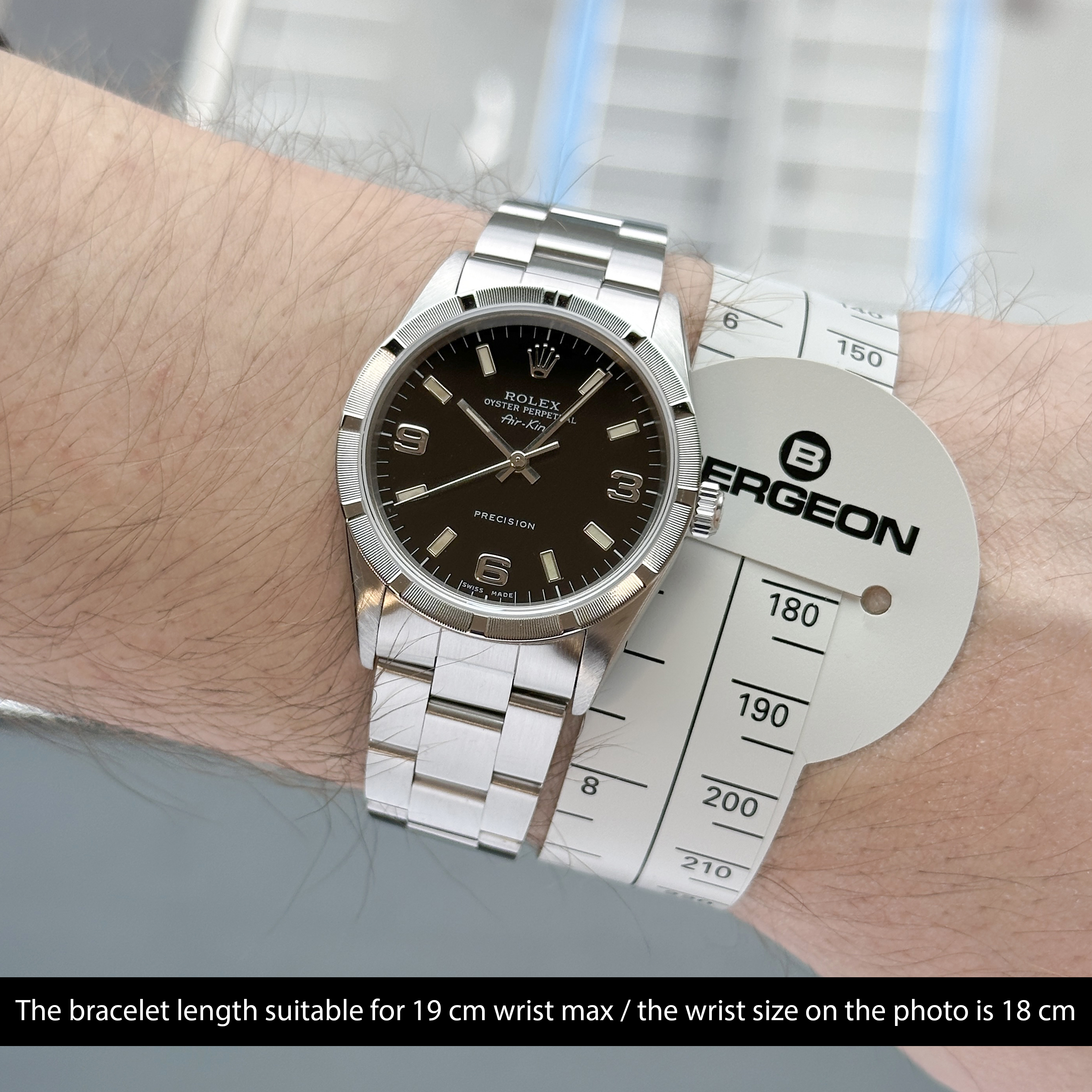 This Rolex Air-King 14010 features a Black Arabic dial and is crafted from stainless steel, with a production year of 2001.