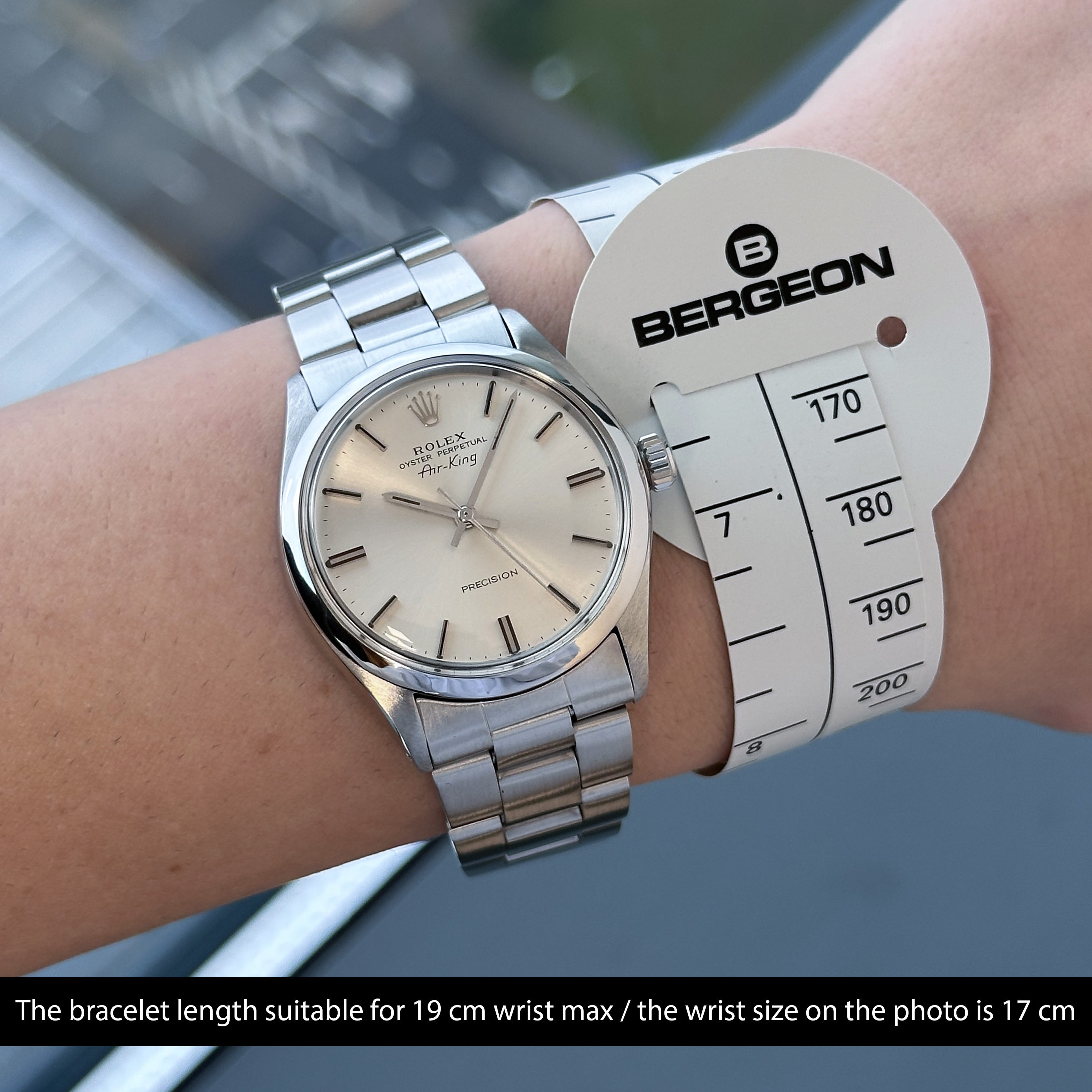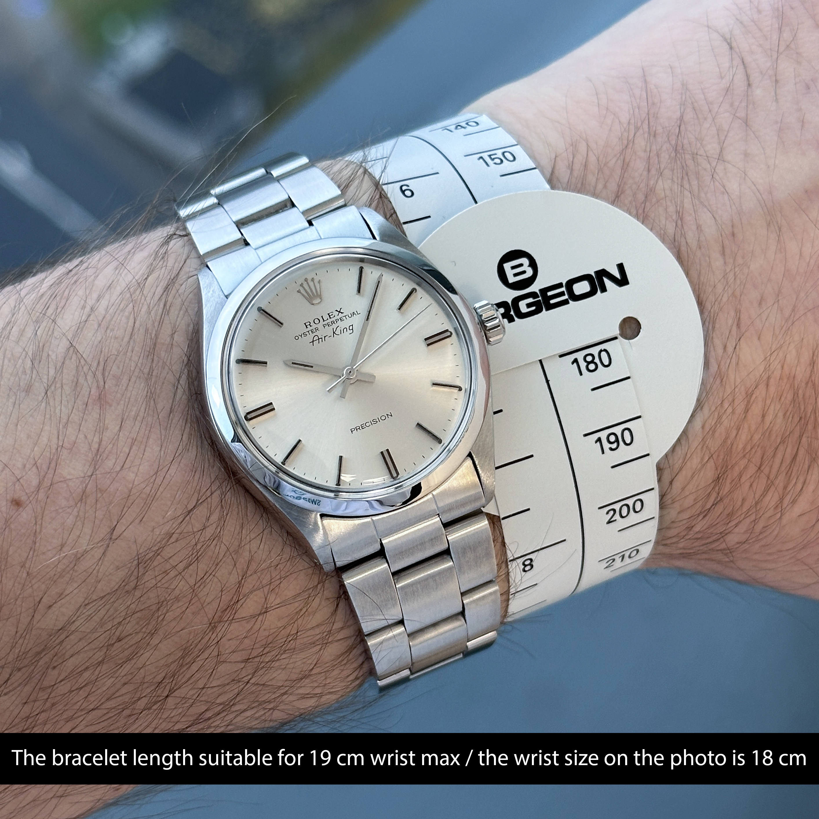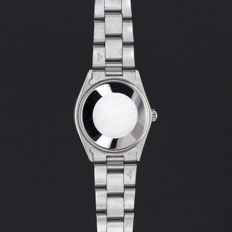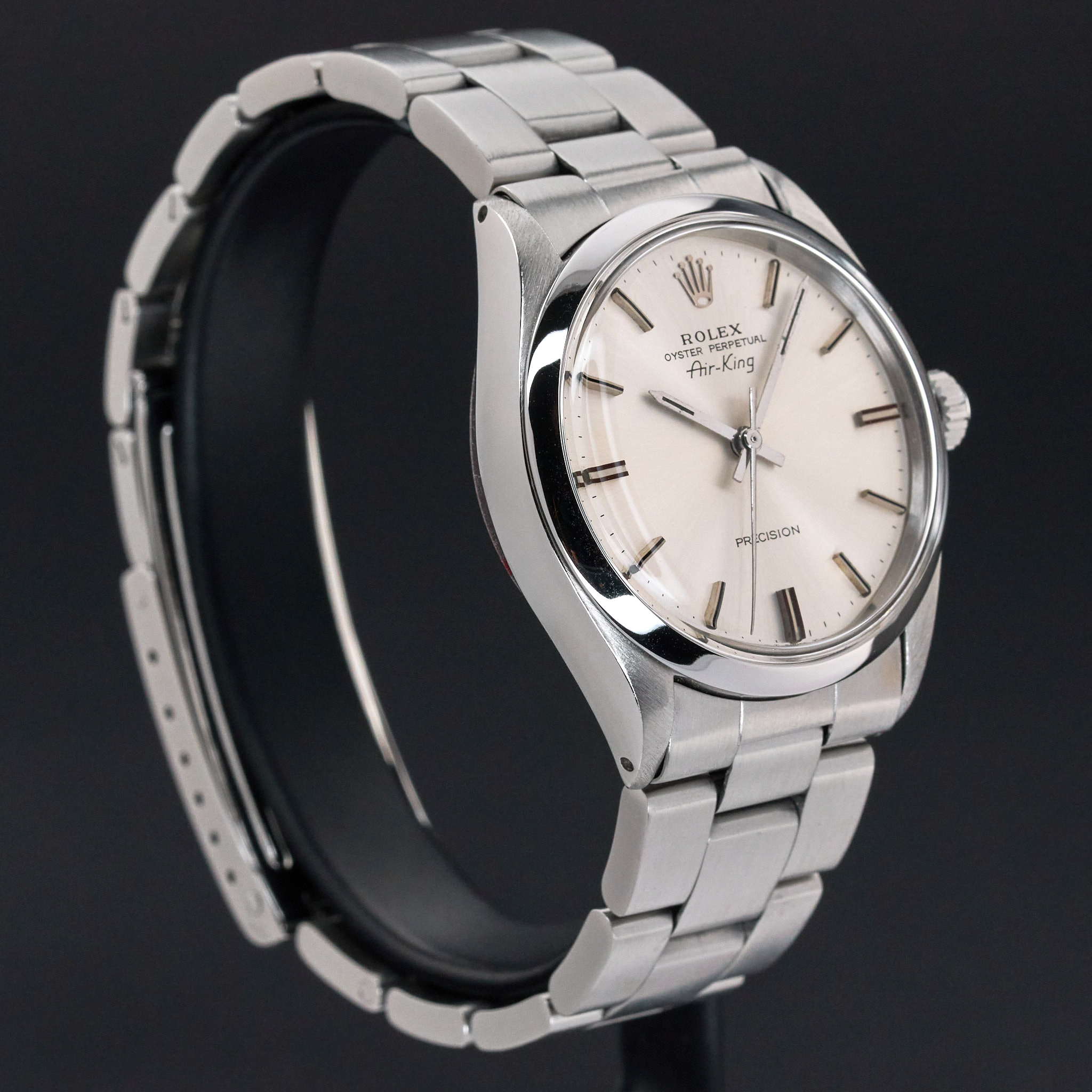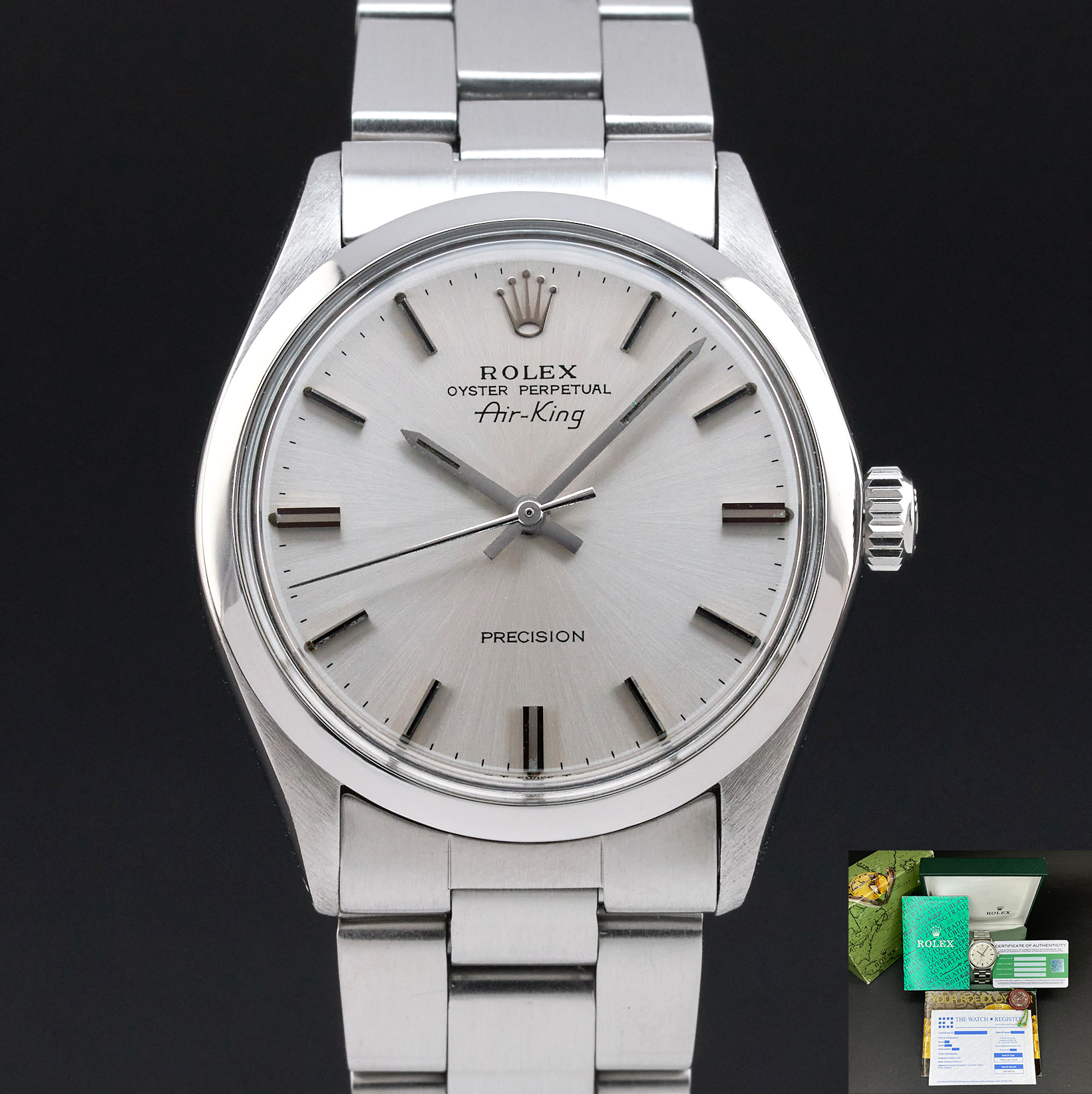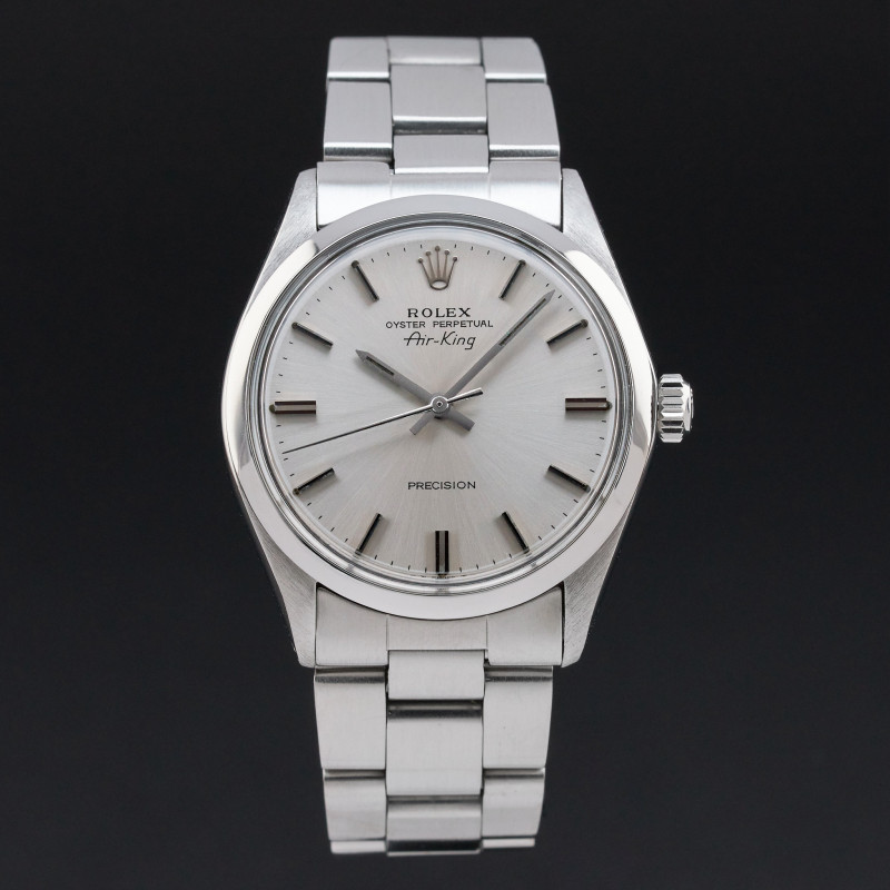 This Rolex Air-King 5500 features a Silver dial and is crafted from stainless steel, with a production year of 1973.
