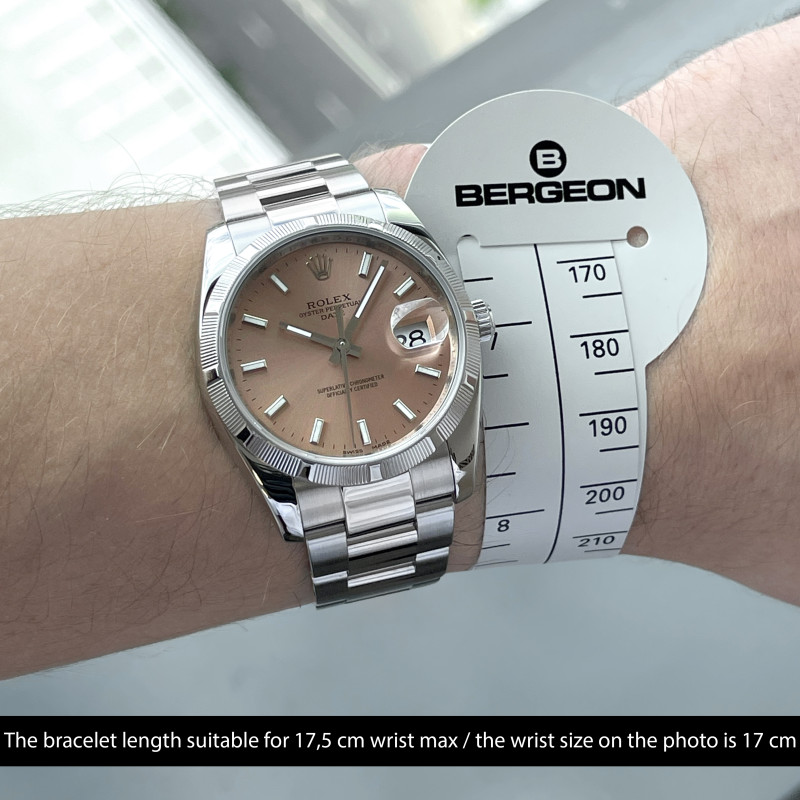 This particular Rolex Oyster Perpetual Date introduced in 2008, stands out with it’s rare salmon-colored dial, a shade that adds warmth and individuality to the timeless design. The clean display with the date at 3 o’clock reinforces Rolex’s signature harmony of elegance and functionality.