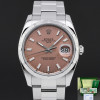 This Rolex Oyster Perpetual Date 115210 features a Salmon dial and is crafted from stainless steel, with a production year of 2008.