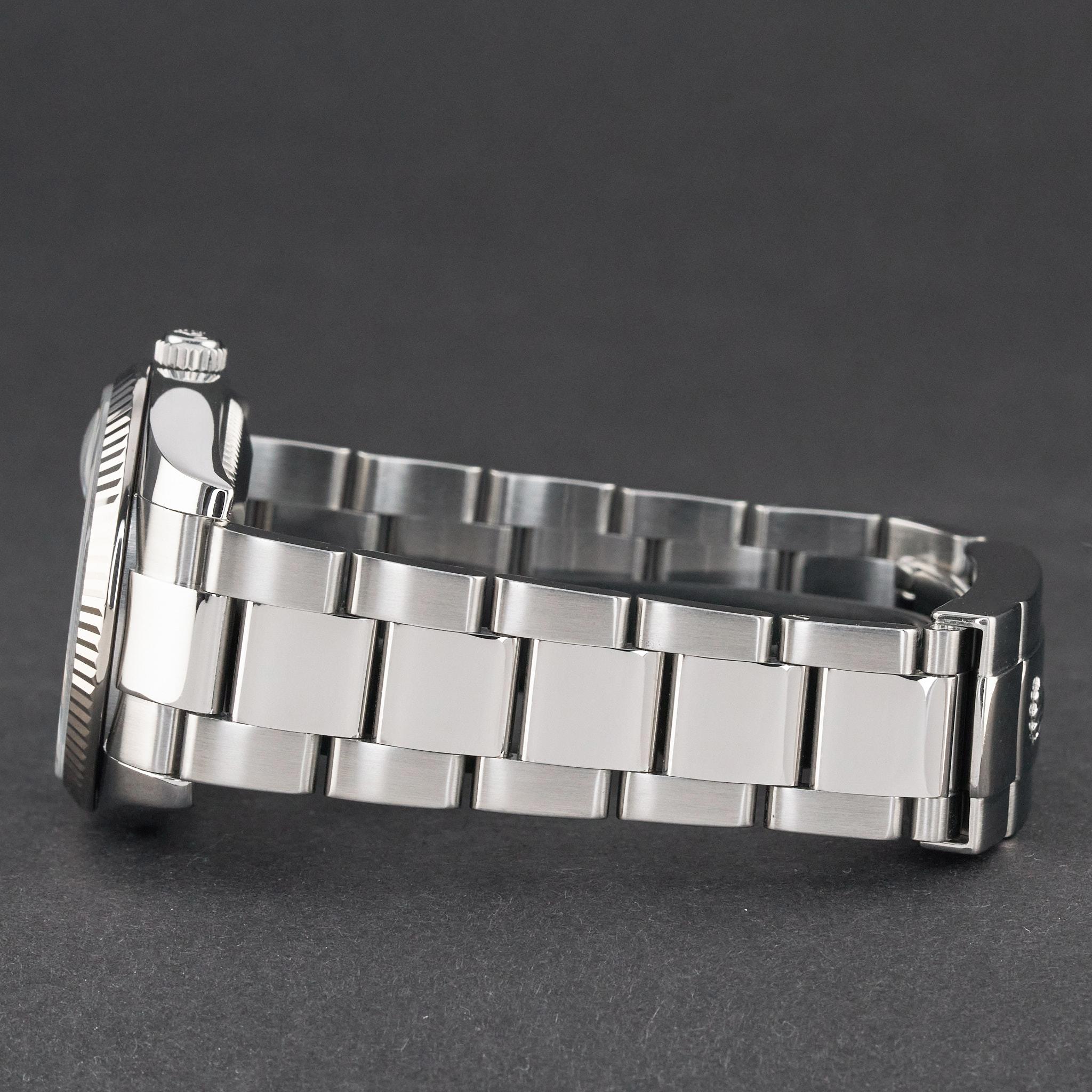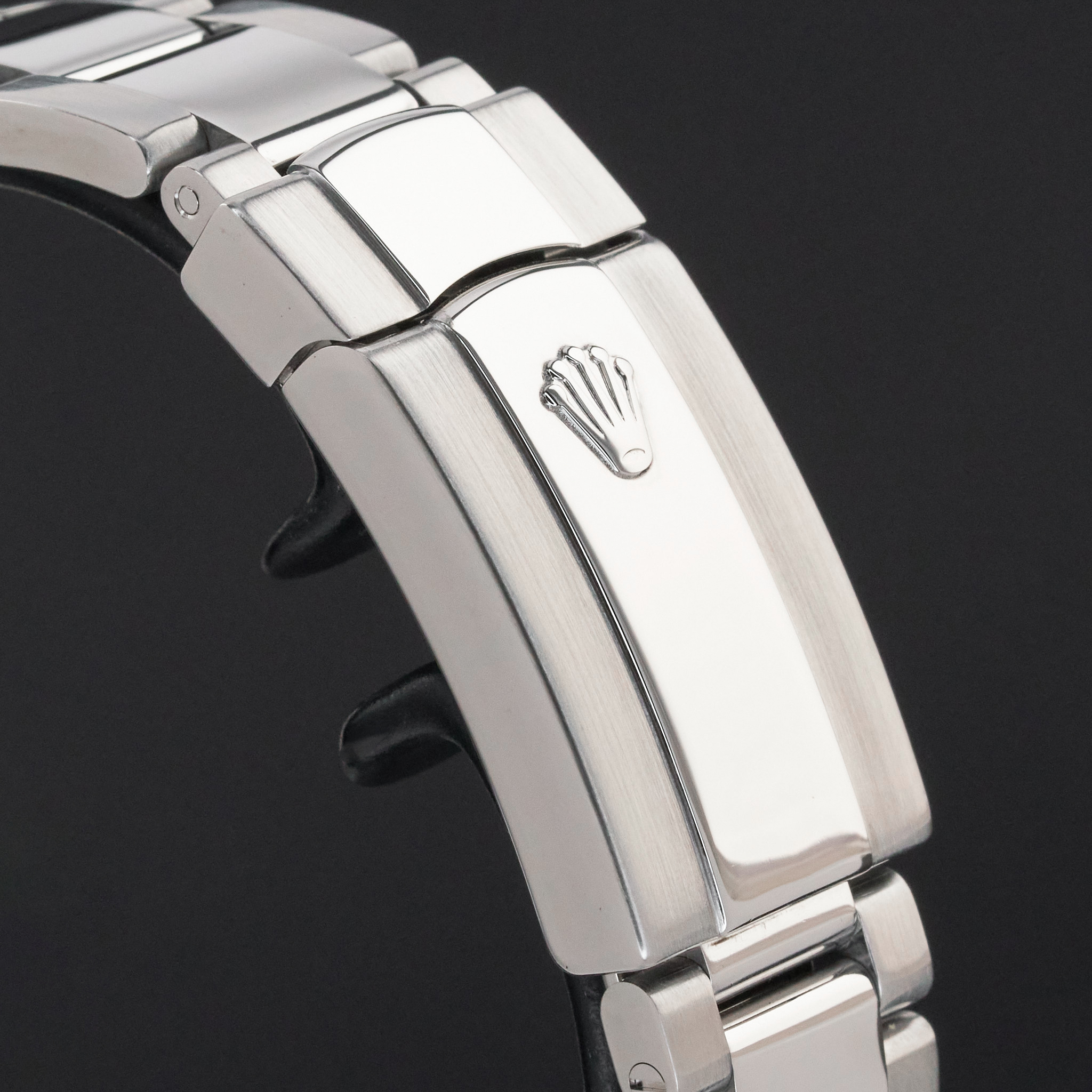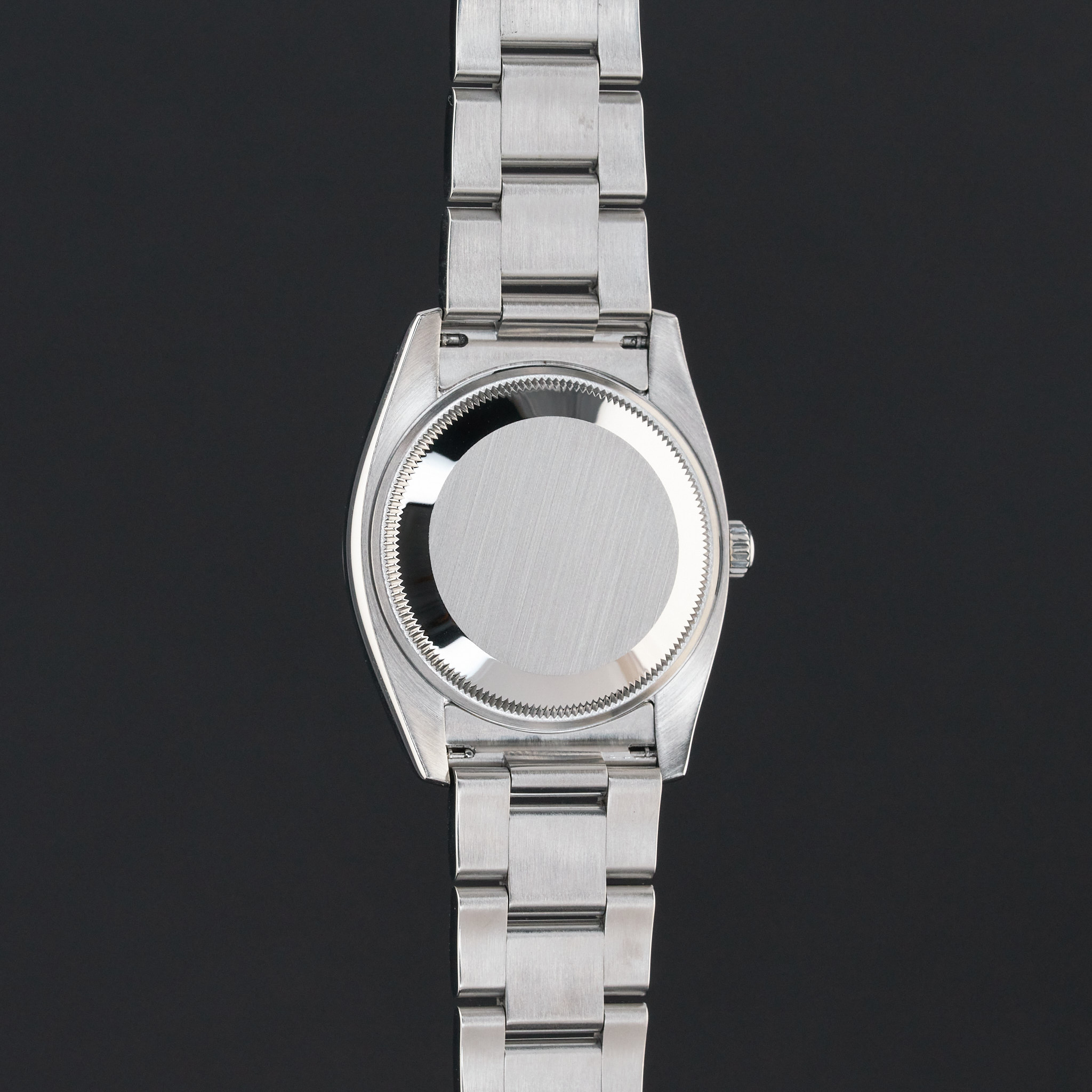 This Rolex Oyster Perpetual Date 115234 features a Silver Roman dial and is crafted from stainless steel, with a production year of 2006.