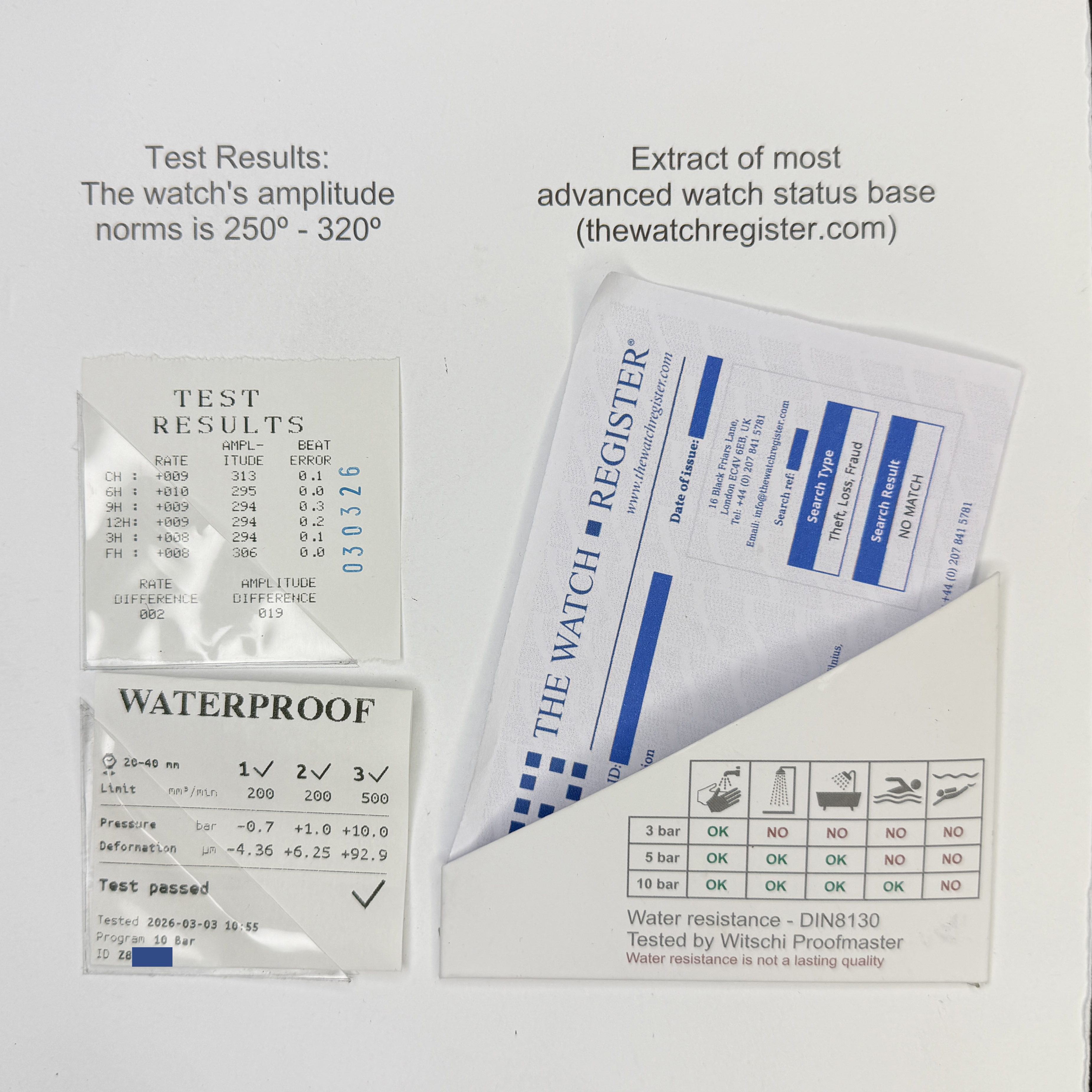 • Watches are serviced in our own workshop by our 12 experienced watchmakers.