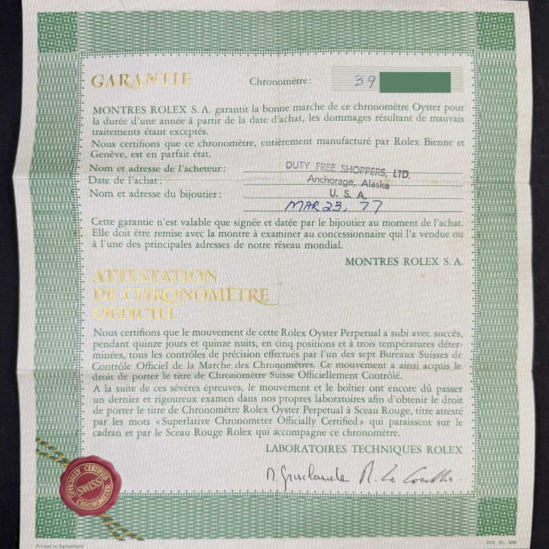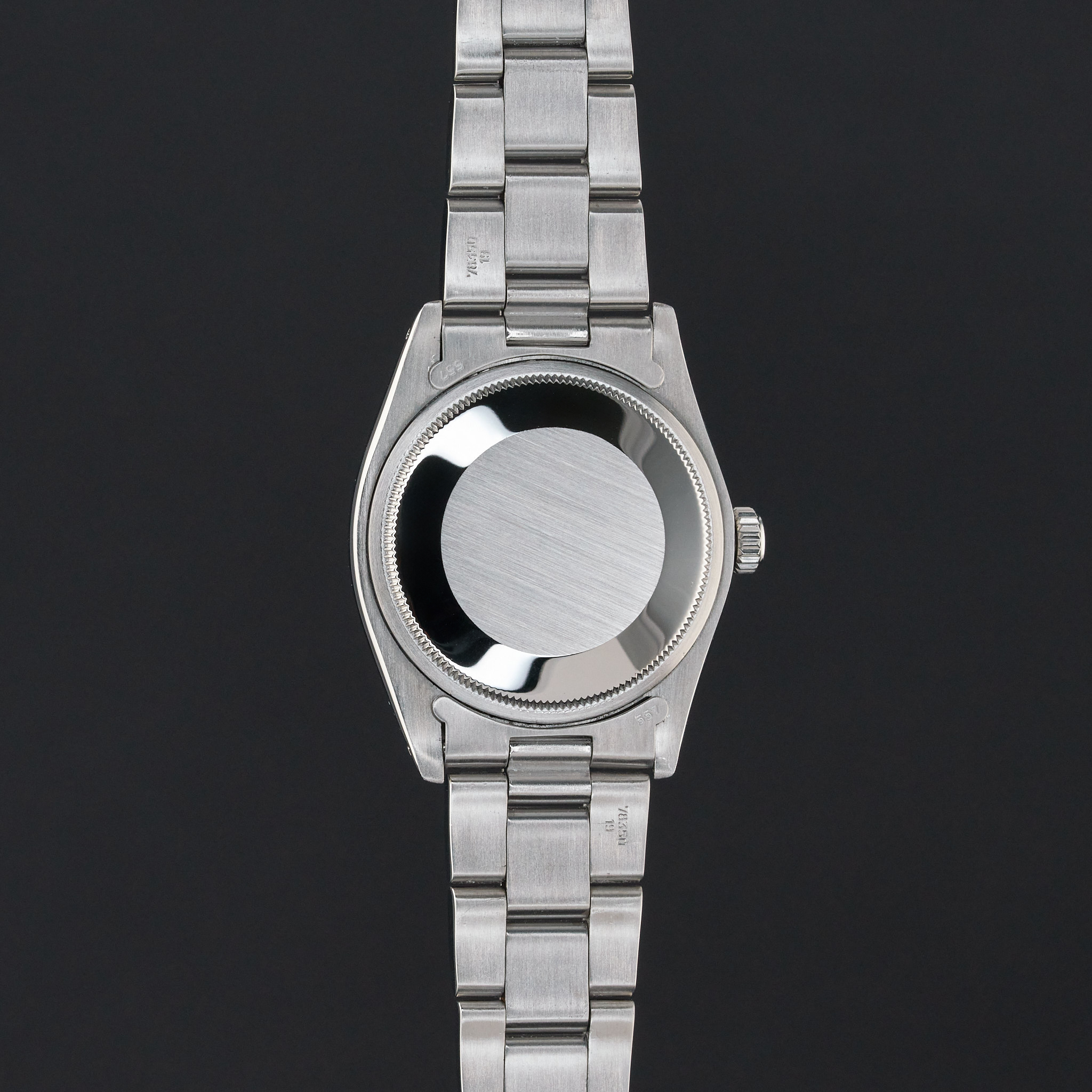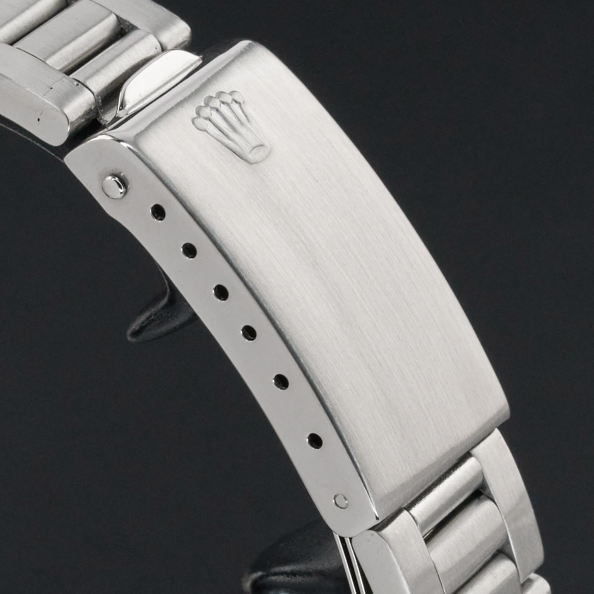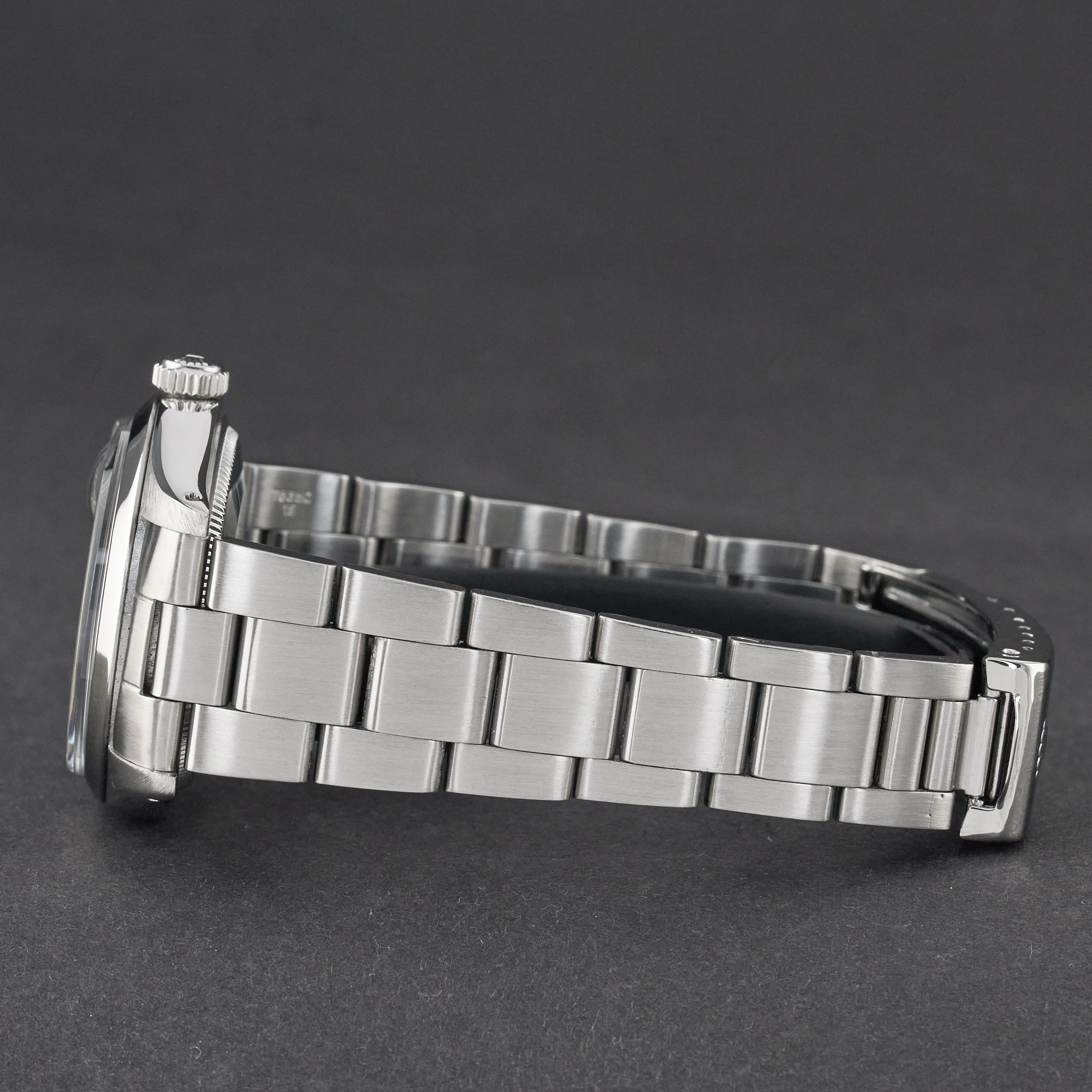 This Rolex Oyster Perpetual Date 1500 features a Black dial and is crafted from from stainless steel, with a production year of 1975.