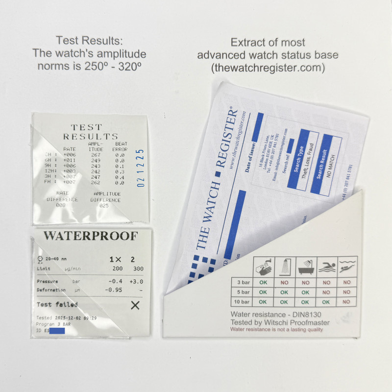 • Watches are serviced in our own workshop by our 12 experienced watchmakers.