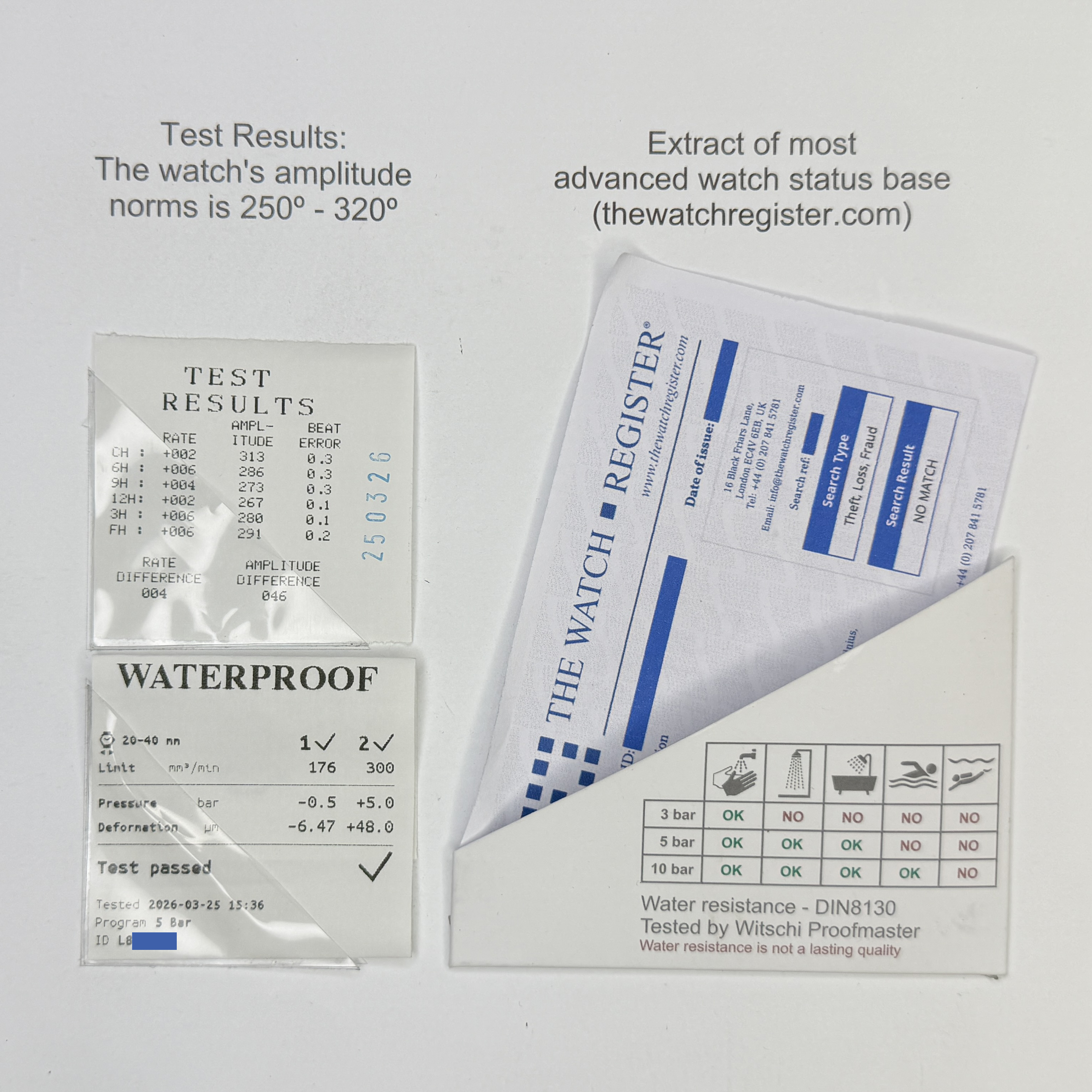 • Watches are serviced in our own workshop by our 12 experienced watchmakers.