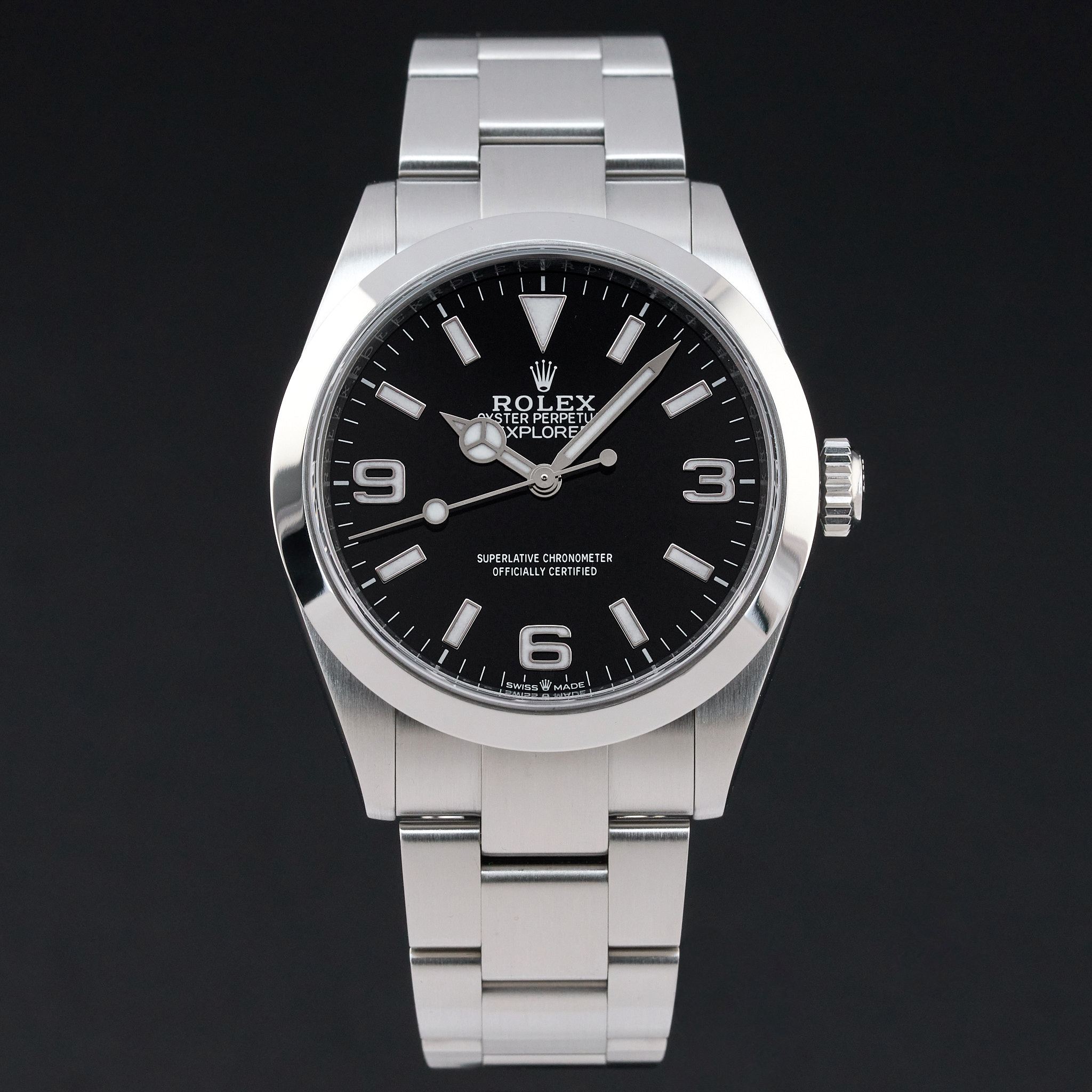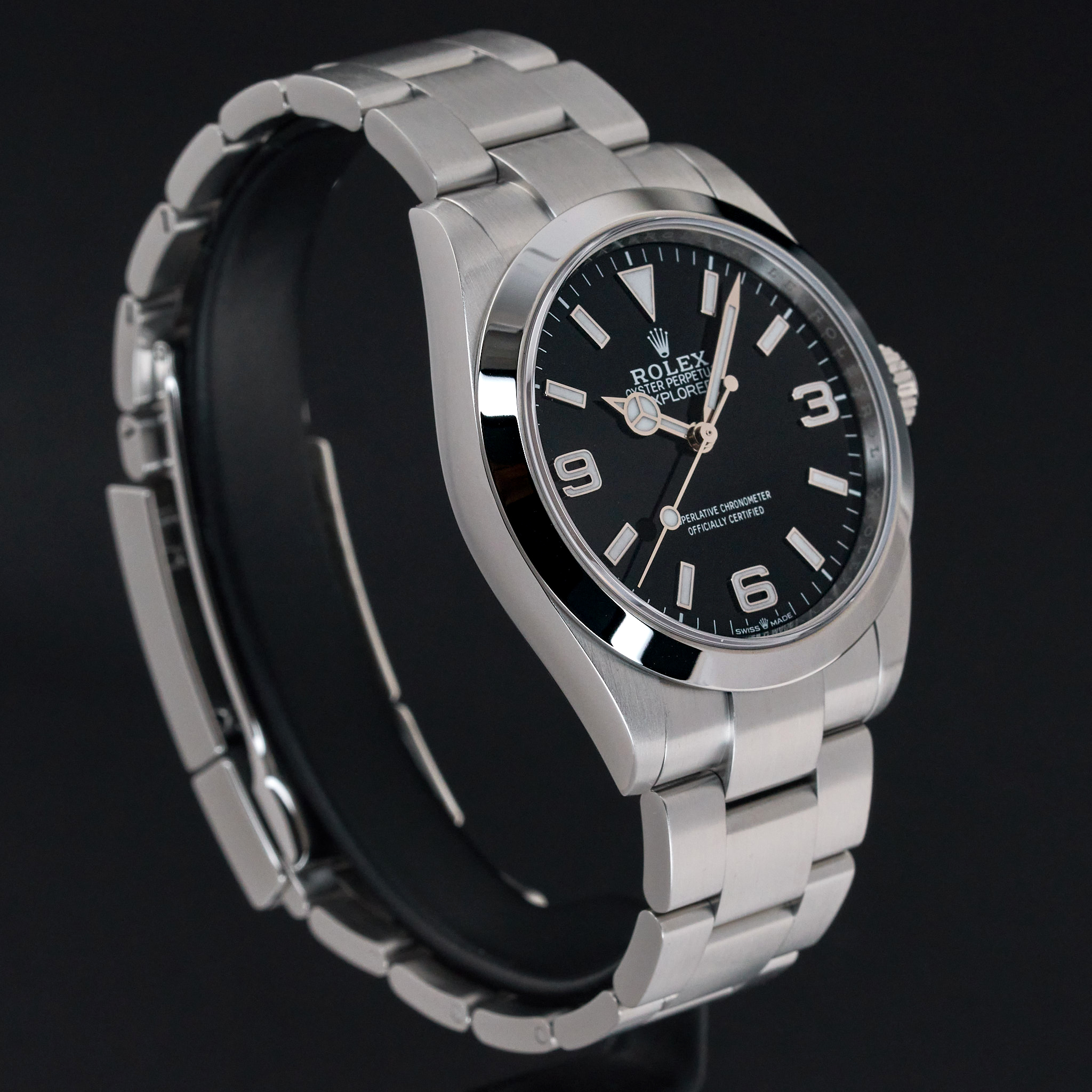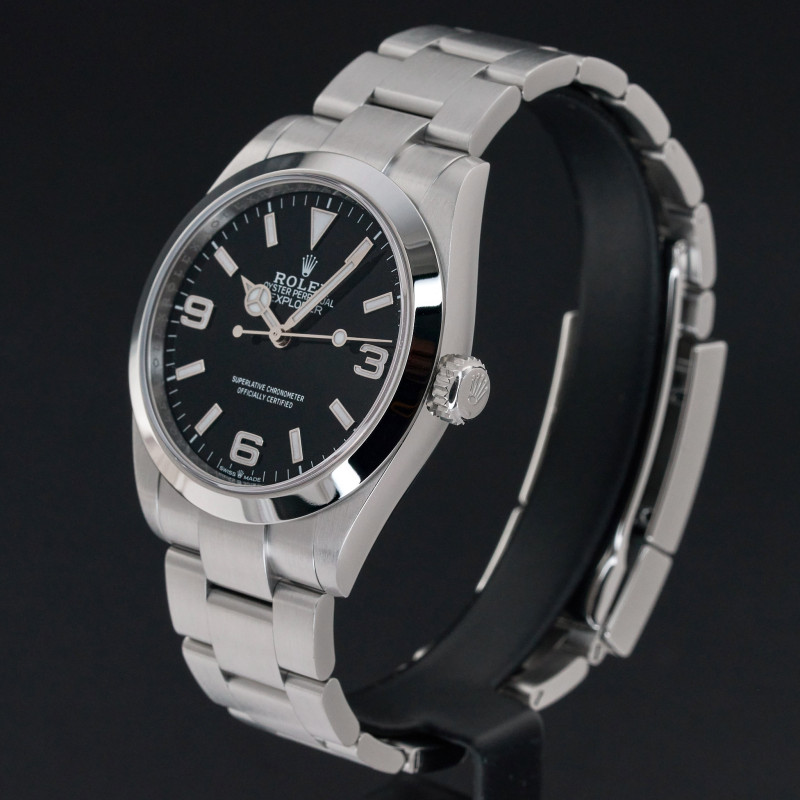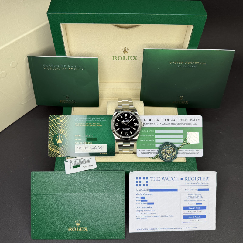 This Rolex Explorer 224270 features a Black Arabic dial and is crafted from stainless steel, with a production year of 2024.