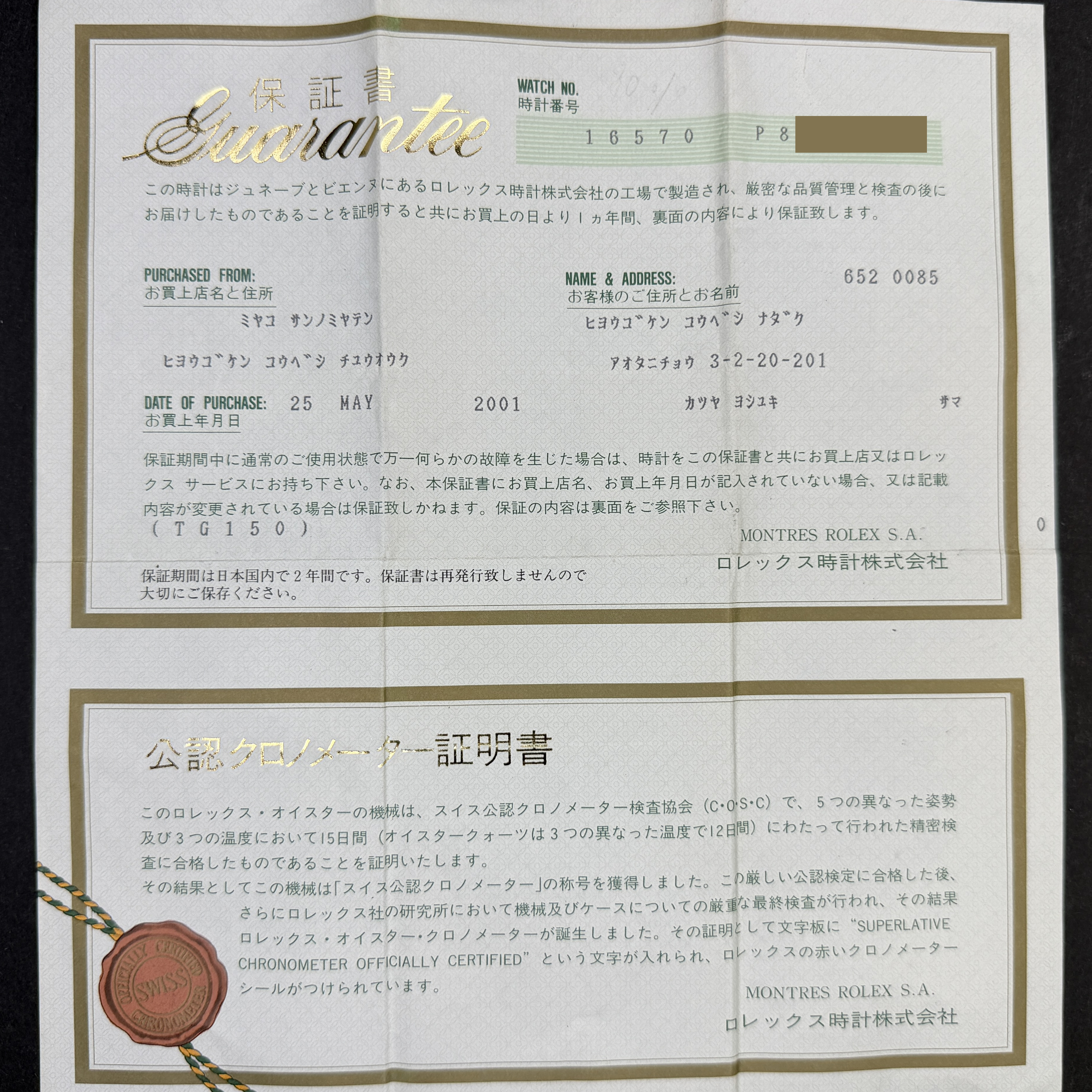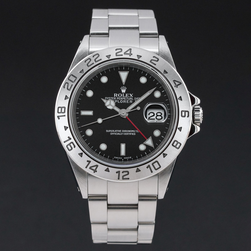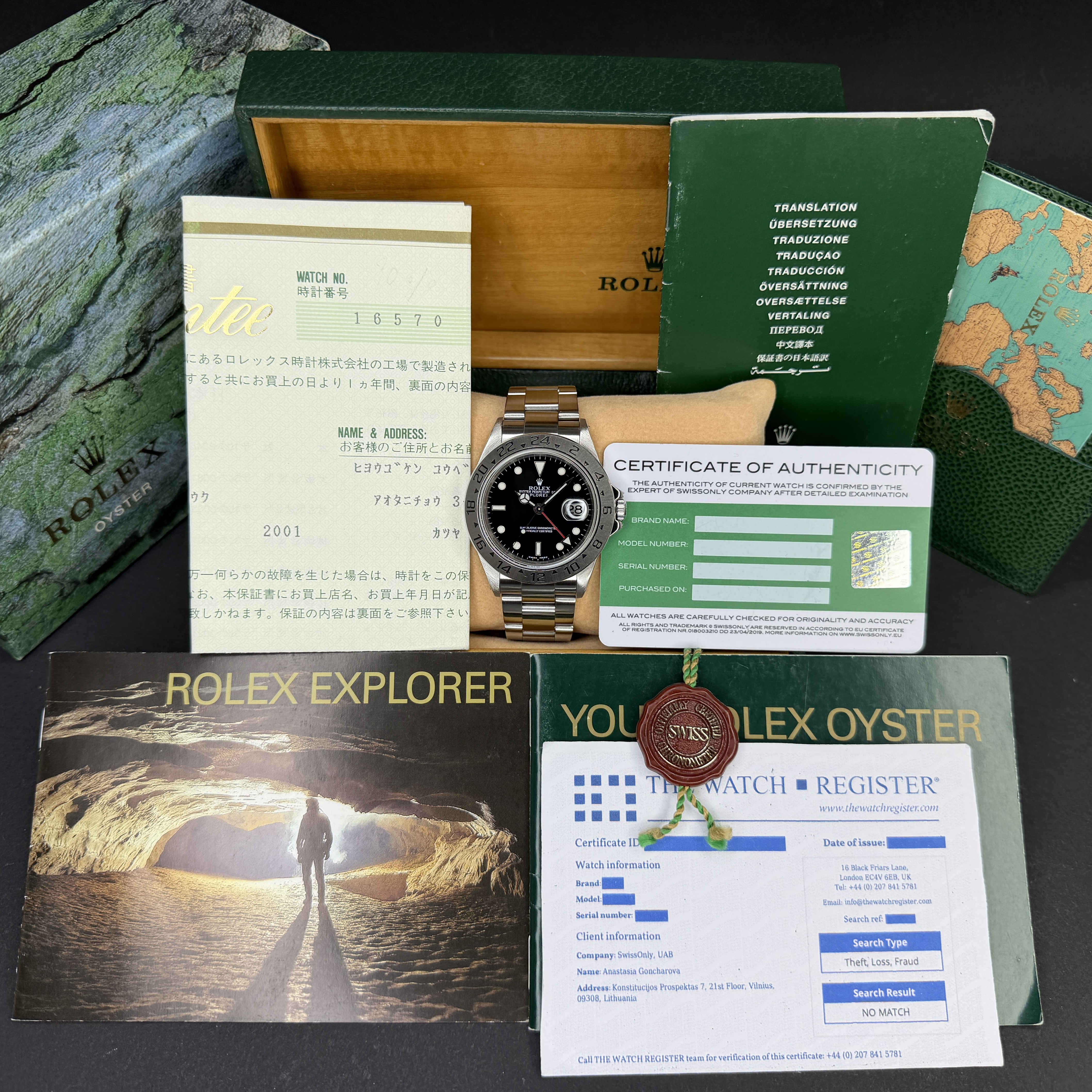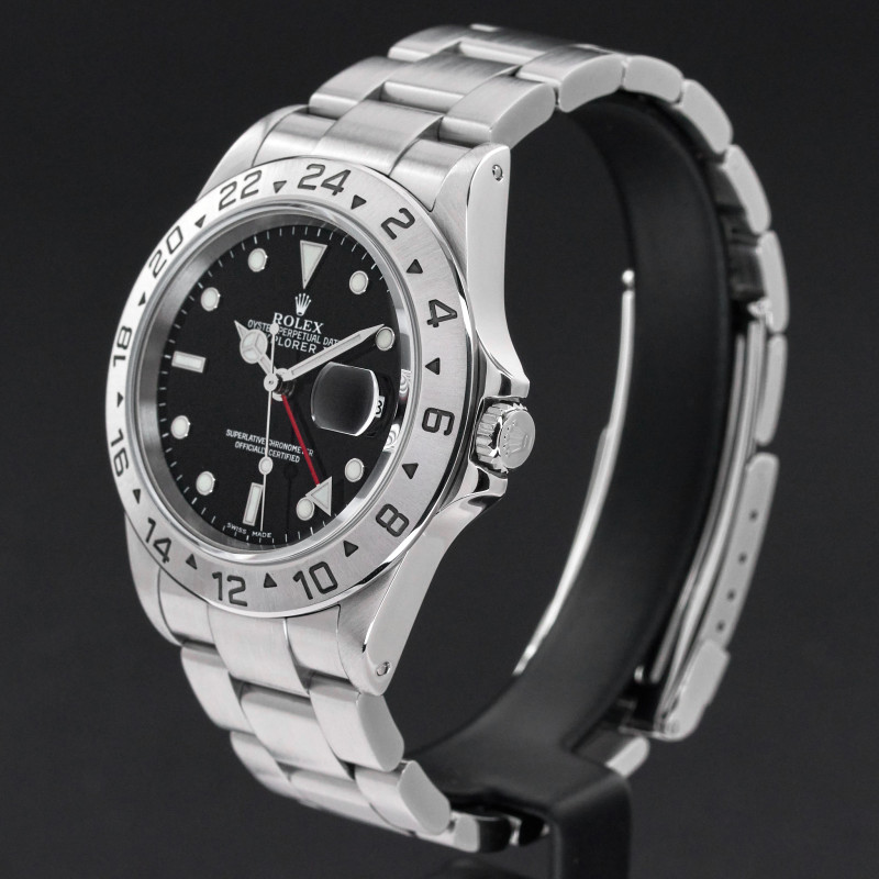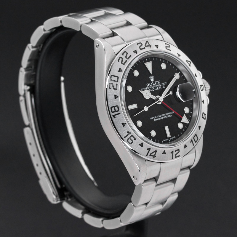 This Rolex Explorer II 16570 features a Black dial and is crafted from stainless steel, with a production year of 2000.