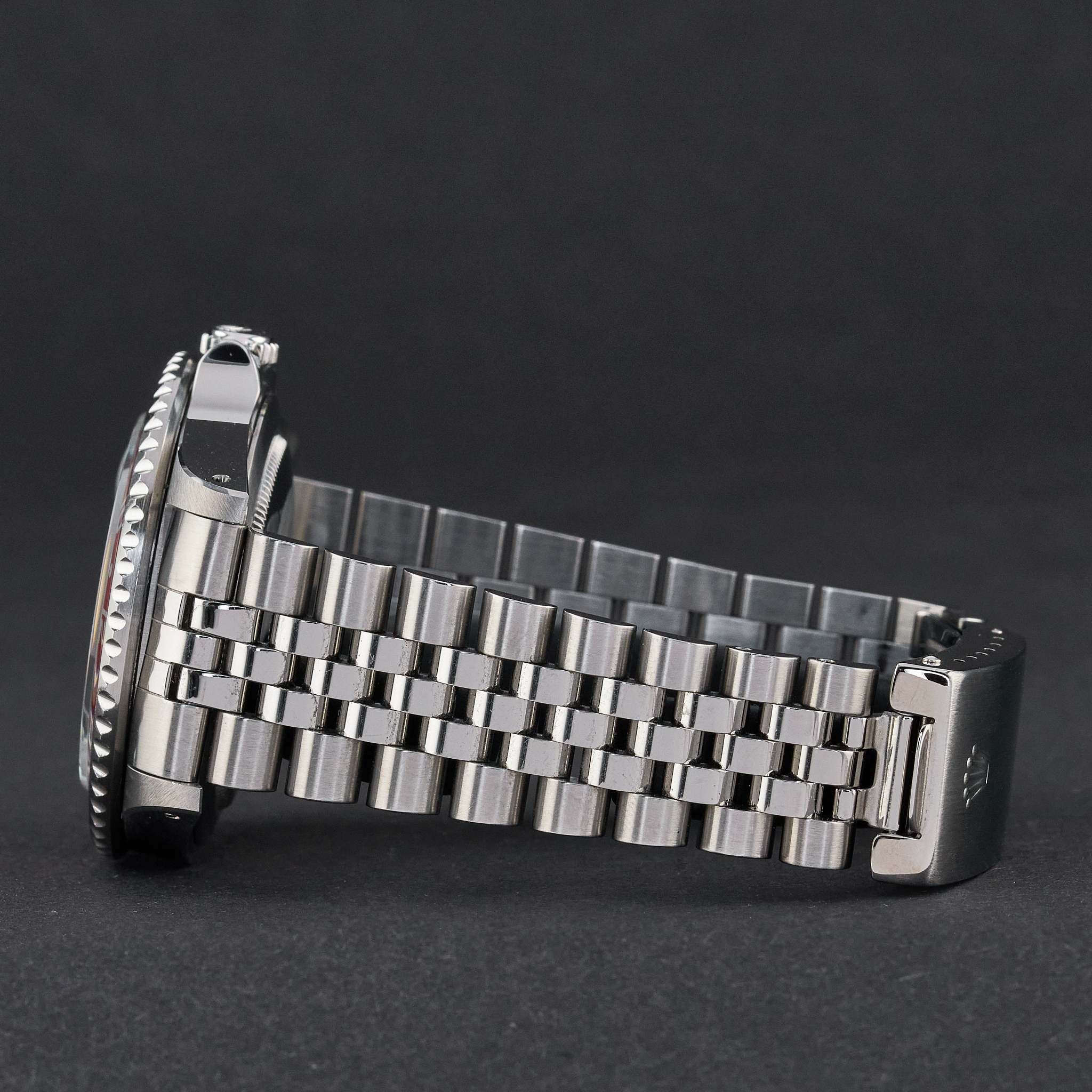 The Rolex 16760, also known as the "Fat Lady," is a highly regarded vintage GMT-Master II model that holds a special place in the hearts of watch collectors. Introduced in the mid-1980s, this model earned its nickname due to its thicker case, which housed the upgraded 3085 movement—allowing for independent adjustment of the hour hand, a groundbreaking feature at the time. One of the most sought-after variations of this timepiece features a "Tropical" black spider dial without "Date" word after "Perpetual". Over the years, the original black lacquer on these dials has undergone a fascinating metamorphosis due to exposure to UV light, developing unique and mesmerizing crackling patterns. This natural transformation, often referred to as "spidering," adds to the dial's charm and rarity, making each watch uniquely beautiful. Complementing this rare and visually intriguing dial is the iconic "Coke" bezel, characterized by its red and black color scheme. The bezel's vibrant contrast not only adds to the watch's aesthetic appeal but also serves as a functional feature for tracking a second time zone. The 16760's combination of historical significance, robust design, and the captivating aesthetic of the tropical spider dial makes it a highly coveted piece among vintage Rolex enthusiasts.