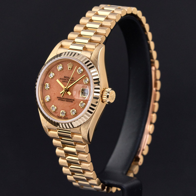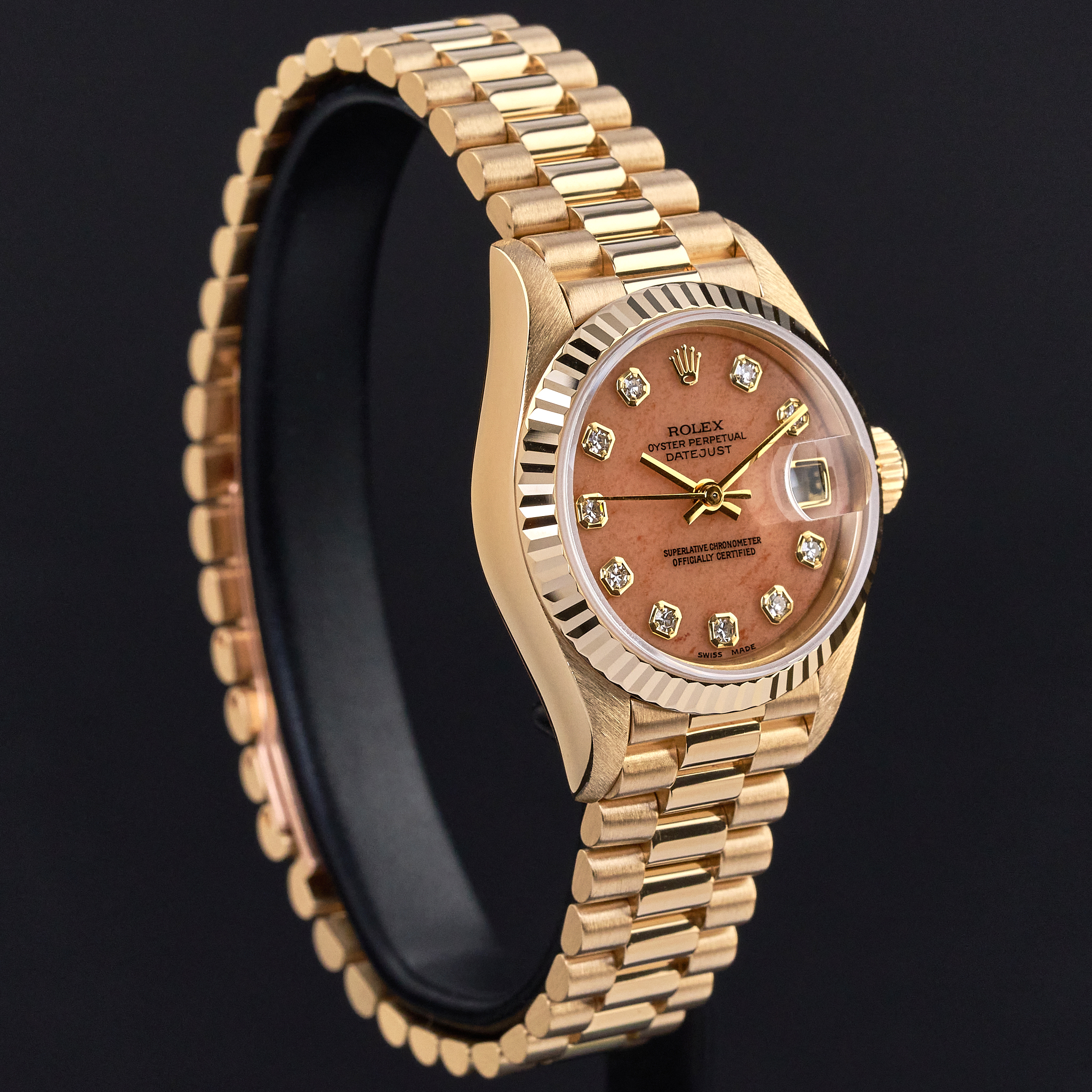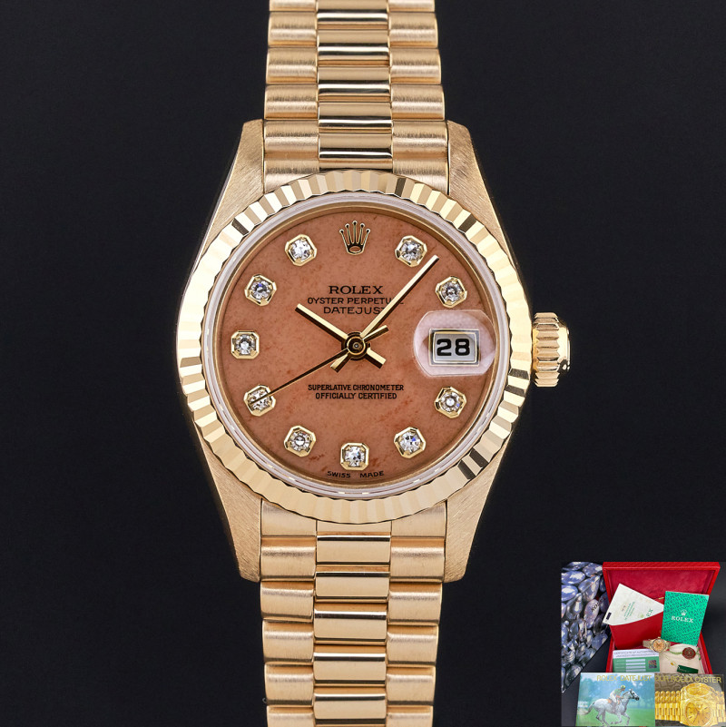 This Rolex Datejust 26mm Ref. 79178 features an exceptionally rare Coral Opal dial, making it a true standout in the world of luxury timepieces. The opalescent hues shift beautifully under different lighting, creating a mesmerizing effect. Designed for a woman with refined taste, this watch exudes elegance and sophistication rather than mere collectibility. Finding a Rolex with such a unique natural stone dial is incredibly uncommon. A perfect choice for those who appreciate rarity and timeless beauty.
