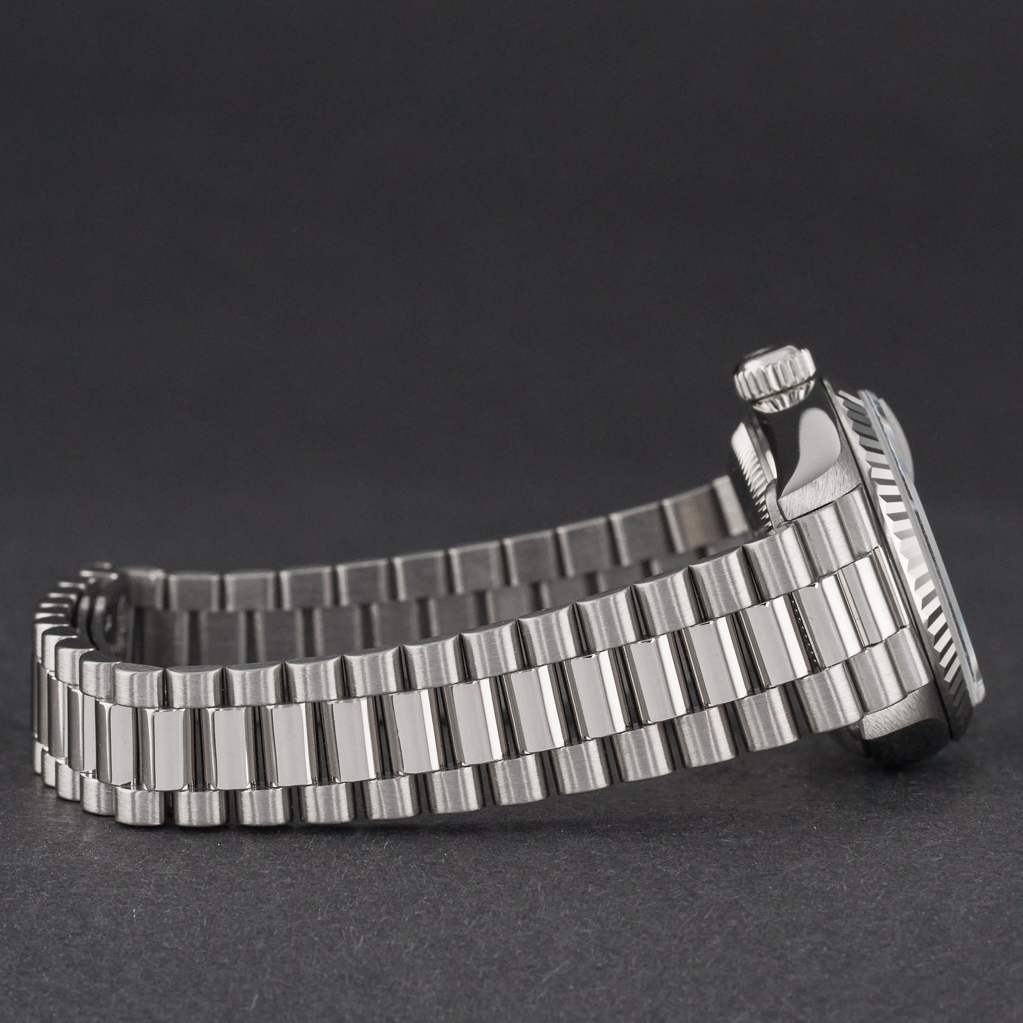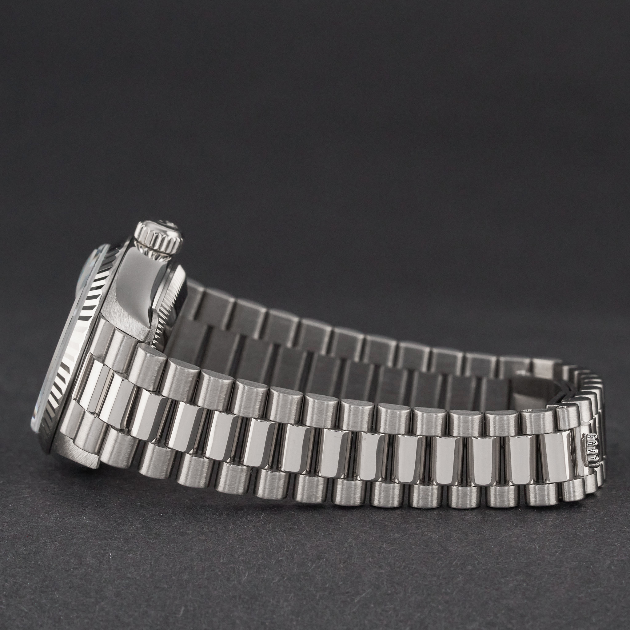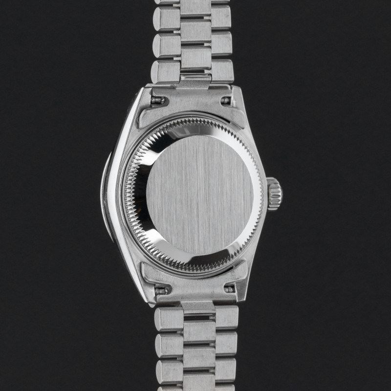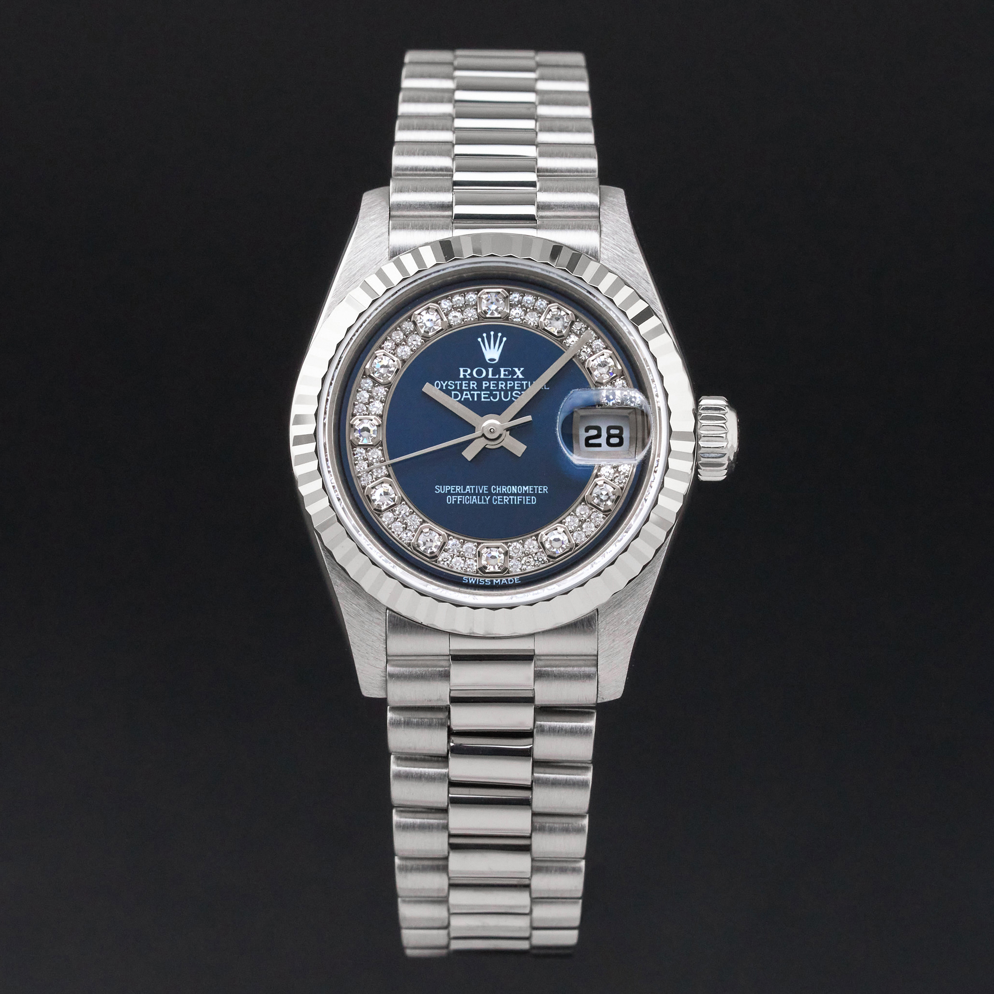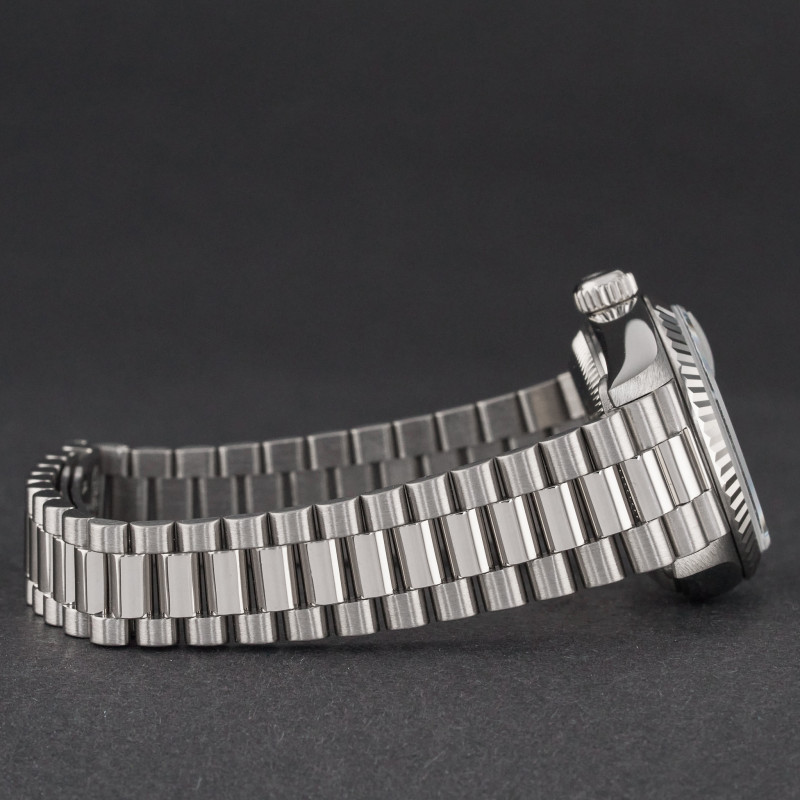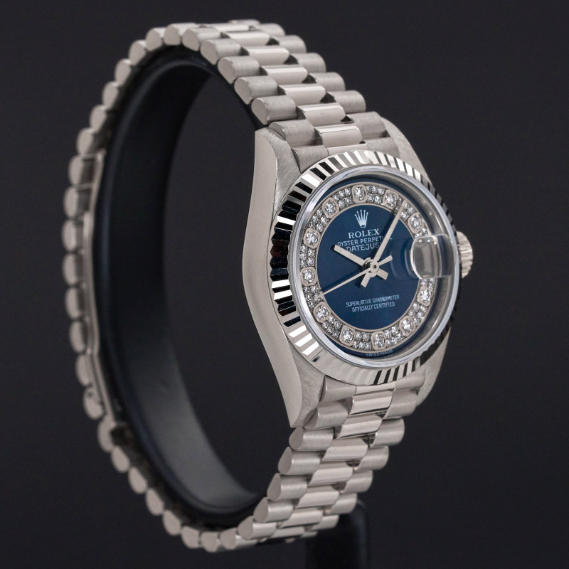 This Rolex Lady-Datejust 69179 features a Blue myriad big diamond dial and is crafted from 18K white gold, with a production year of 1995.
