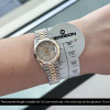 It's silver dial, adorned with delicate diamond hour markers, radiates subtle brilliance and charm, while the overall composition reflects the signature refinement of the Lady-Datejust line.