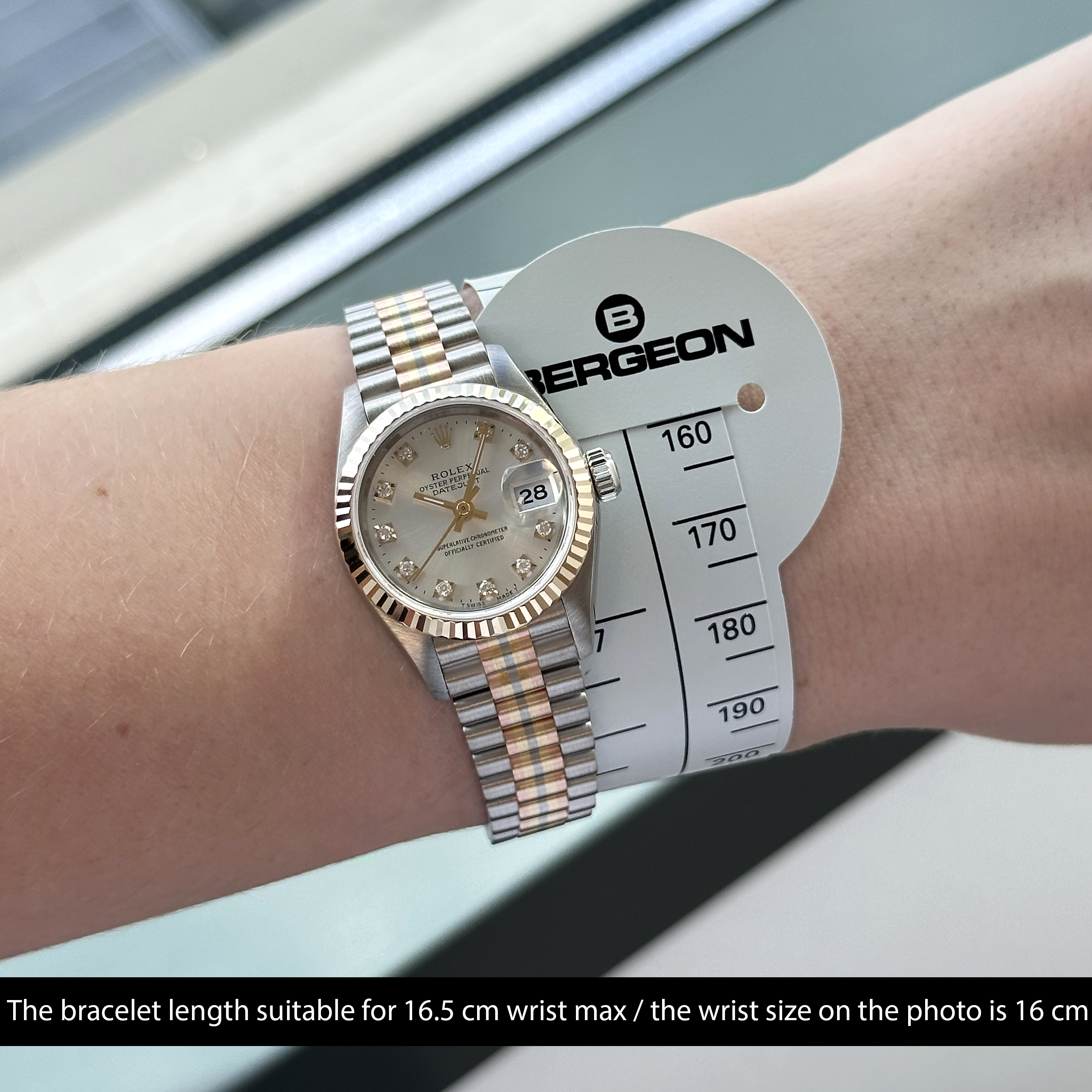 This particular Rolex Lady-Datejust Tridor introduced in 1990, stands out for its distinctive use of three shades of gold – an exclusive hallmark of the Tridor design. This rare combination enhances the watch’s timeless sophistication, giving it a character that is both elegant and unmistakably distinctive.