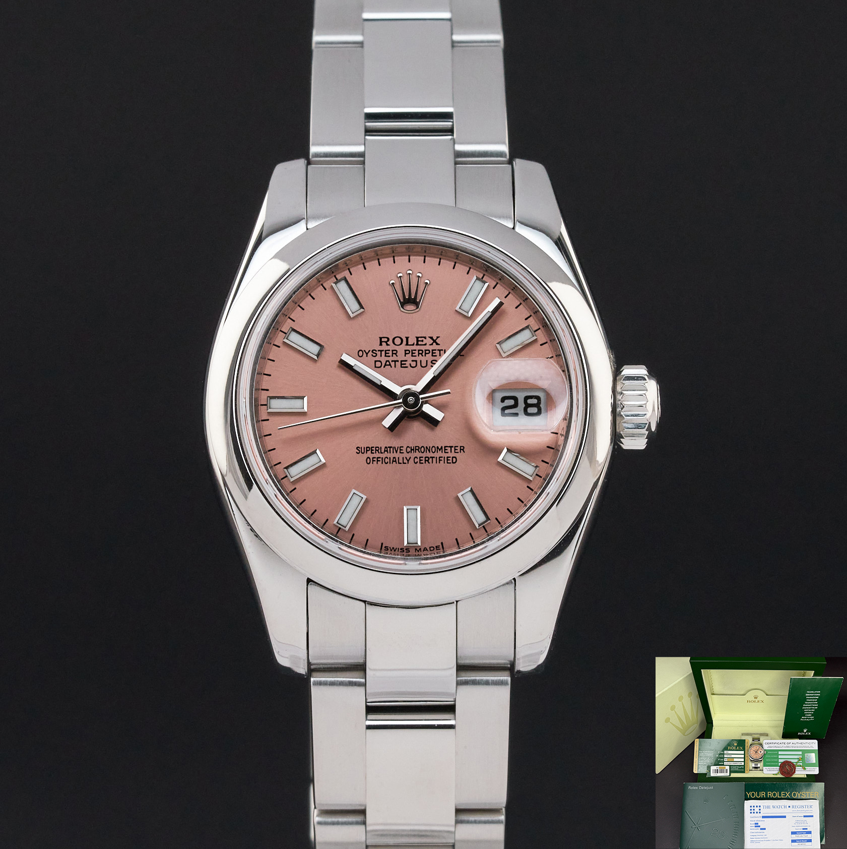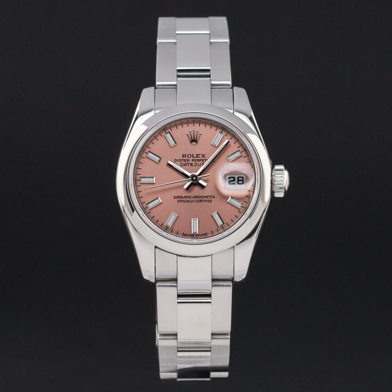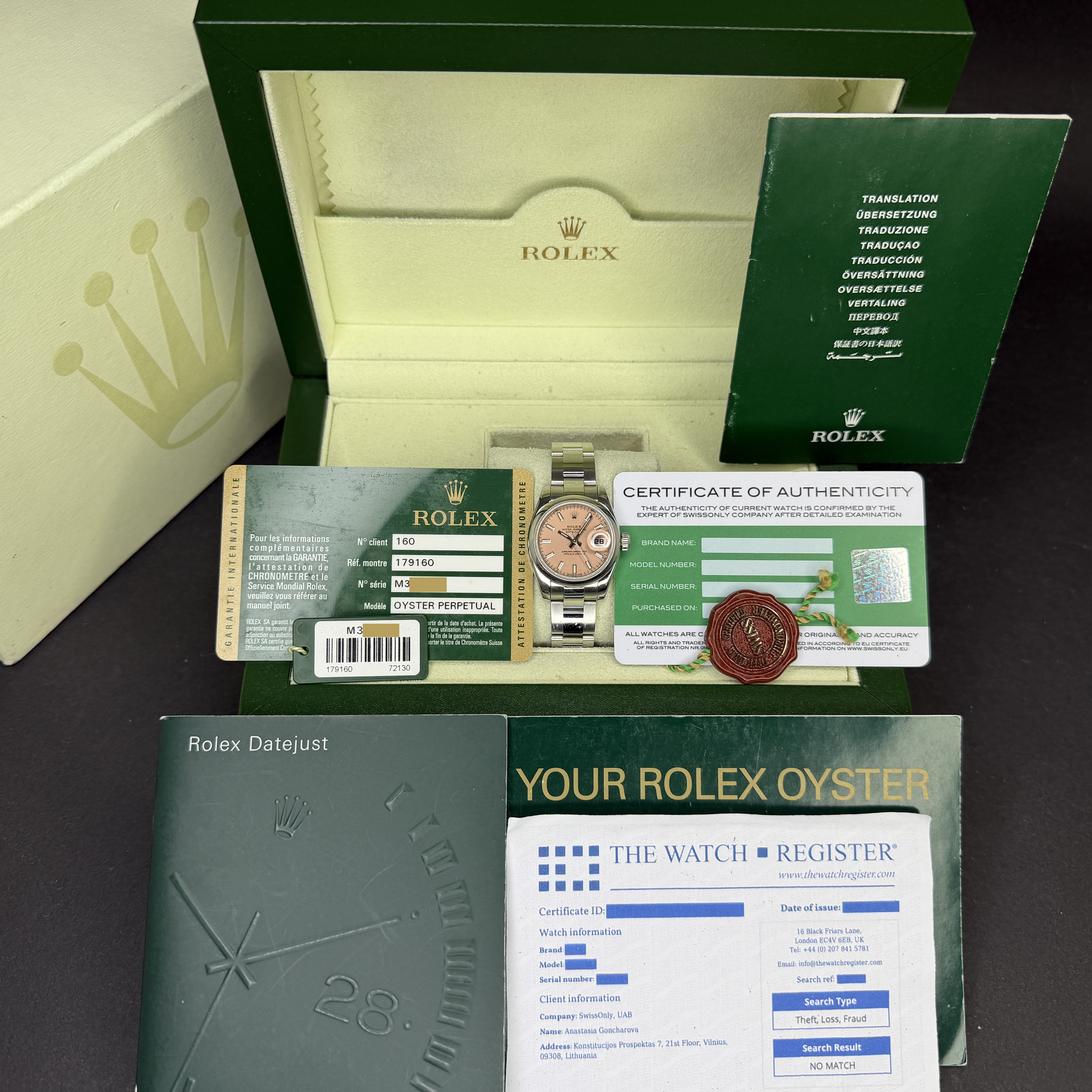 This Rolex Lady-Datejust 179160 features a Pink dial and is crafted from stainless steel, with a production year of 2008.