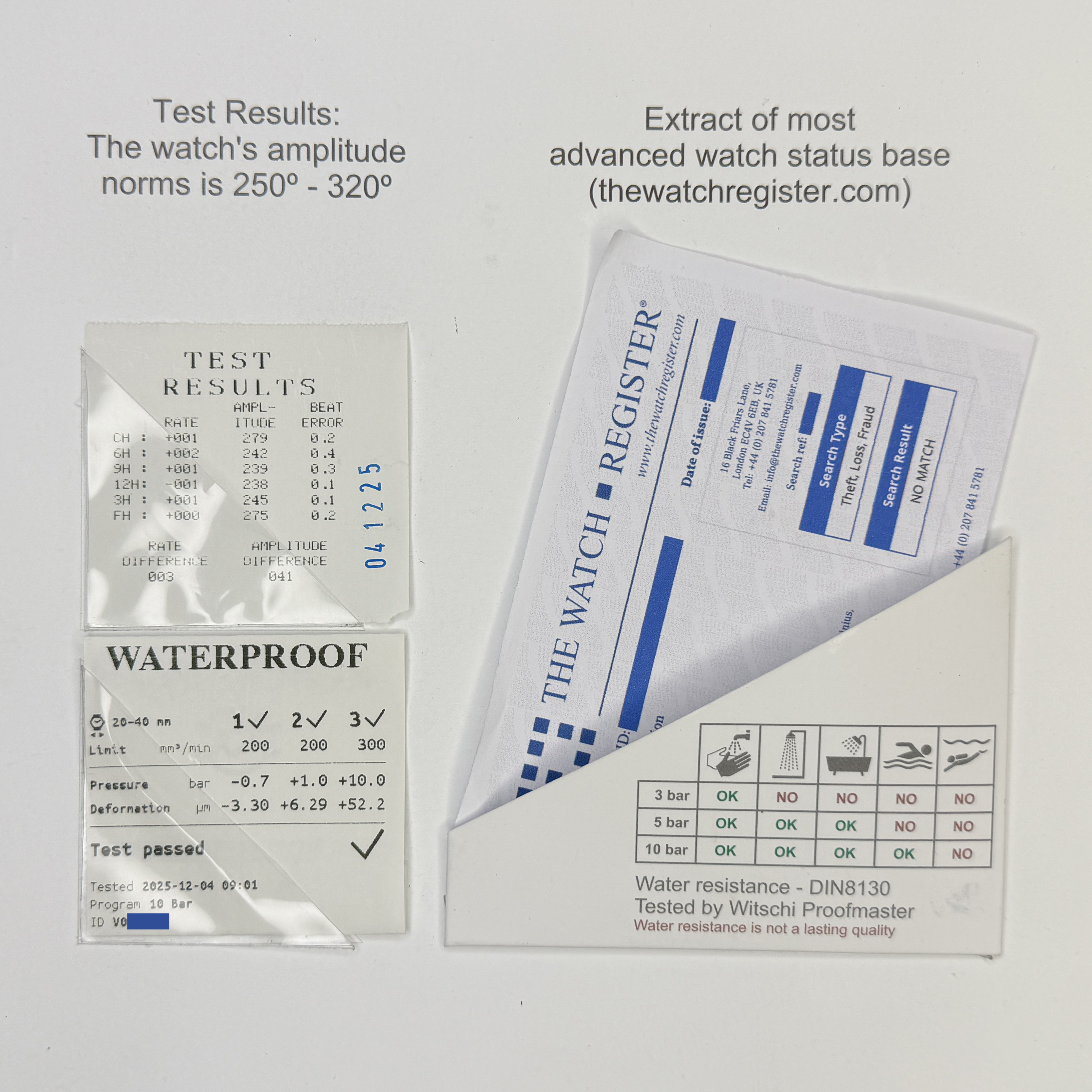 • Watches are serviced in our own workshop by our 12 experienced watchmakers.
