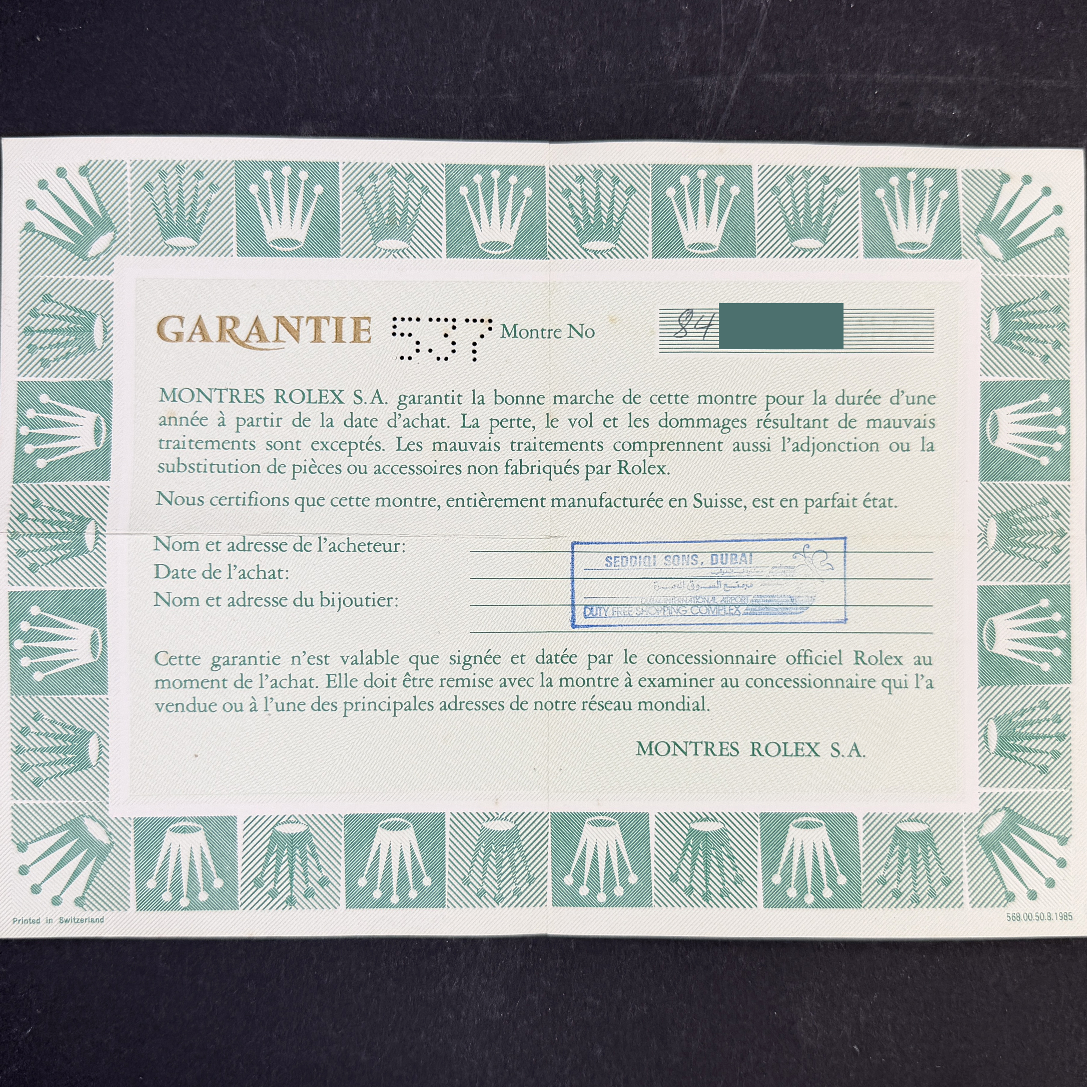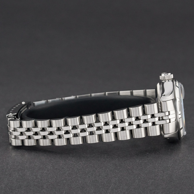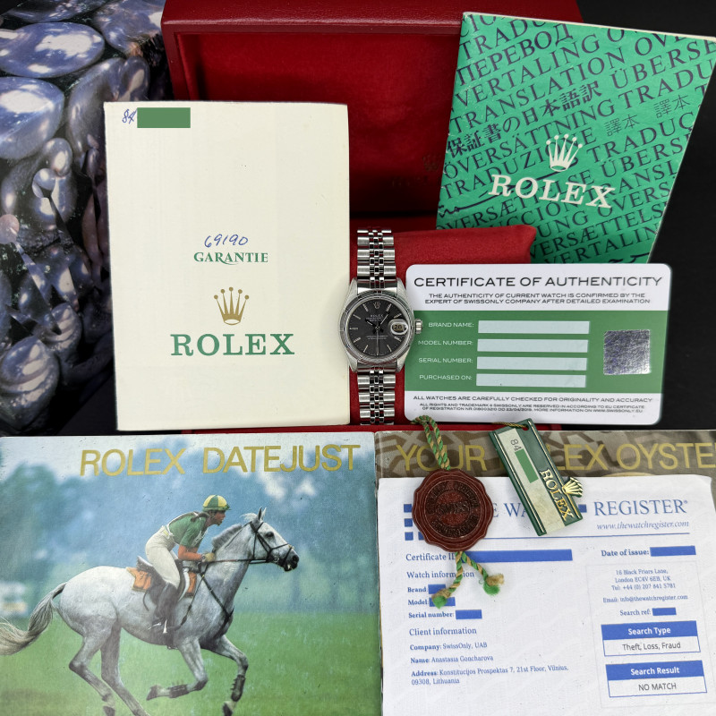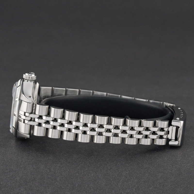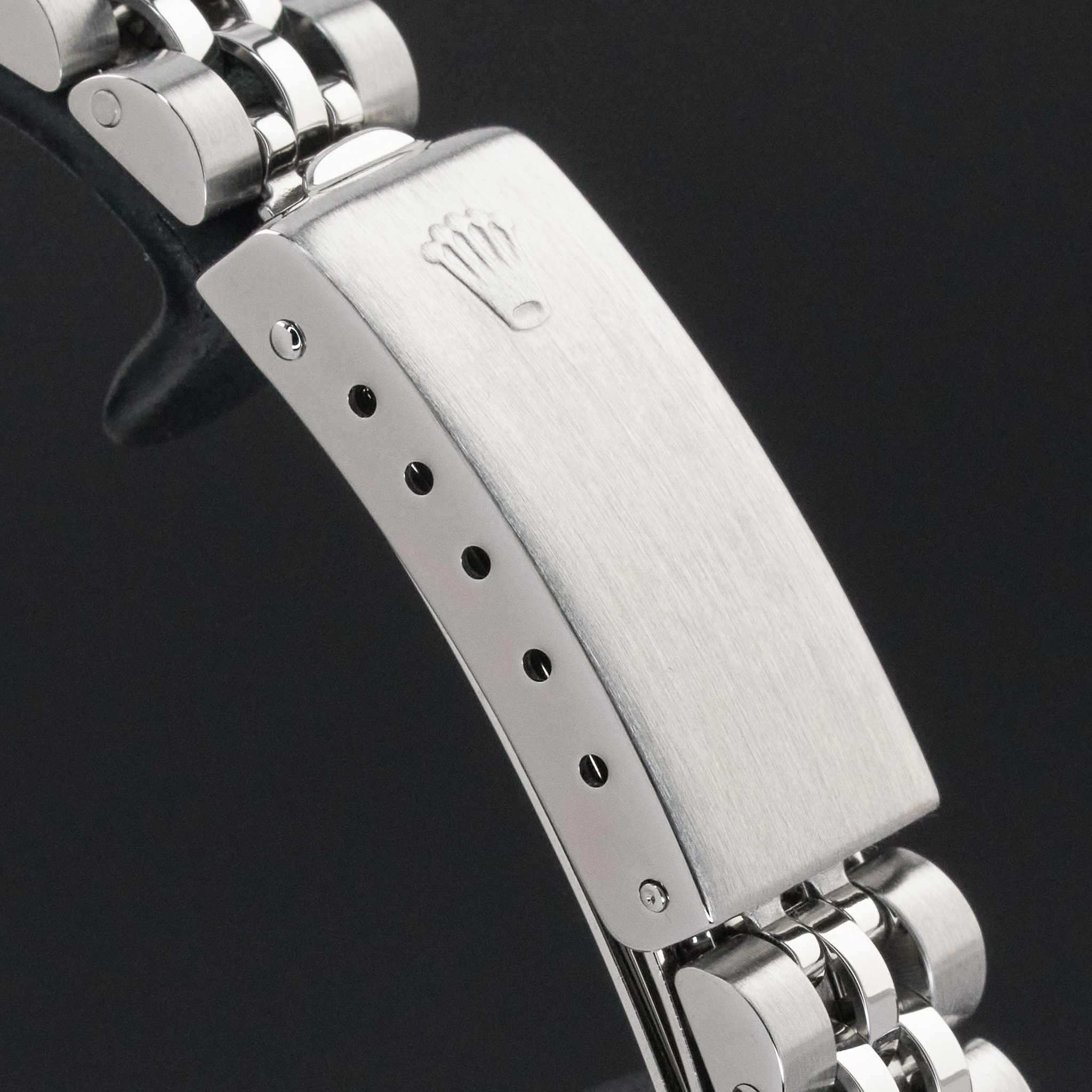 This Rolex Oyster Perpetual Lady Date 69190 features a Grey dial and is crafted from stainless steel, with a production year of 1984.