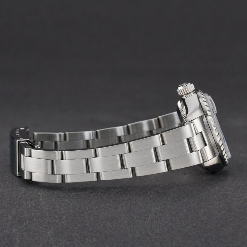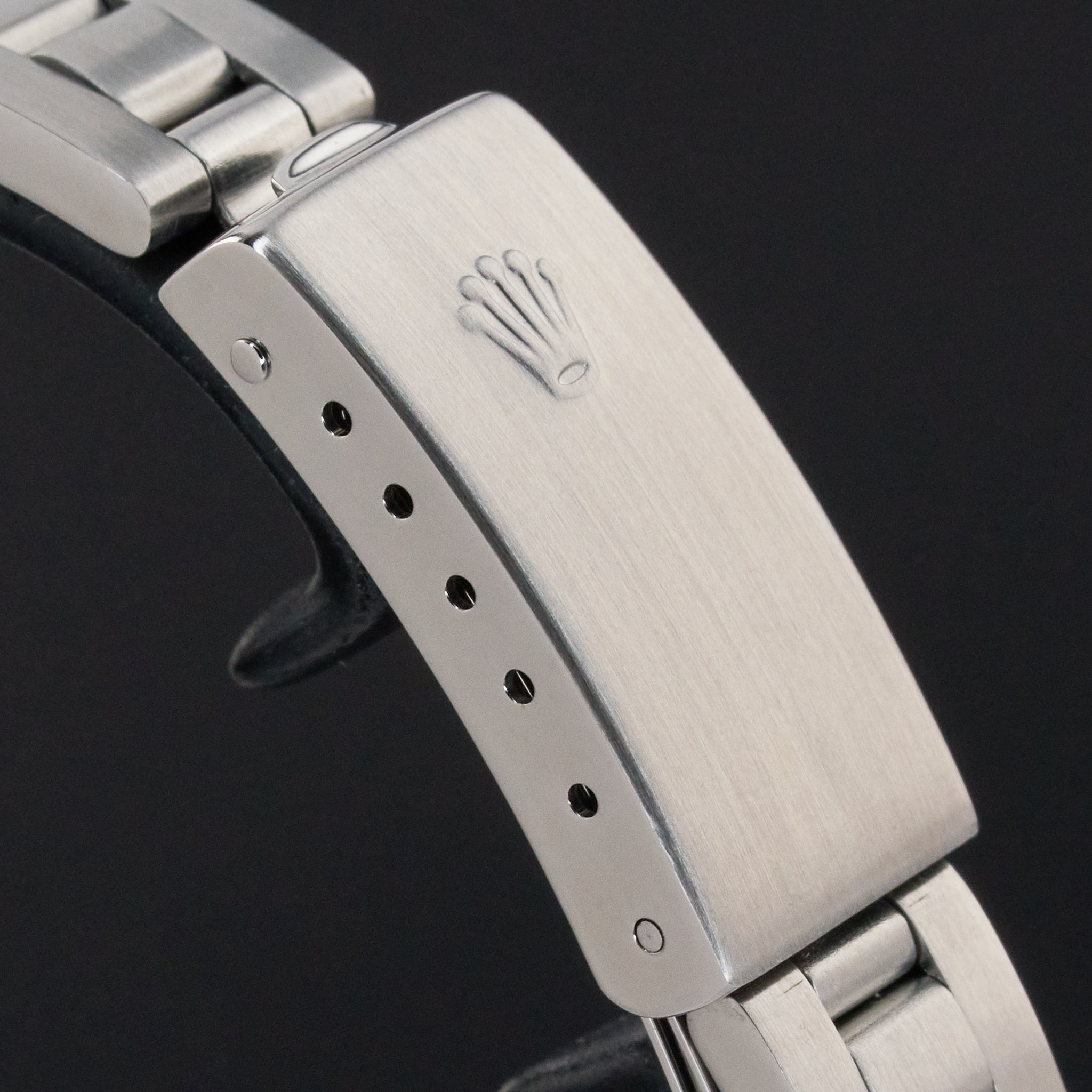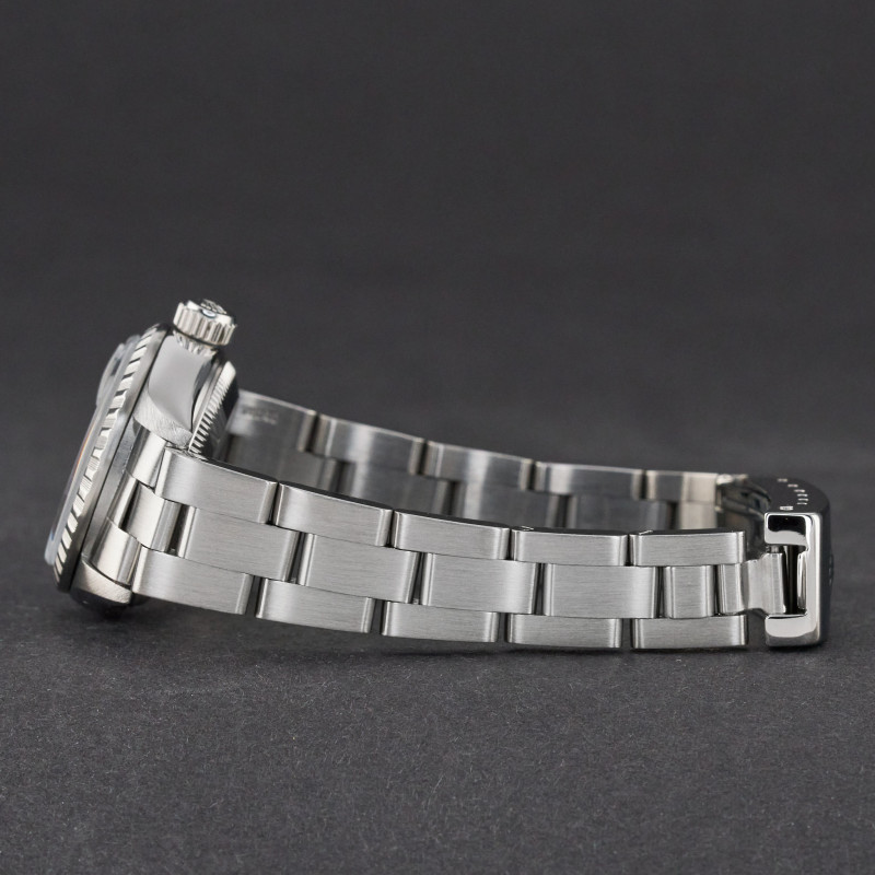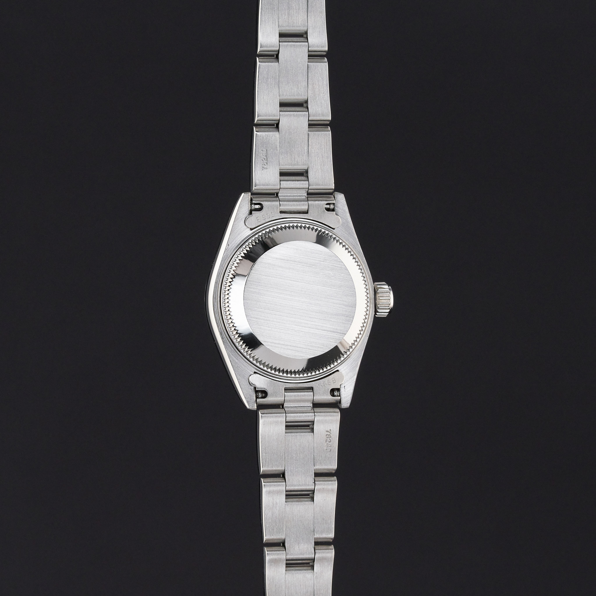 This Rolex Oyster Perpetual Date Lady 69240 features an Ivory jubilee Arabic dial and is crafted from stainless steel, with a production year of 1996.