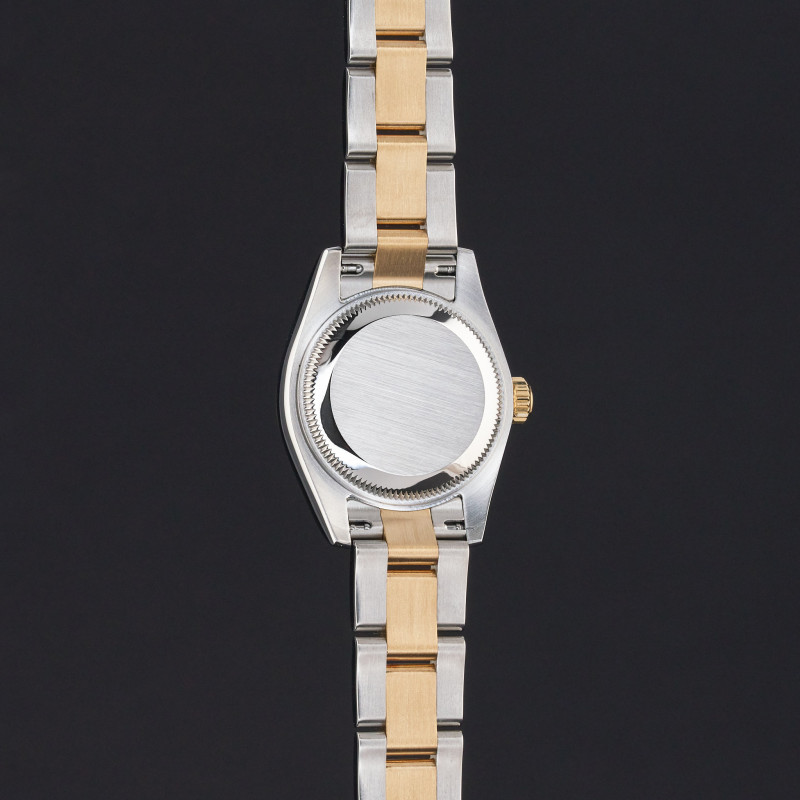 This Rolex Lady-Datejust 179173 features a Blue diamond dial and is crafted from 18K yellow gold and stainless steel, with a production year of 2013.