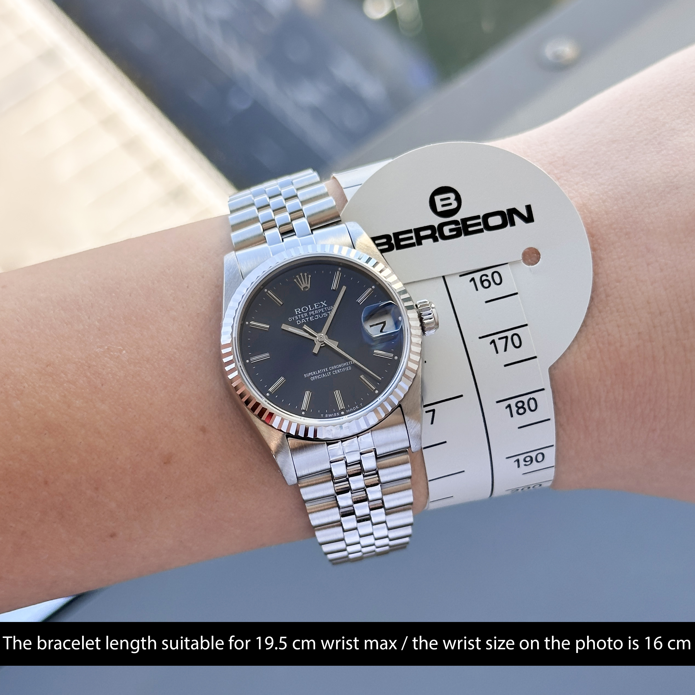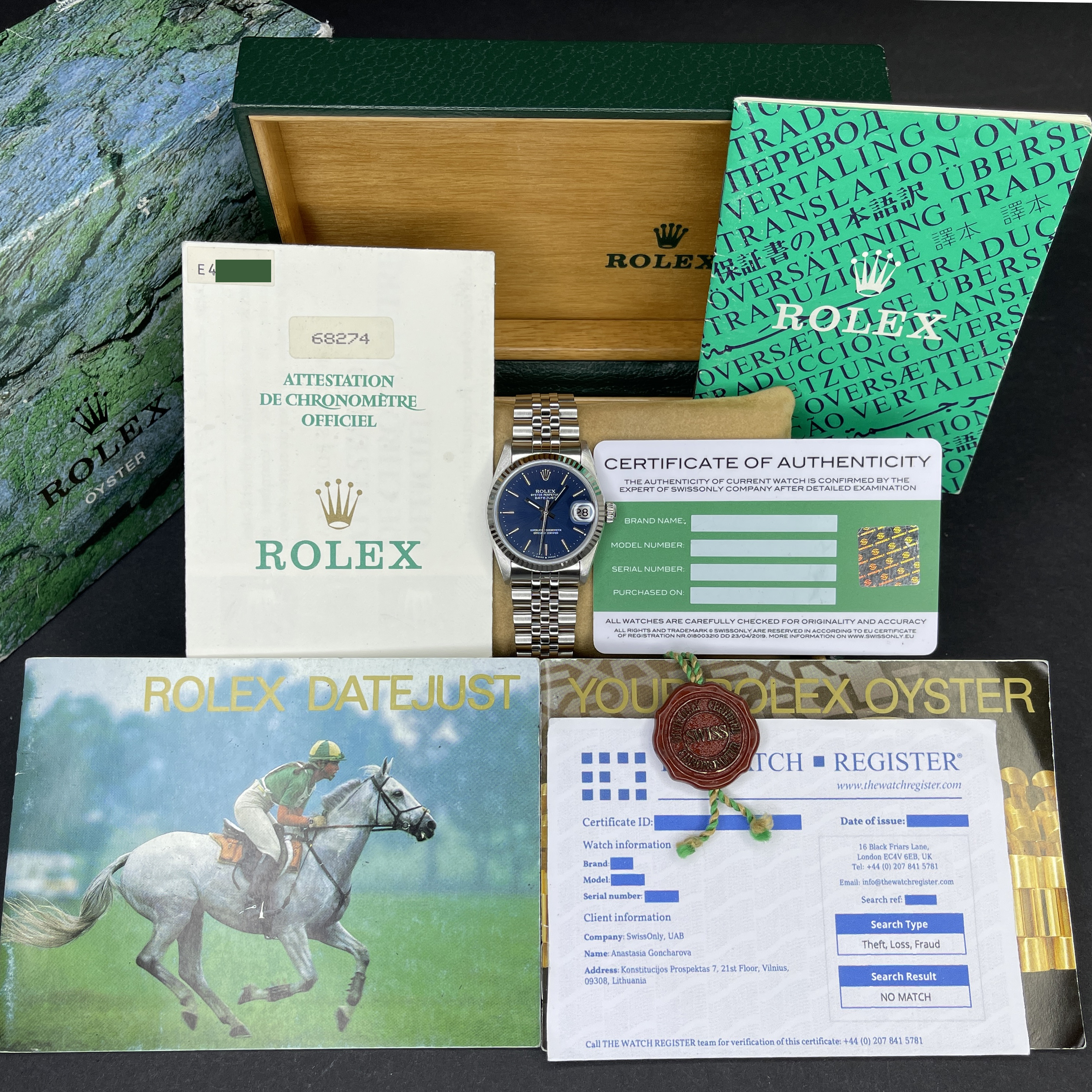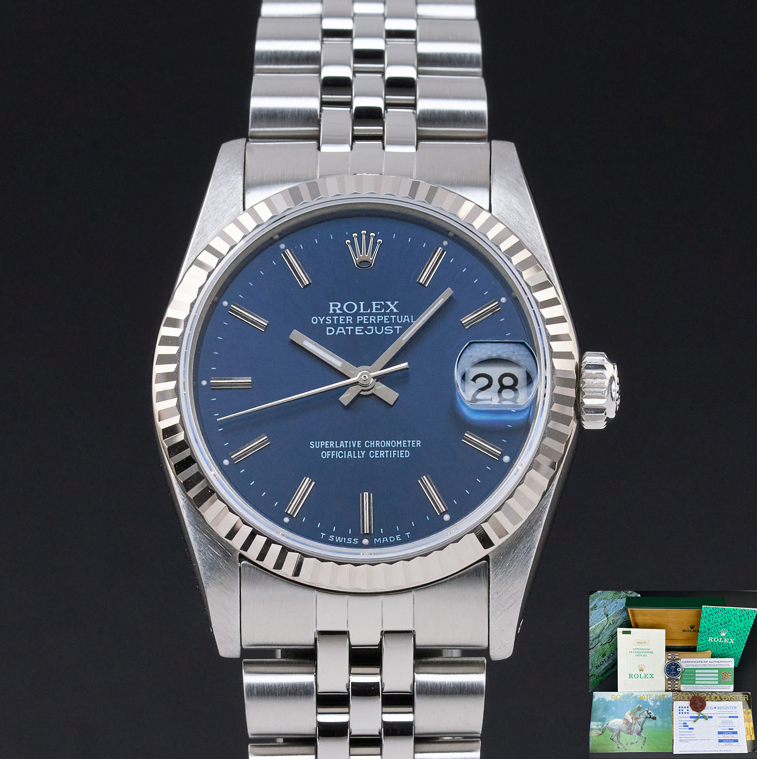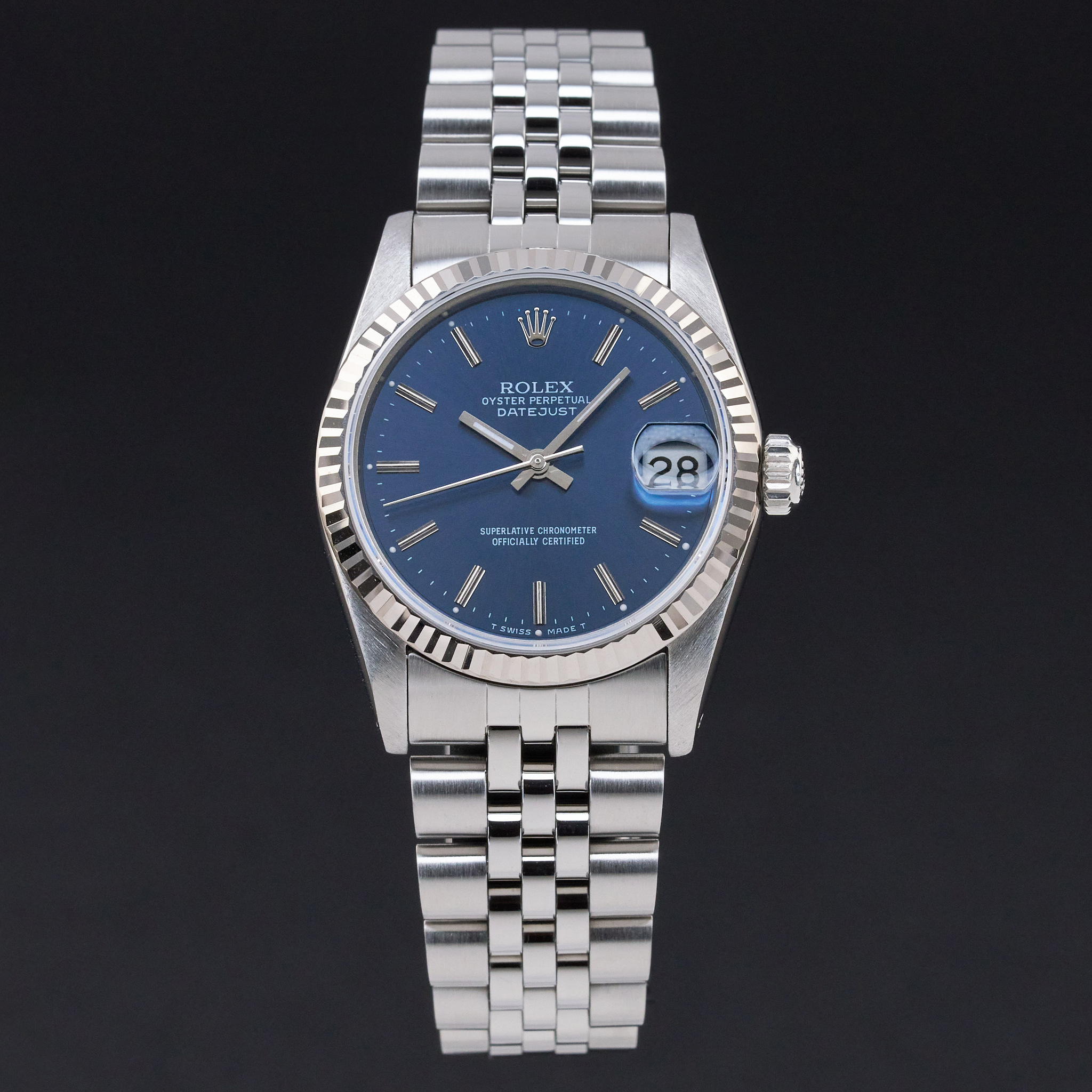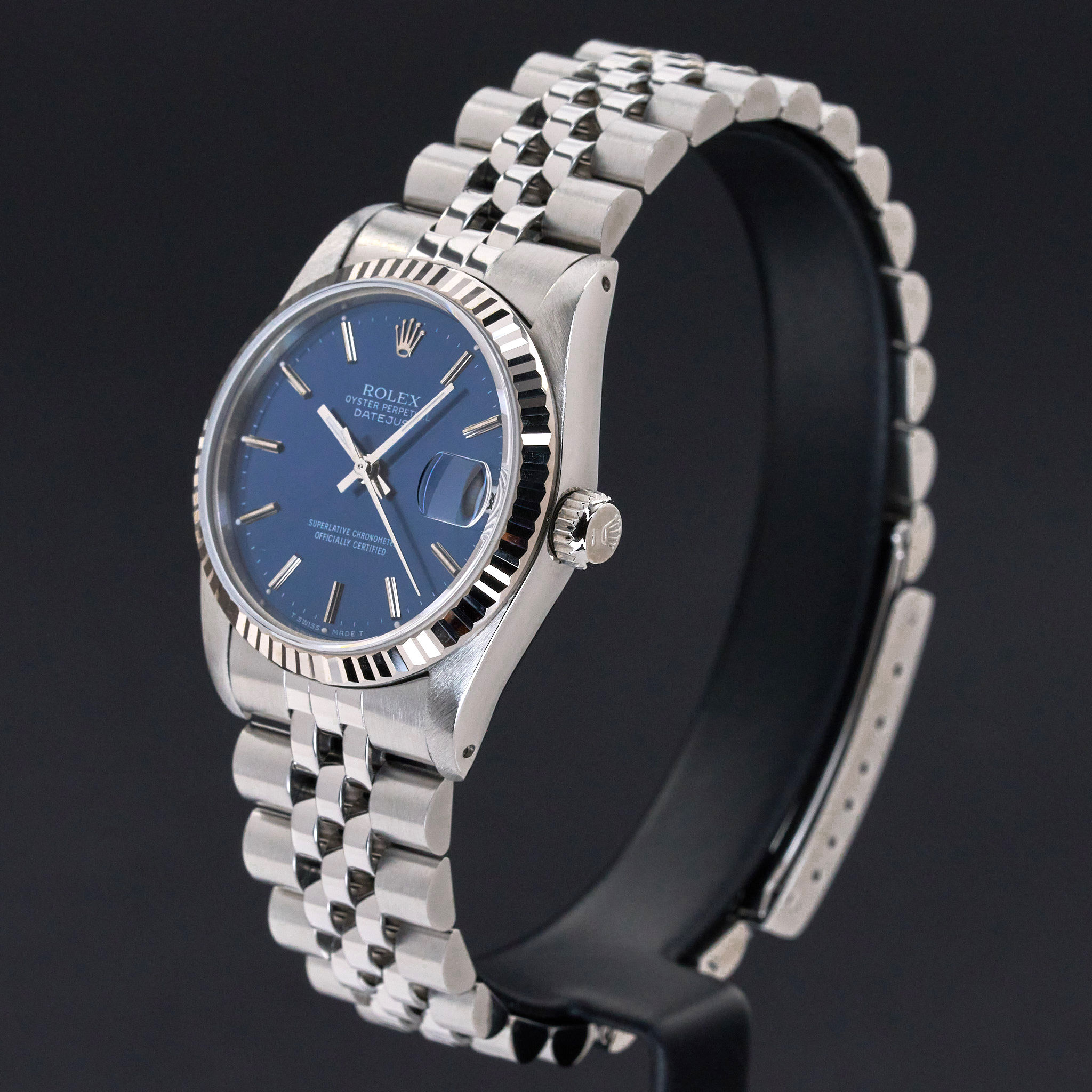 This Rolex Datejust 68274 features a Blue dial and is crafted from from stainless steel, with a production year of 1990.