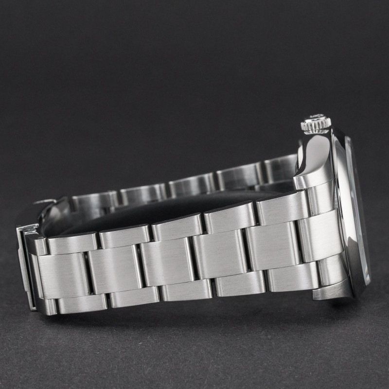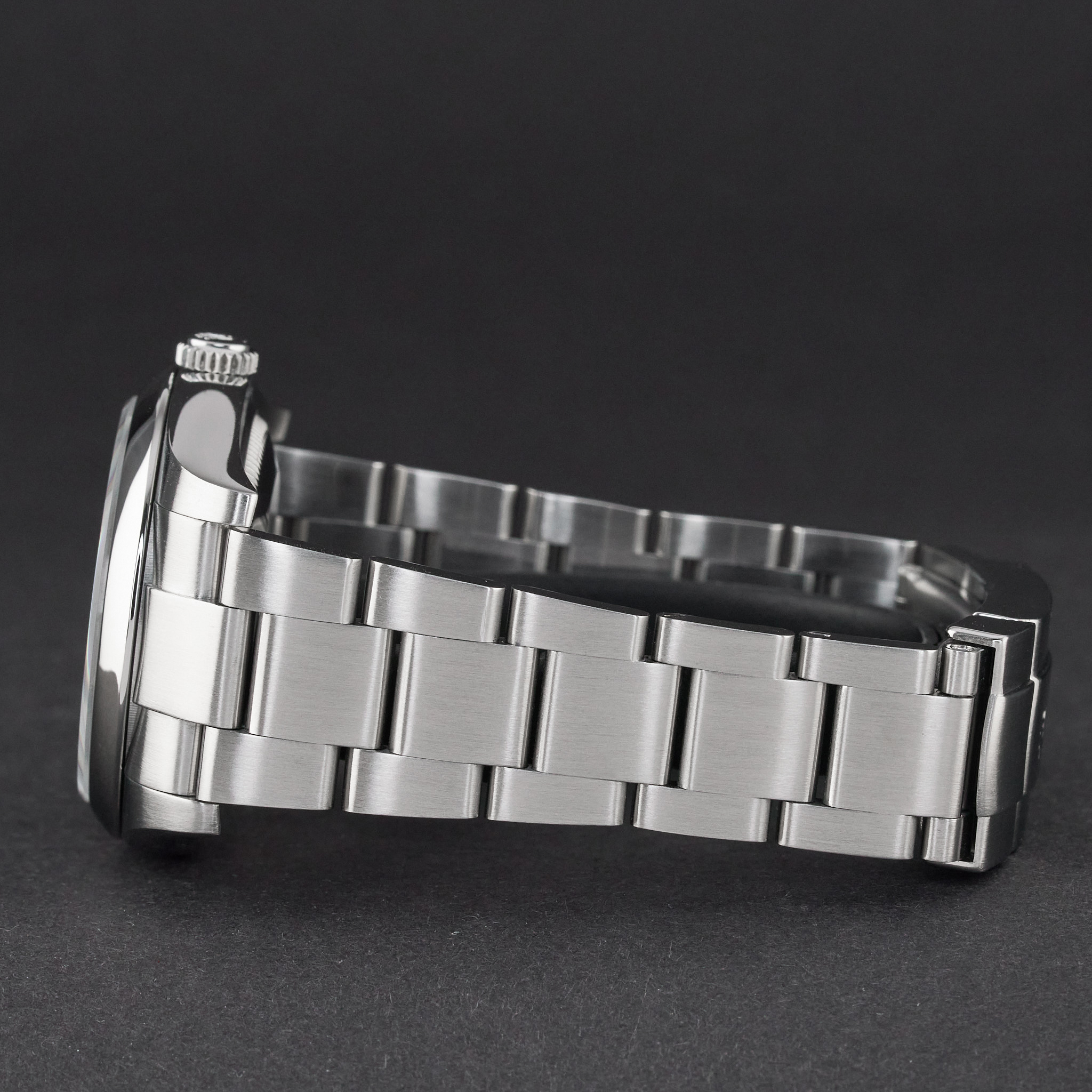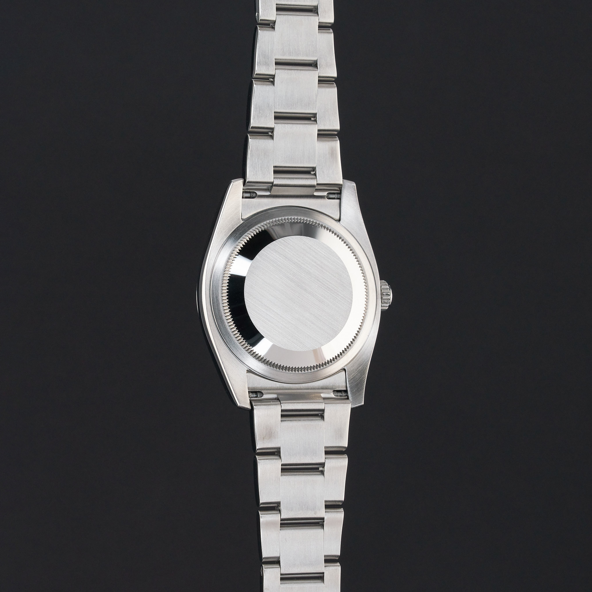 This Rolex Oyster Perpetual 116000 features a Grey dial and is crafted from stainless steel, with a production year of 2015.