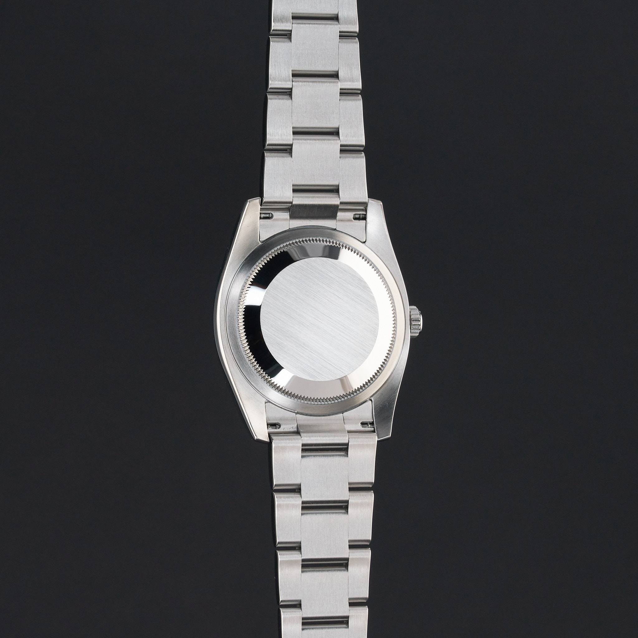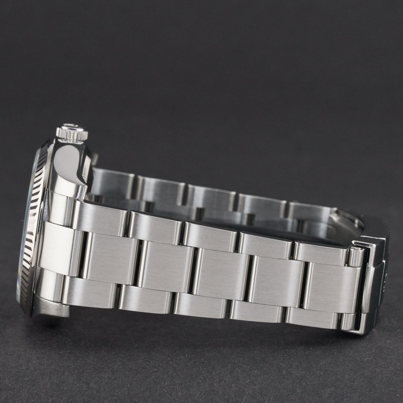 This Rolex Oyster Perpetual 116034 features a Black Arabic dial and is crafted from stainless steel, with a production year of 2009.