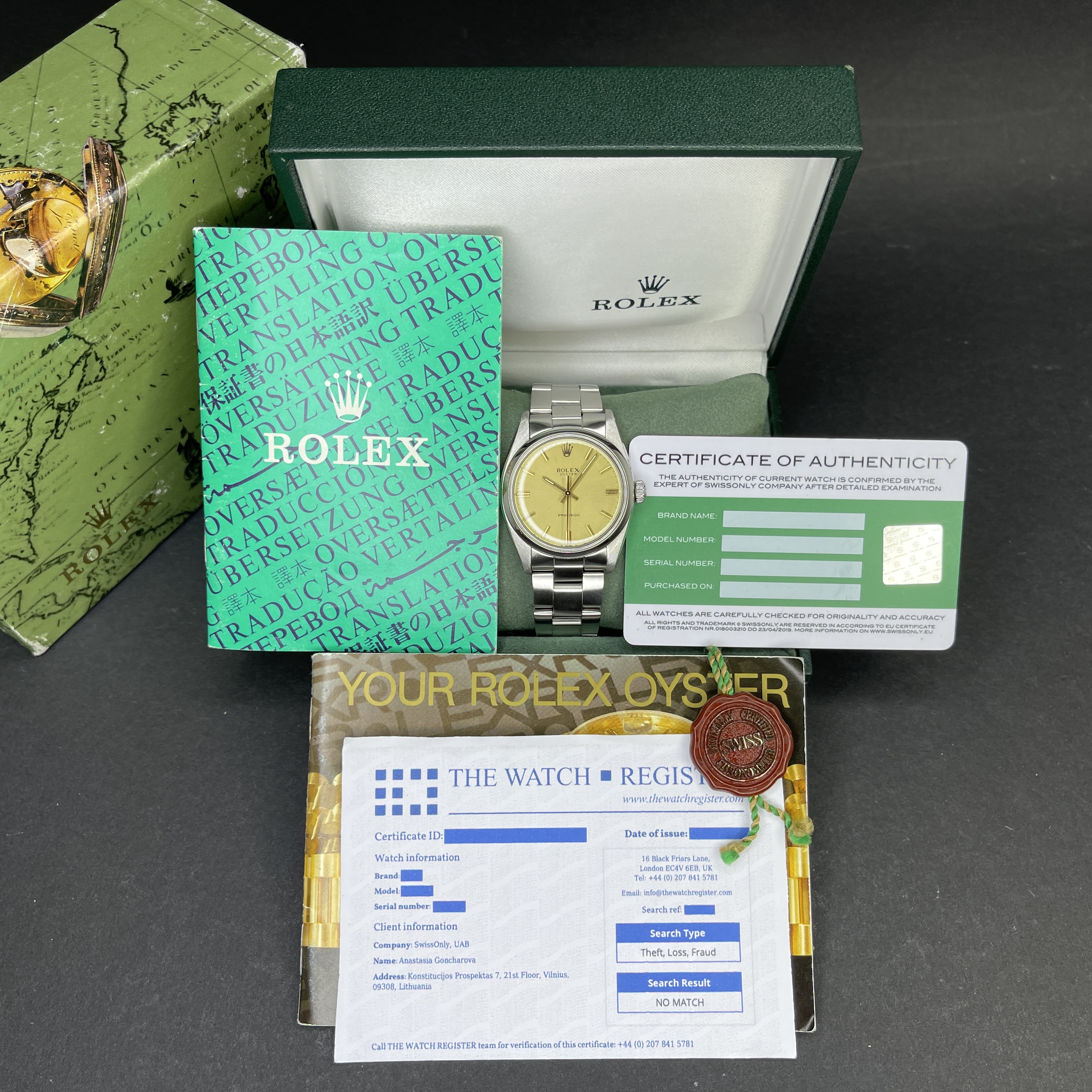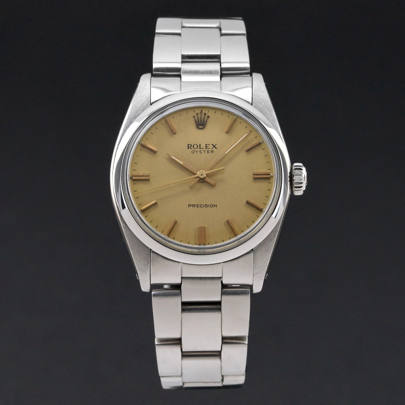 This Rolex Oyster Precision 6426 features a Champagne dial and is crafted from stainless steel, with a production year of 1976.