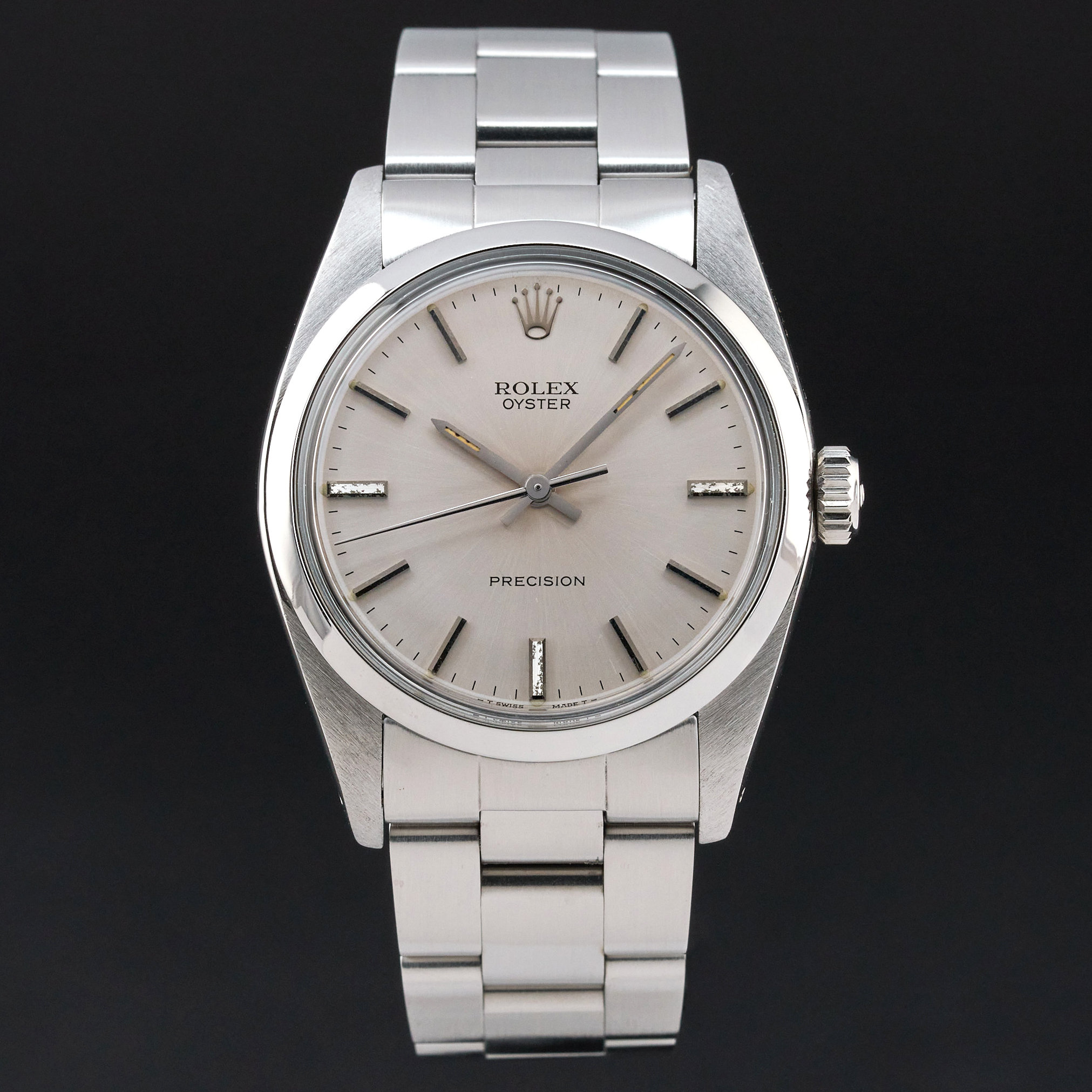 This Rolex Oyster Precision 6426 features a Silver dial and is crafted from stainless steel, with a production year of 1982.