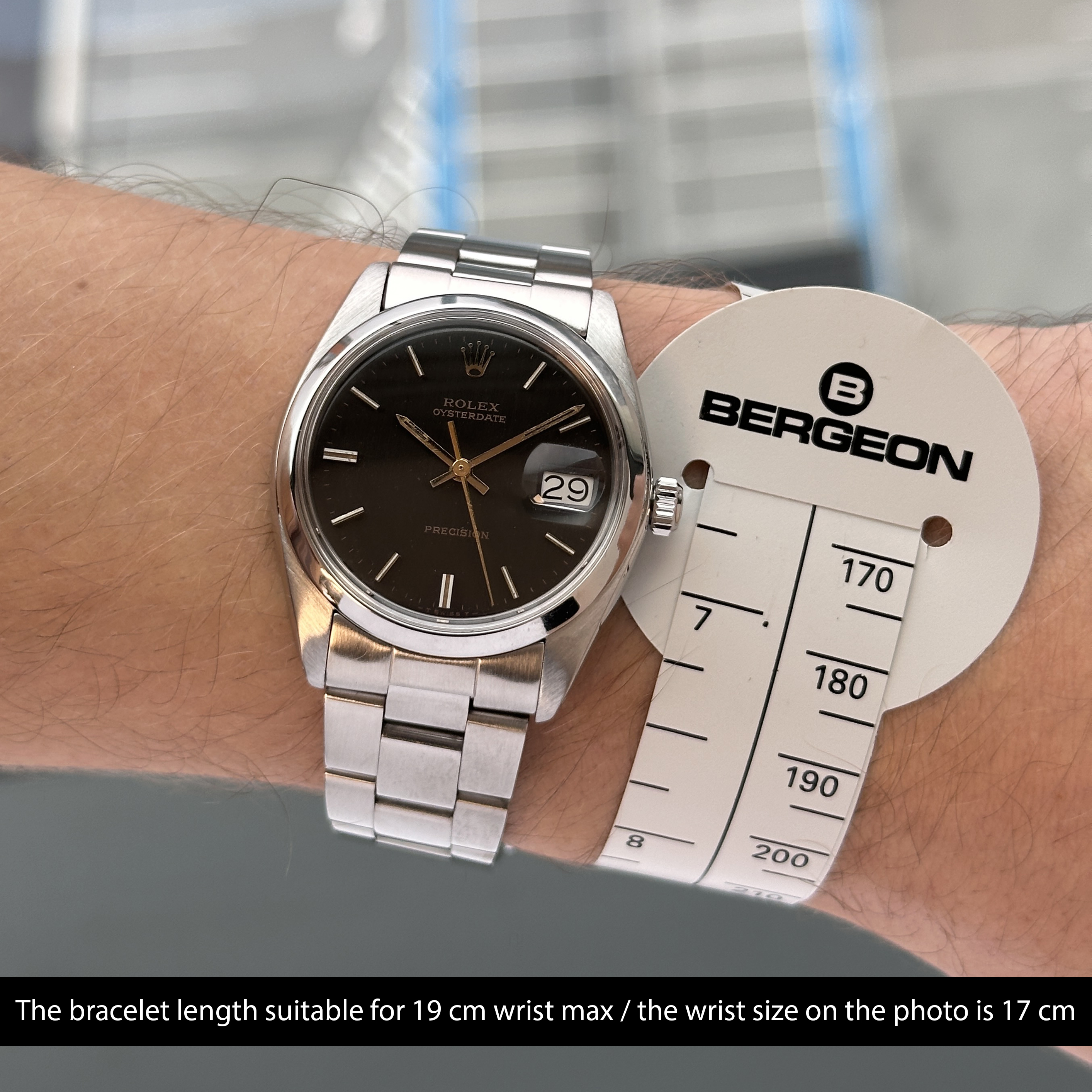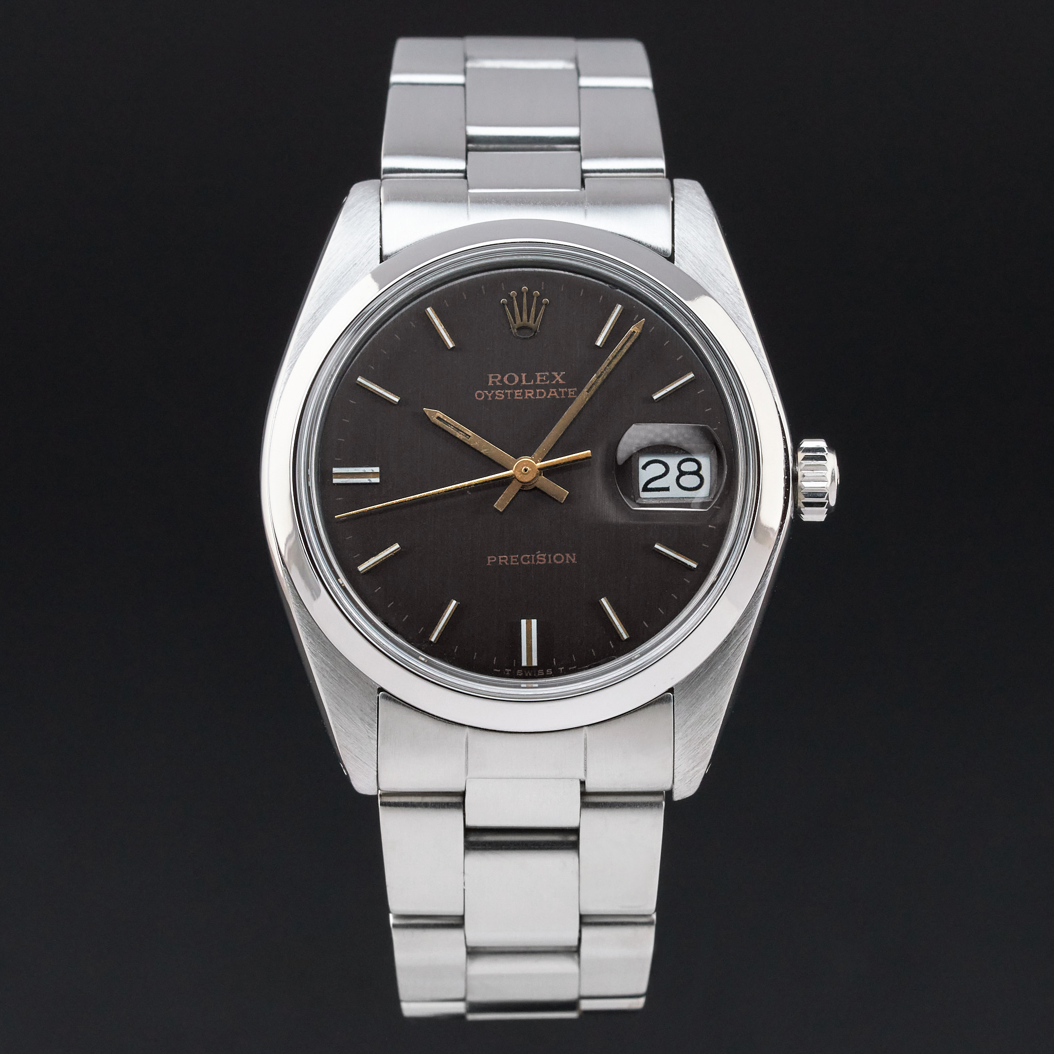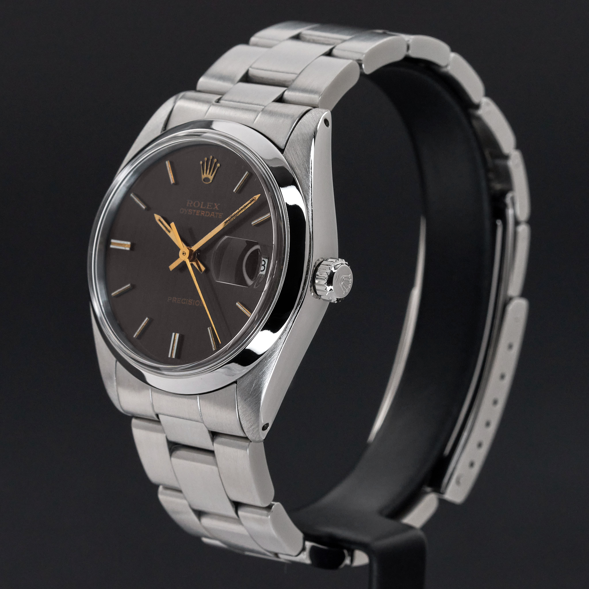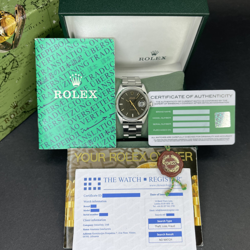 This Rolex Oysterdate Precision 6694 features a Grey dial and is crafted from stainless steel, with a production year of 1982.