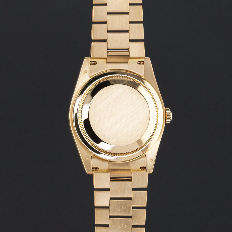 This Rolex Day-Date 118238 features a Black big diamond dial and is crafted from 18K yellow gold, with a production year of 2000.
