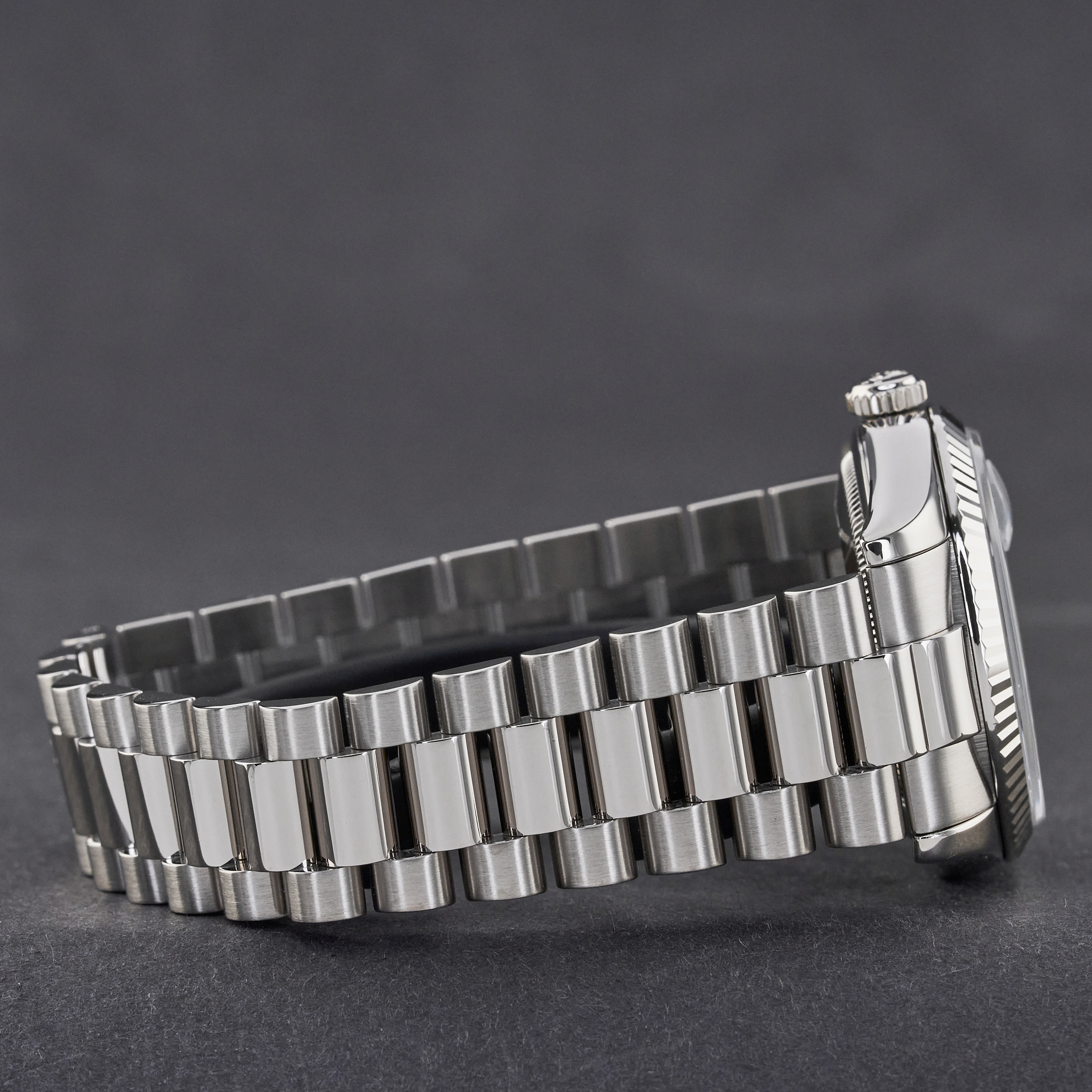 This Rolex Day-Date 118239 features a Blue vignette big diamond dial and is crafted from 18K white gold, with a production year of 2001.