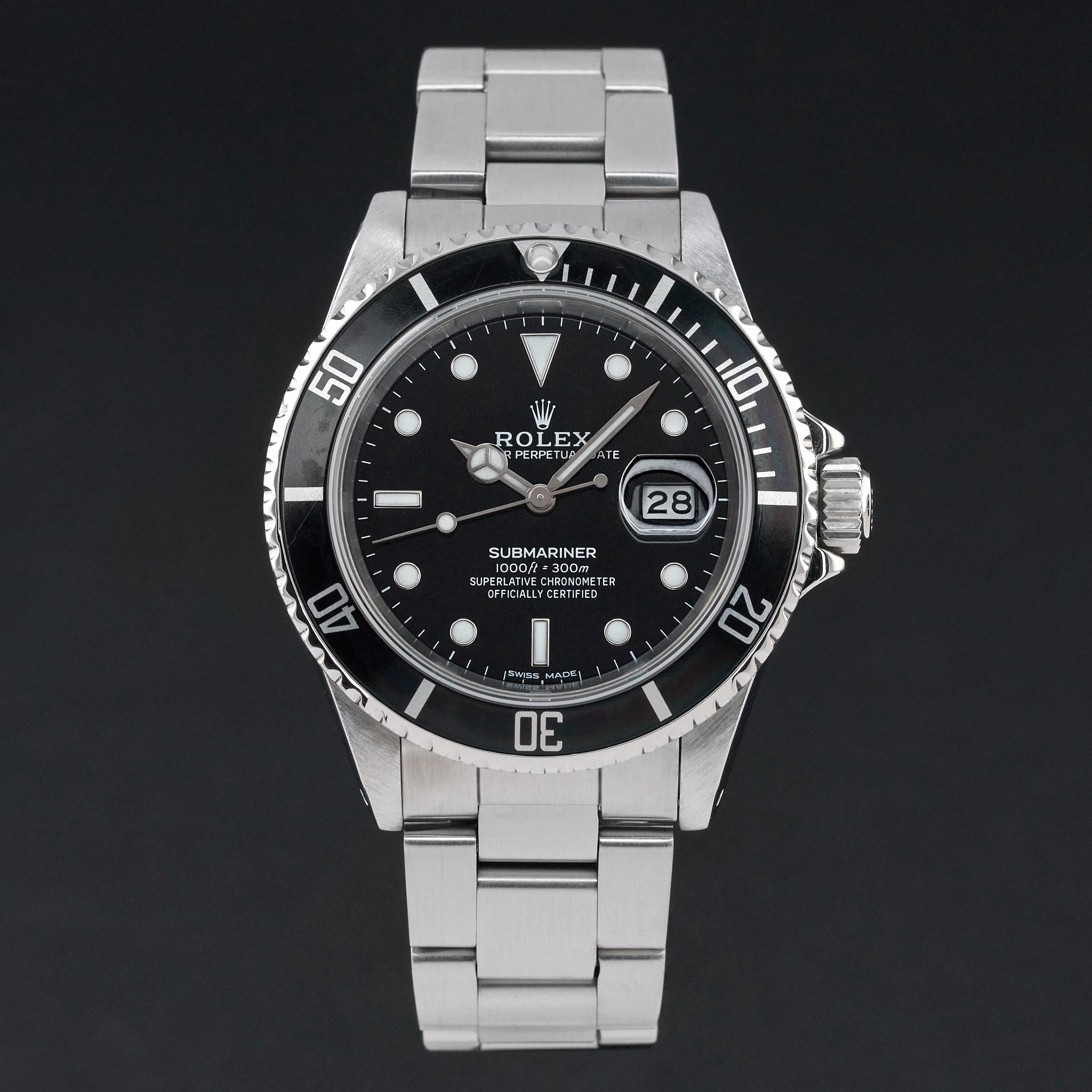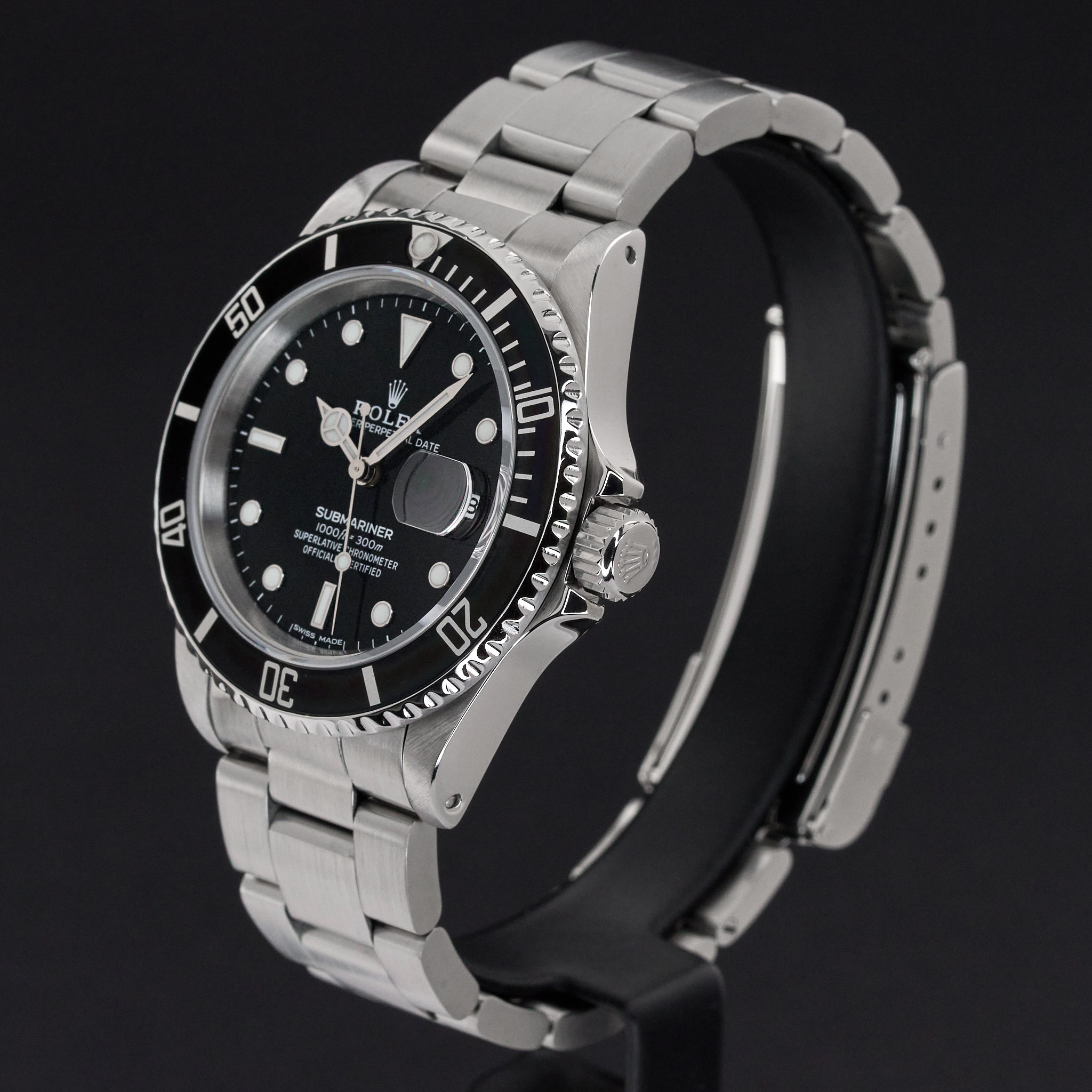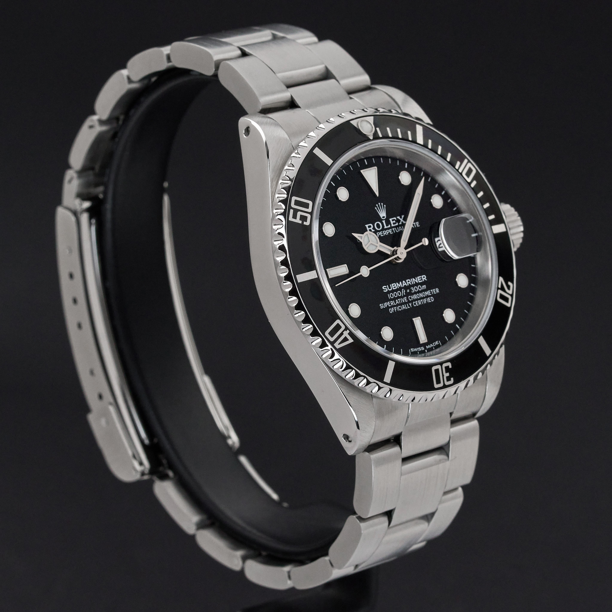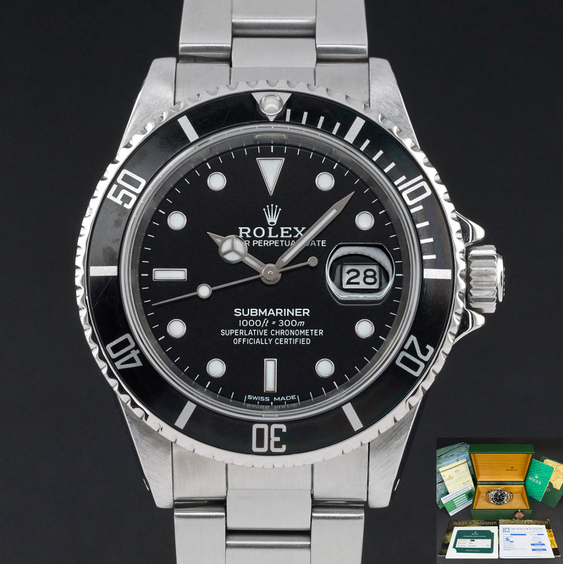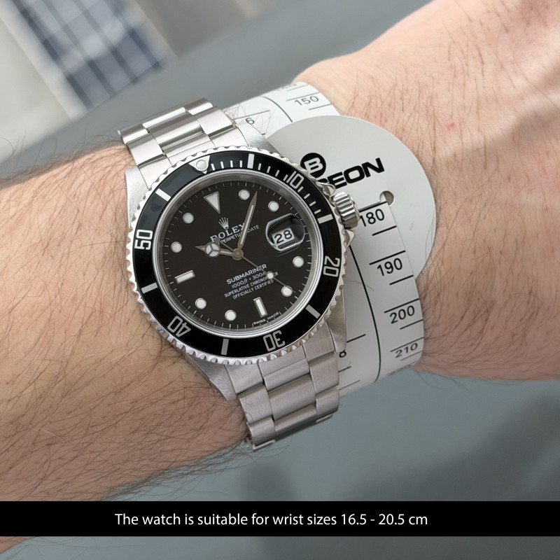This Rolex Submariner Date 16610 features a Black dial and is crafted from stainless steel, with a production year of 1988.