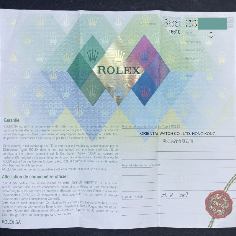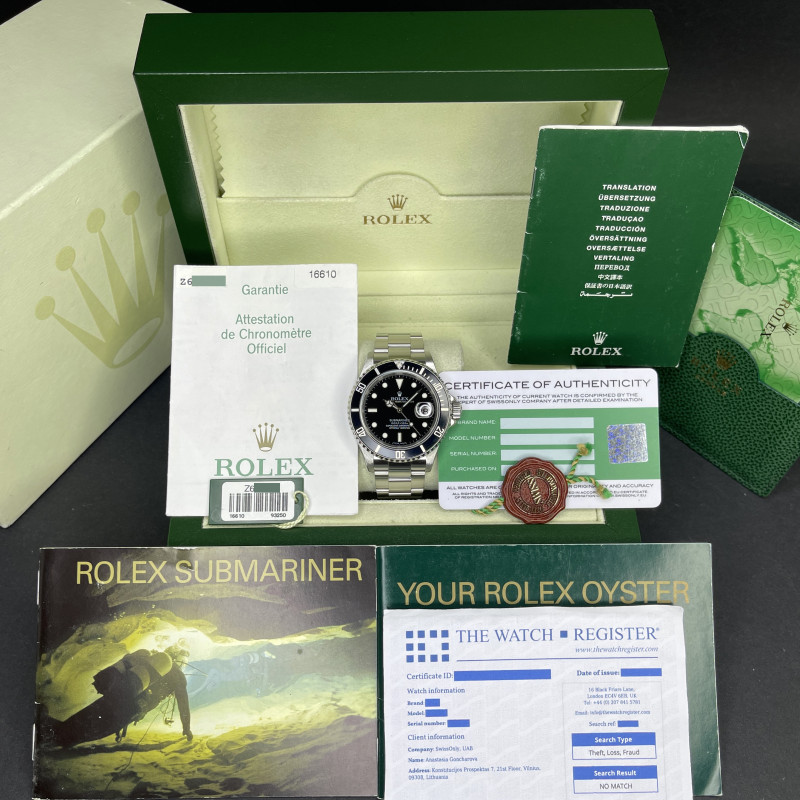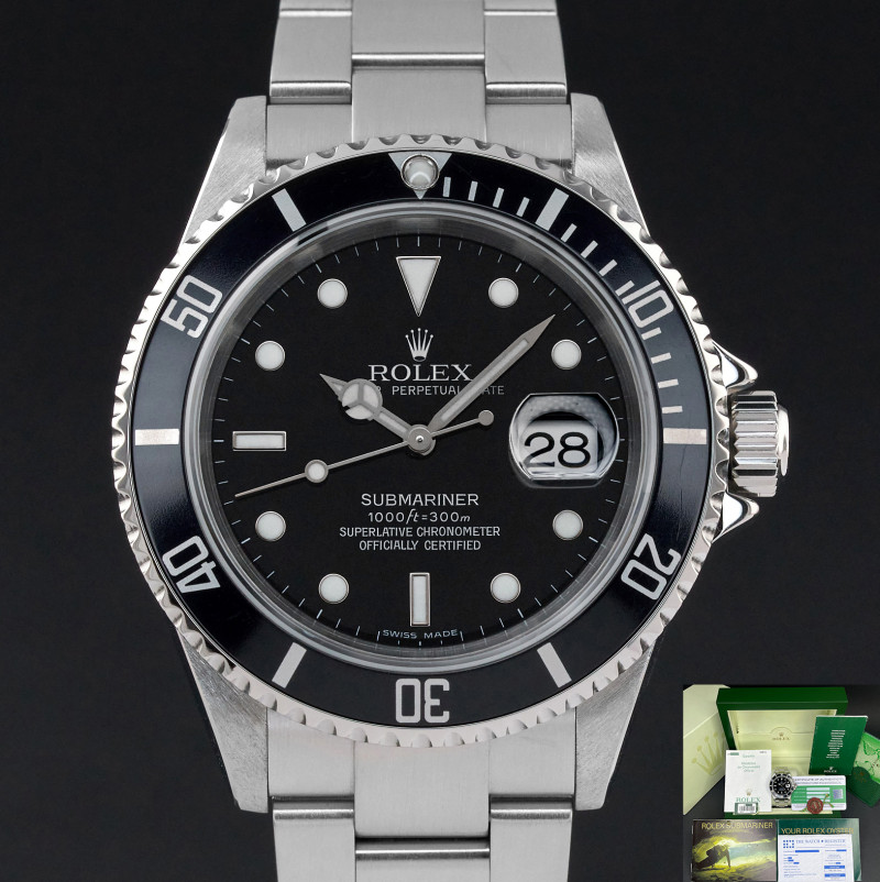This Rolex Submariner Date 16610T features a Black dial and is crafted from stainless steel, with a production year of 2007.