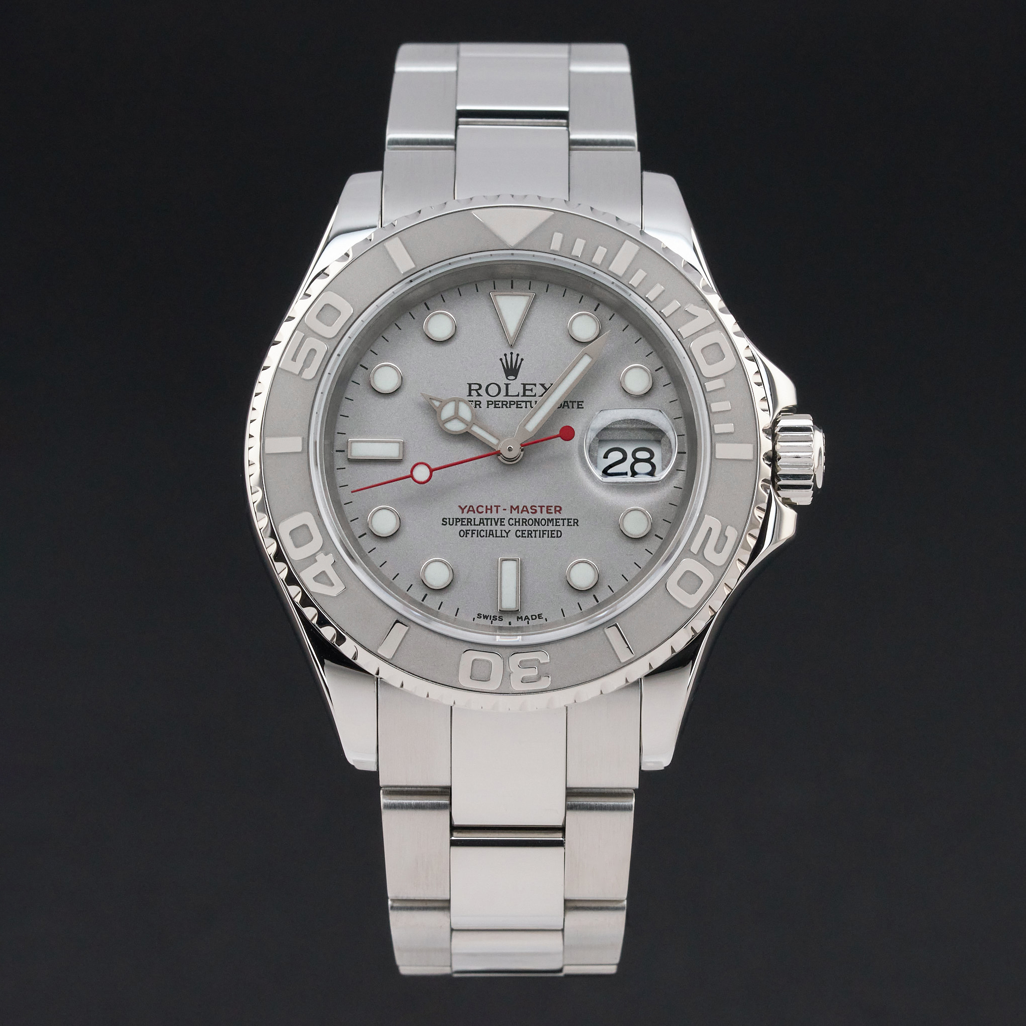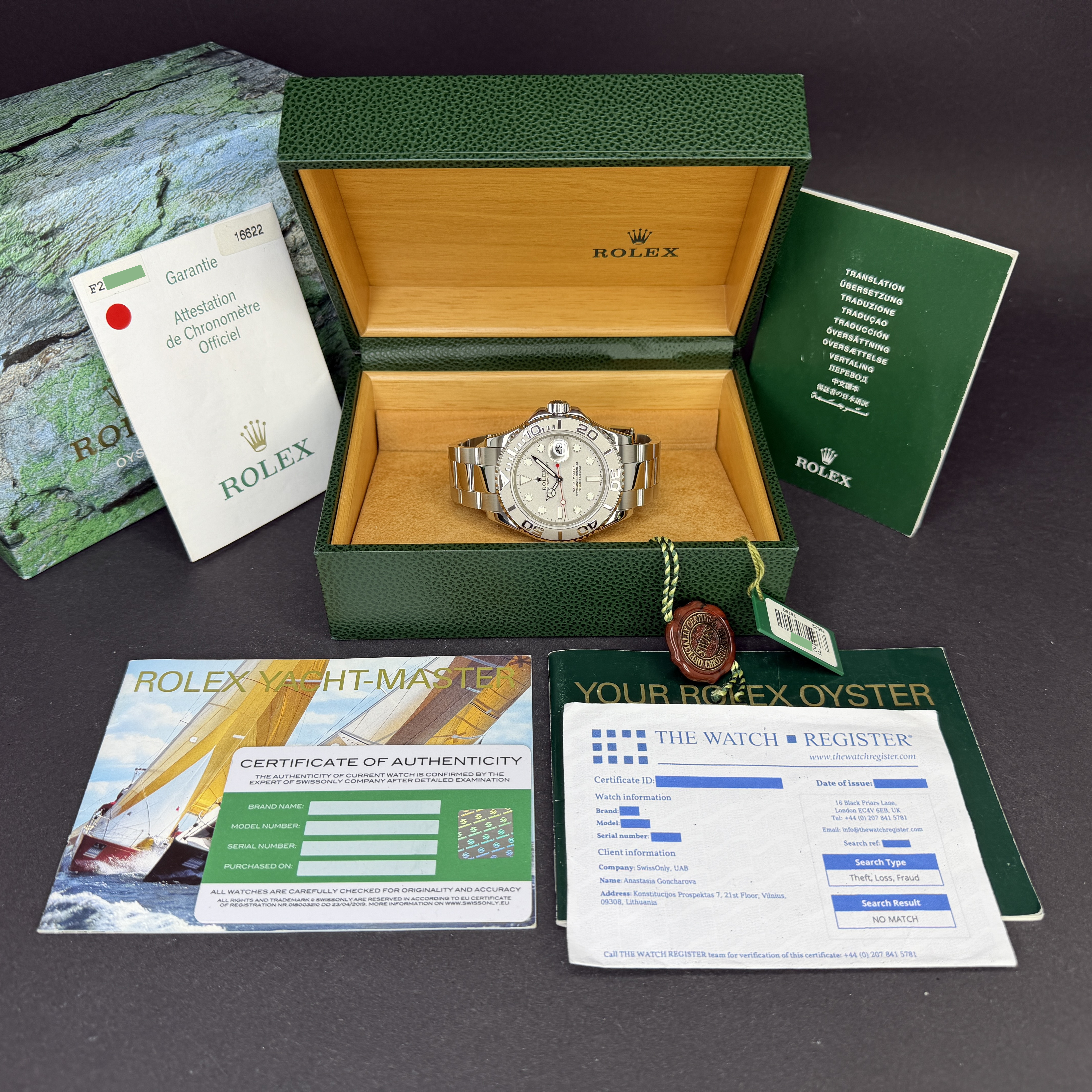 This Rolex Yacht-Master 16622 features a Silver dial and is crafted from stainless steel, with a production year of 2003.