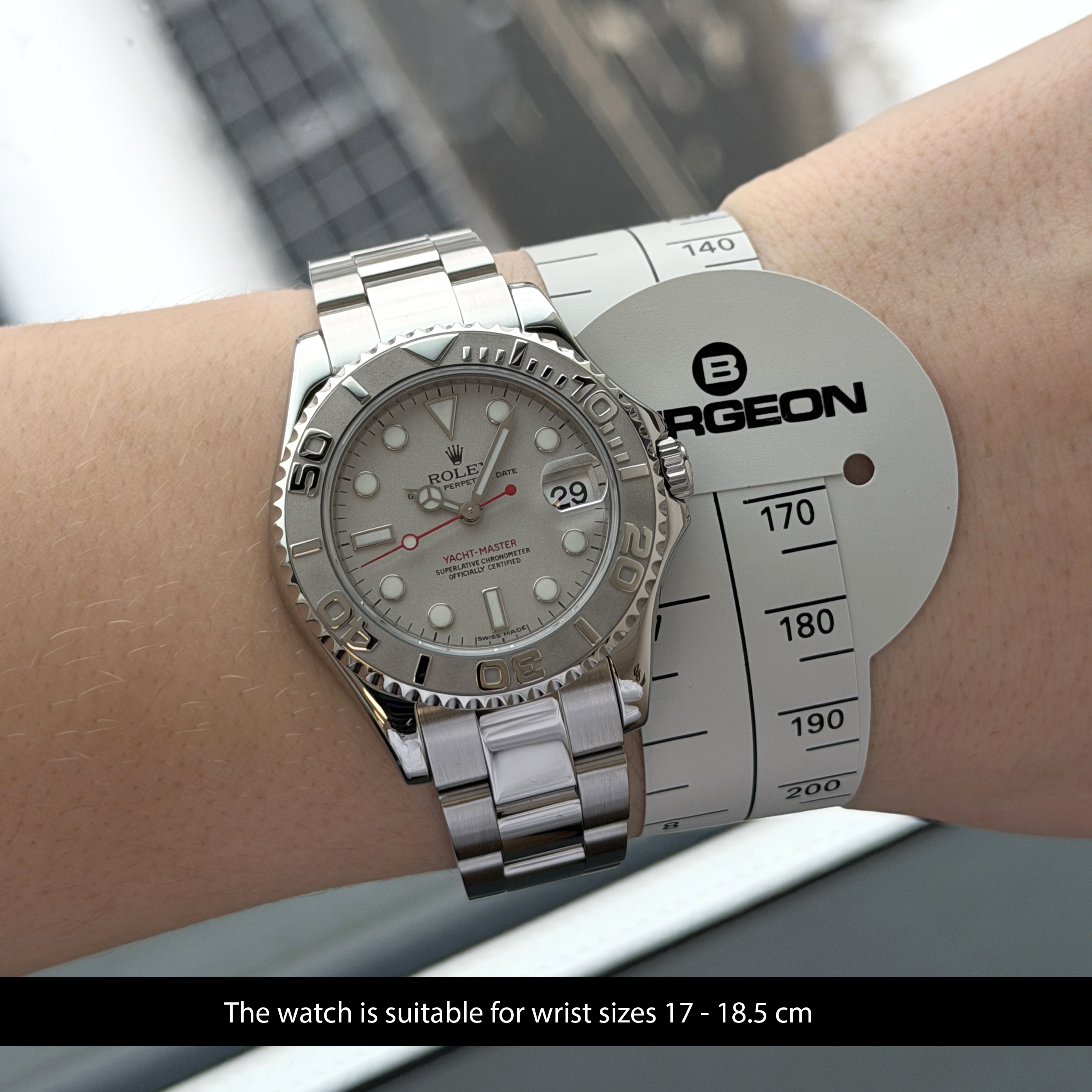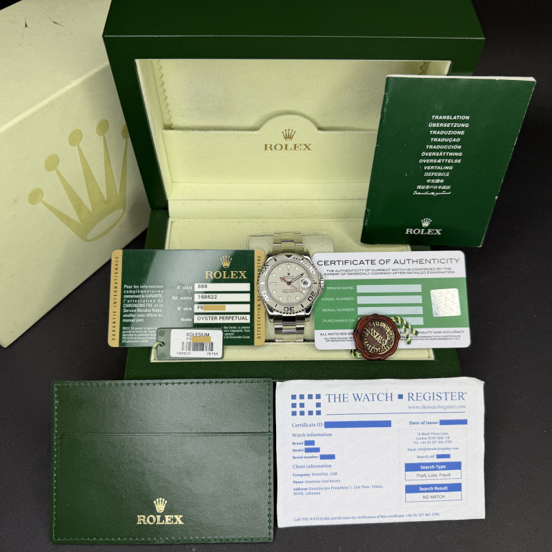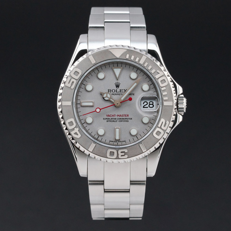 This Rolex Yacht-Master 168622 features a Silver dial and is crafted from stainless steel, with a production year of 2011.