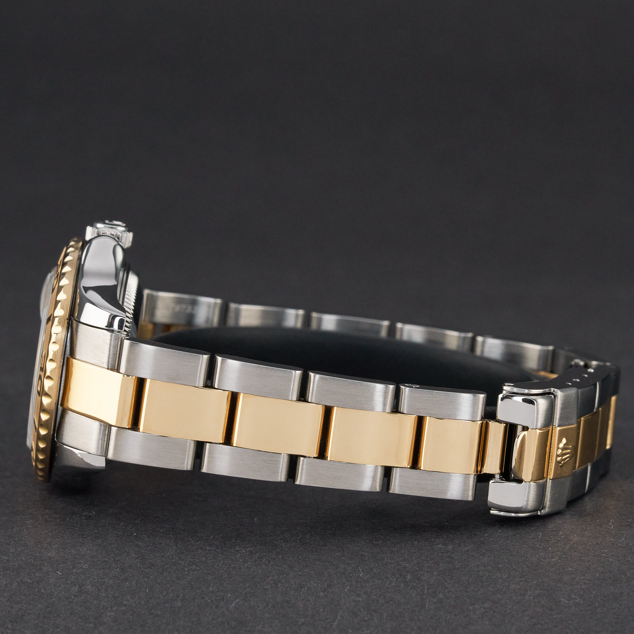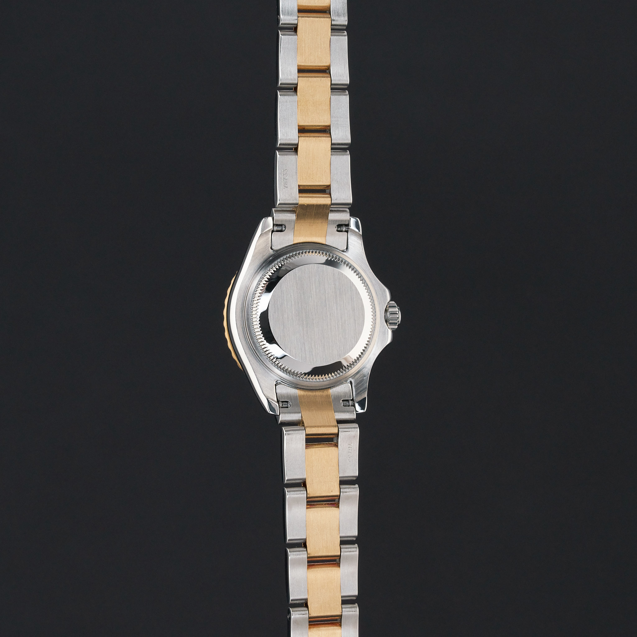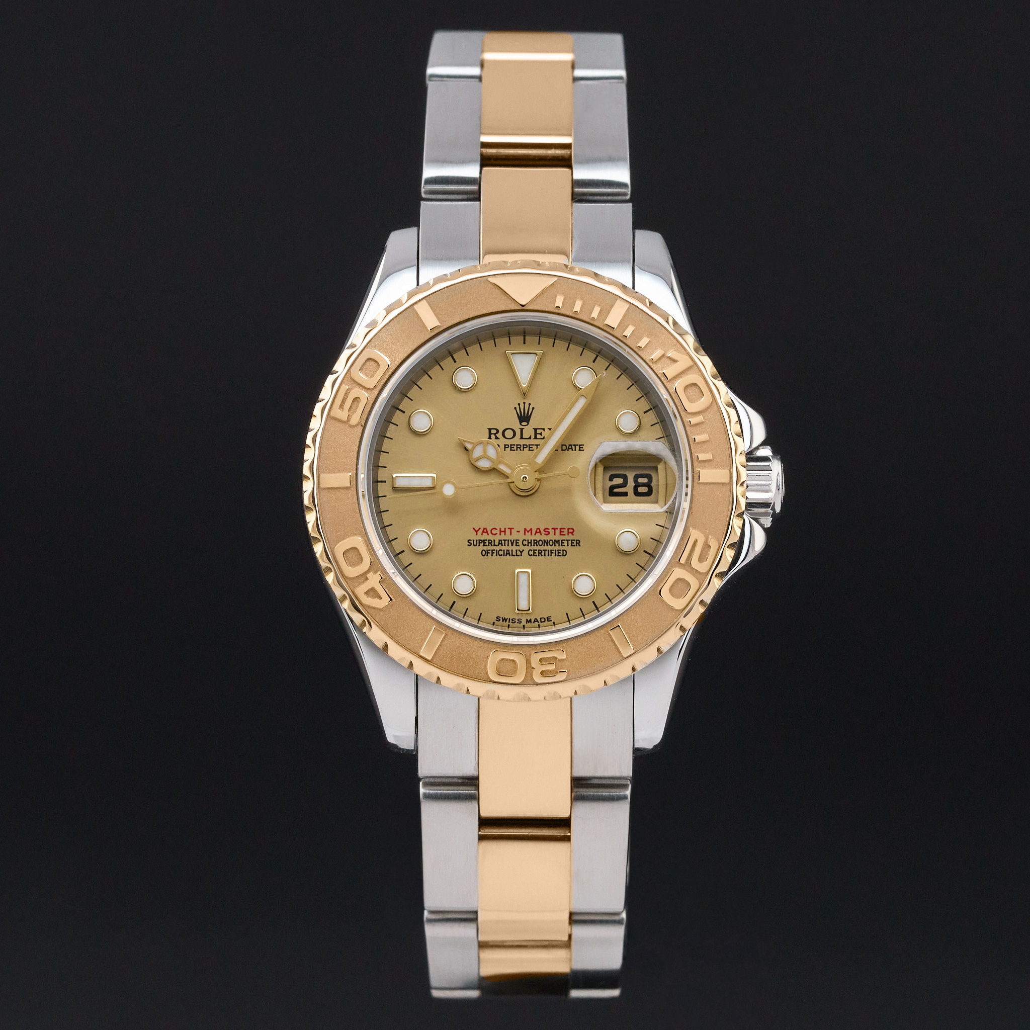 This Rolex Yacht-Master 169623 features a Champagne dial and is crafted from 18K yellow gold and stainless steel, with a production year of 2002.