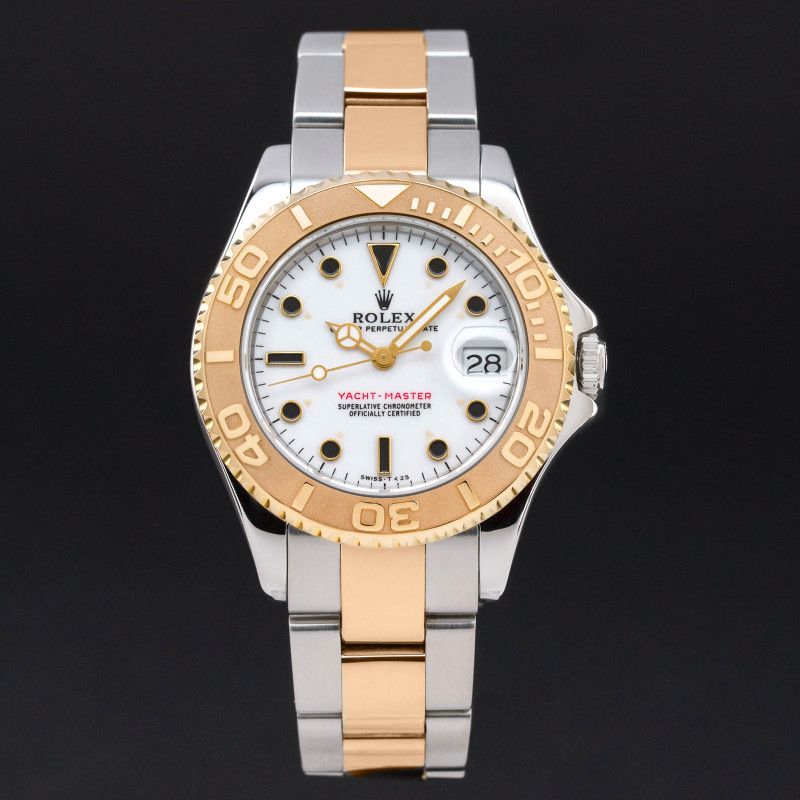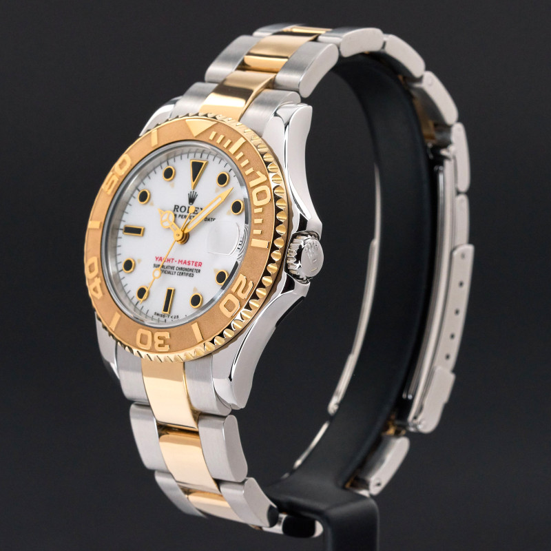 This Rolex Yacht-Master 68623 features a White dial and is crafted from 18K yellow gold and stainless steel, with a production year of 1998.