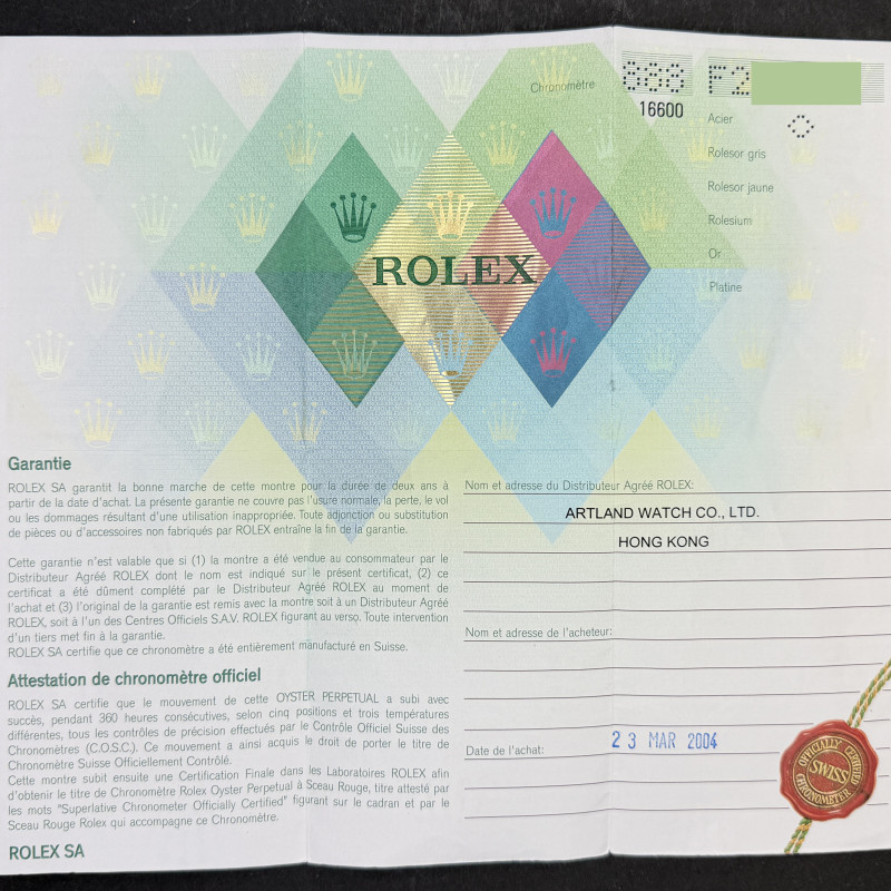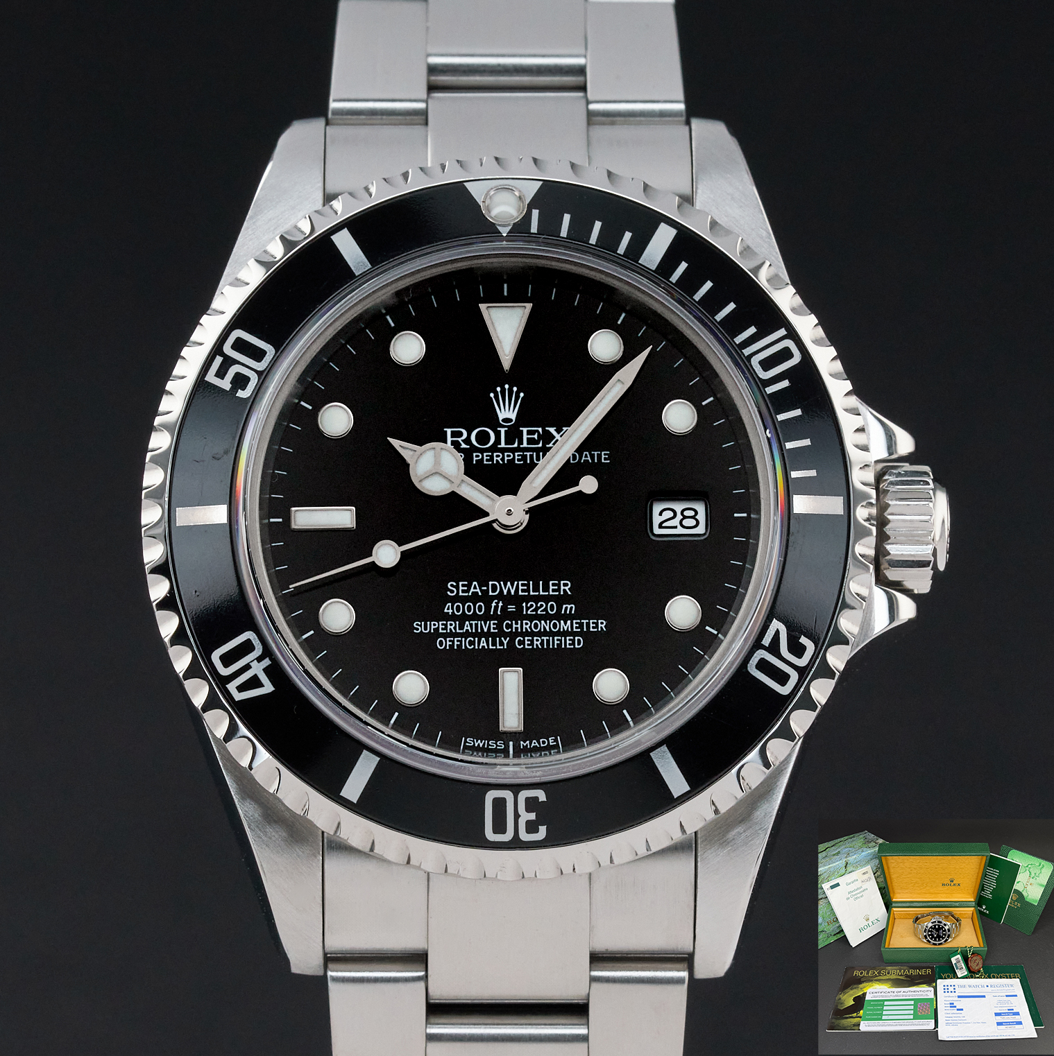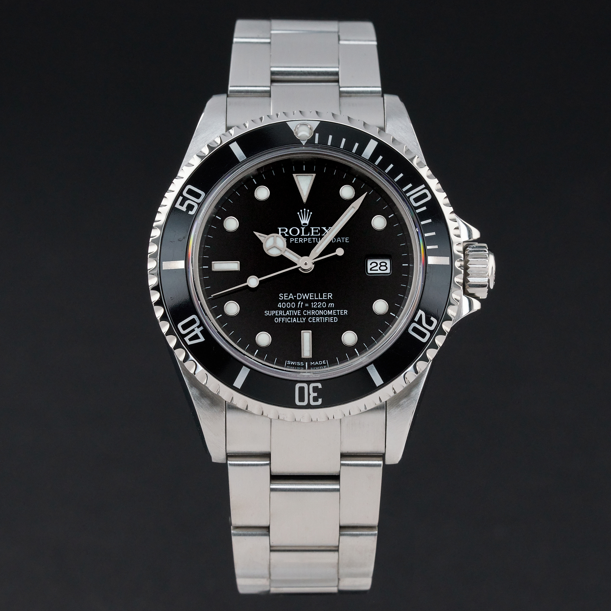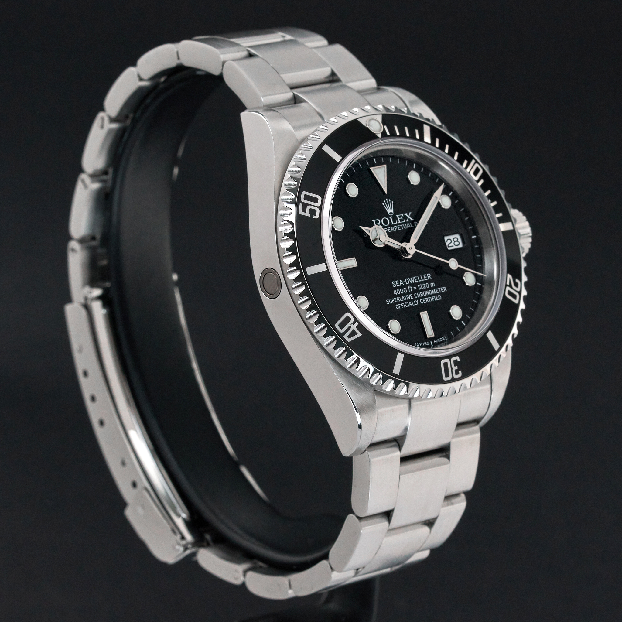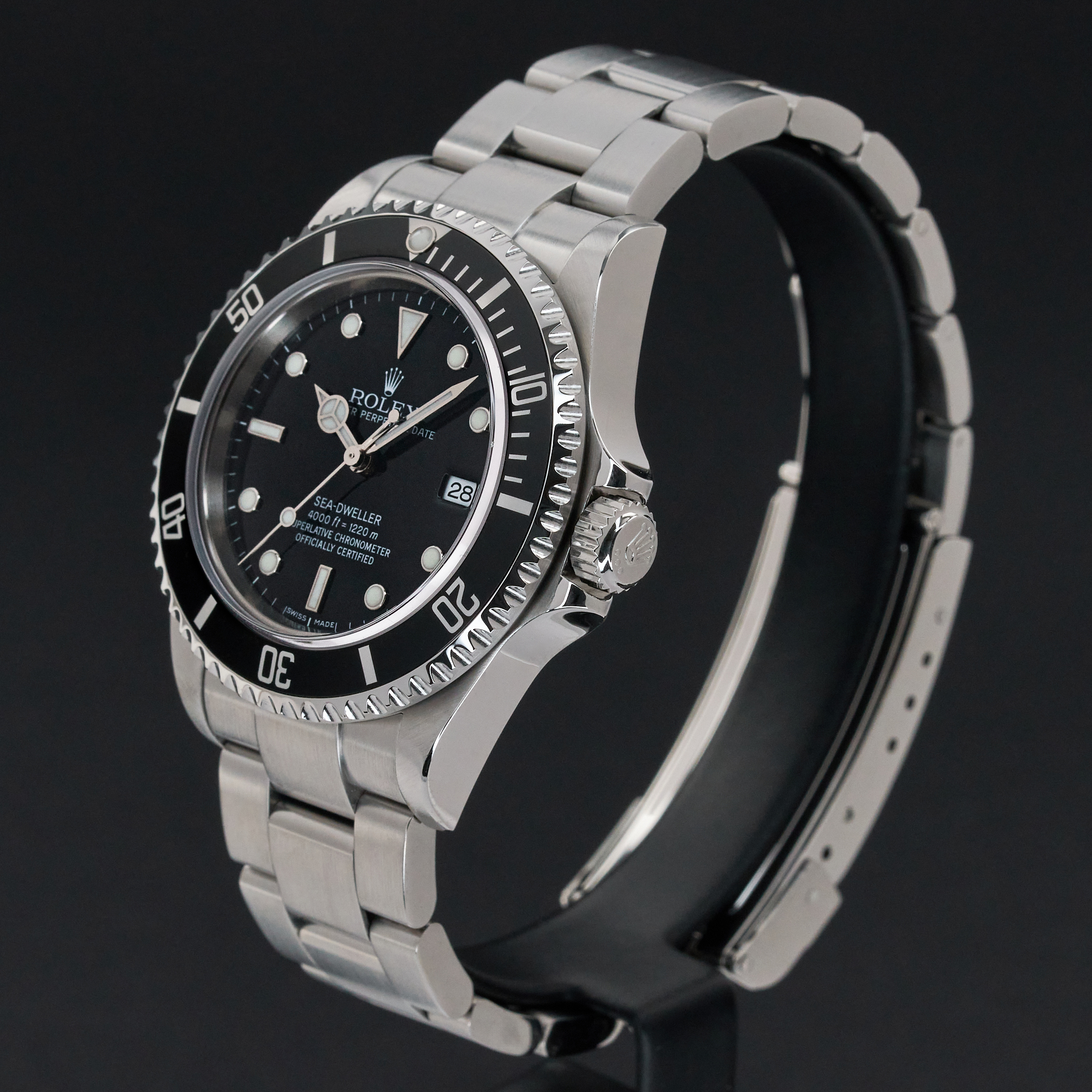 This Rolex Sea-Dweller 16600 features a Black dial and is crafted from stainless steel, with a production year of 2003.