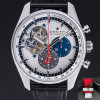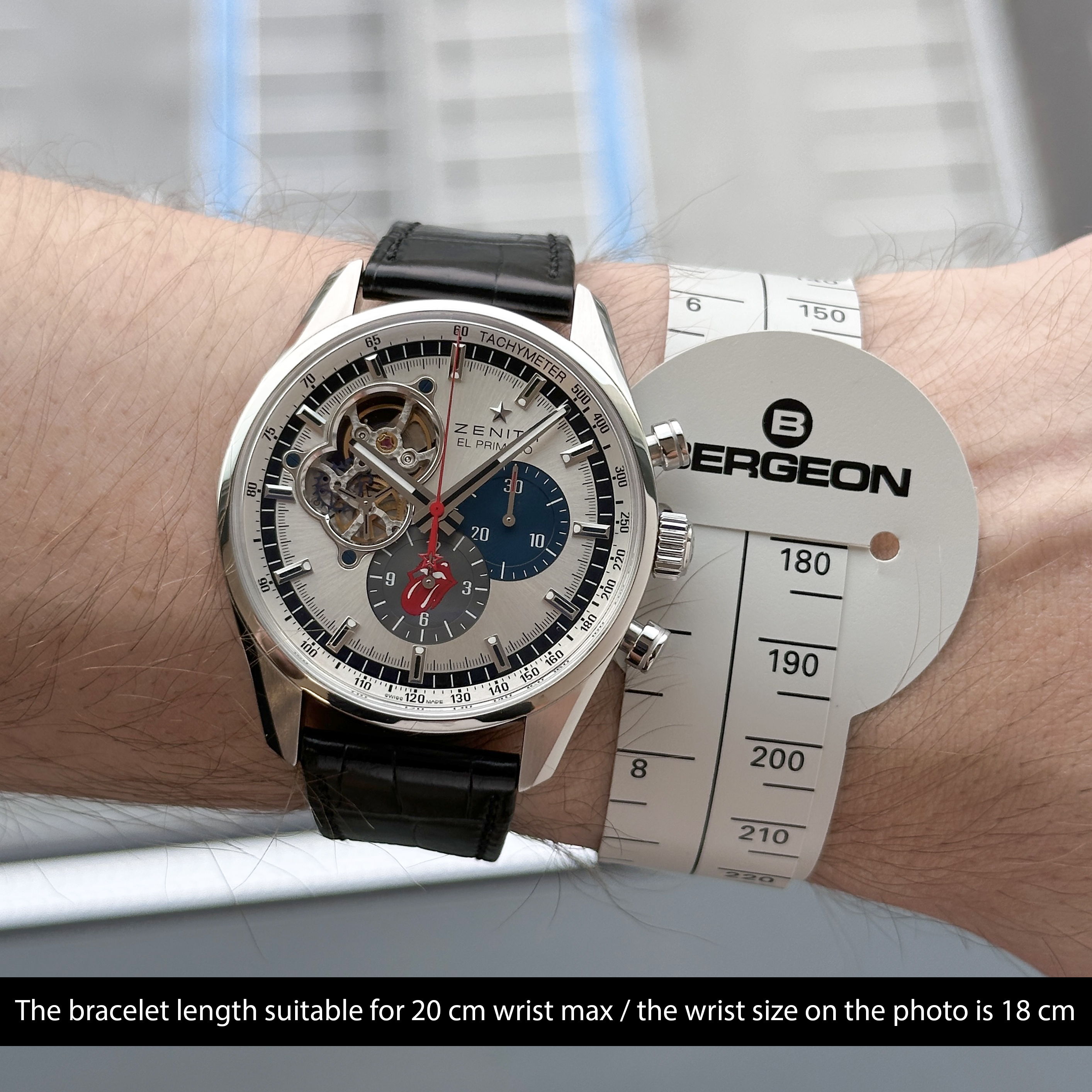 This Zenith El Primero Chronomaster Rolling Stones Limited Edition introduced in 2014, unites legendary watchmaking with iconic rock heritage. Its silver dial reveals the open-heart mechanism of the renowned El Primero chronograph movement, while bold accents echo the rebellious energy of The Rolling Stones. Produced in only 250 pieces worldwide, this collaboration blends precision with artistry, standing out as both a timepiece and a tribute to musical history.